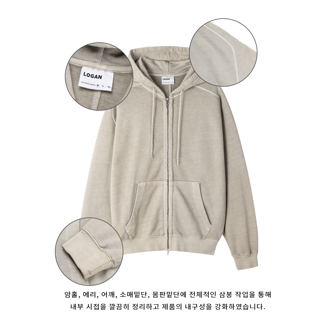- 코튼 테리 원단으로 탄탄한 내구성과 부드러운 착용감의 후드 집업