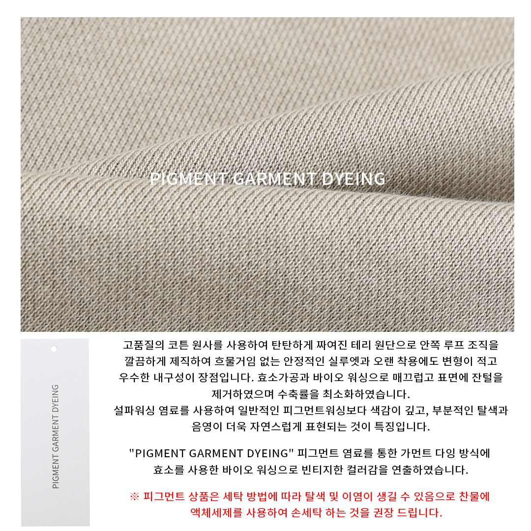 - 피그먼트 가먼트 다잉 공정으로 자연스럽고 깊이 있는 빈티지 컬러감