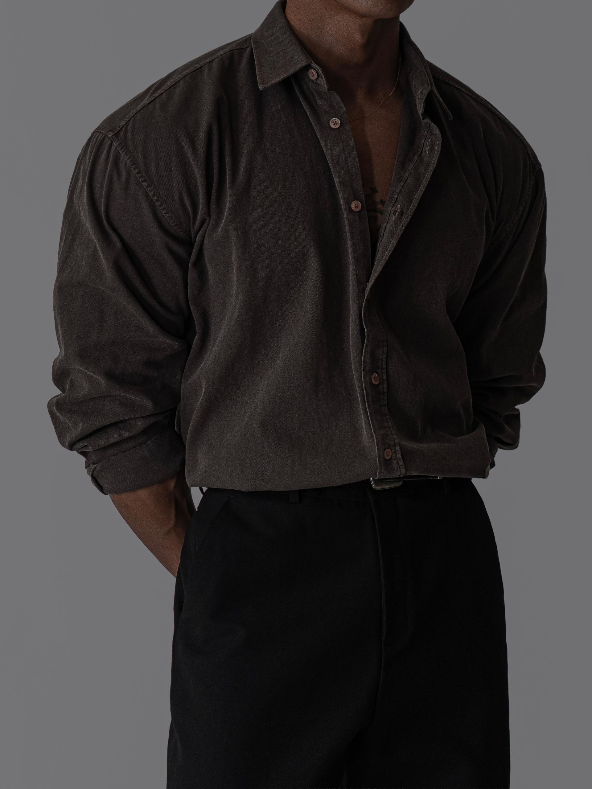 - 20수 코튼 트윌 원단에 피그먼트 가먼트 워싱으로 빈티지한 컬러감