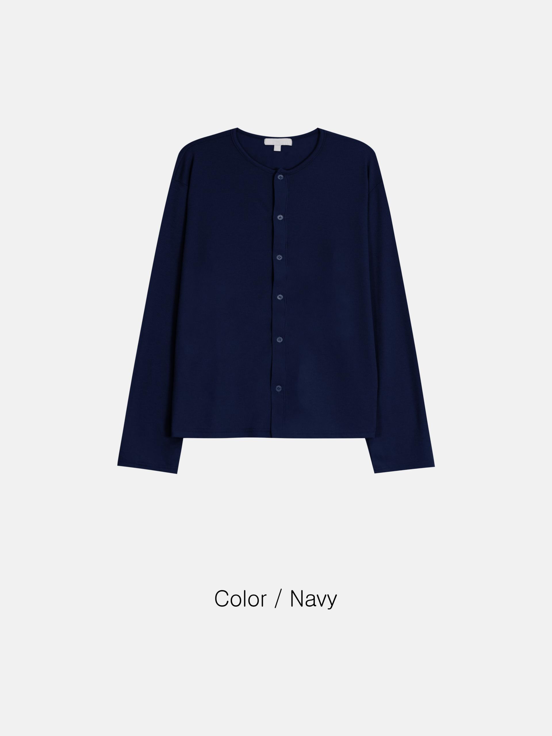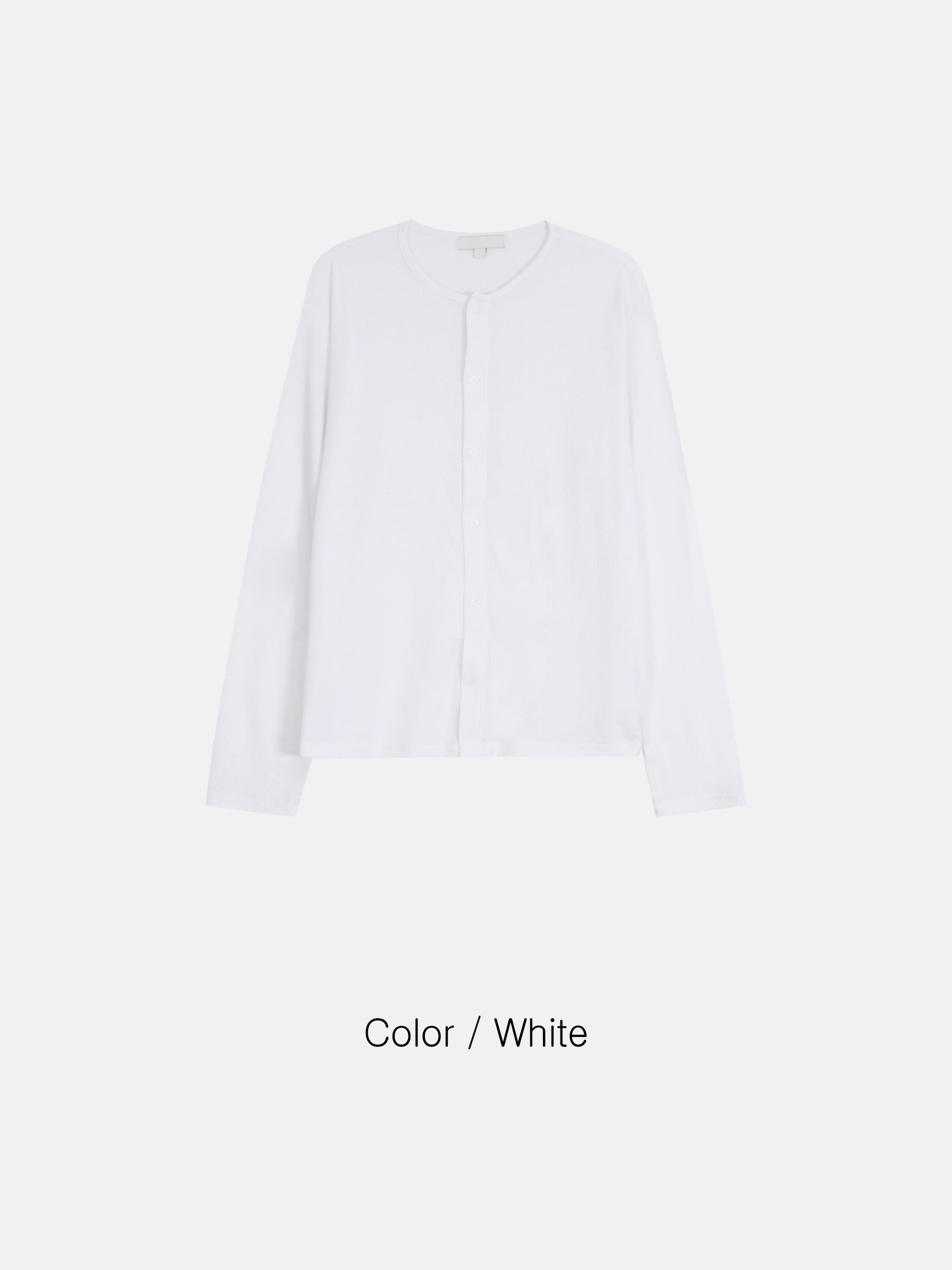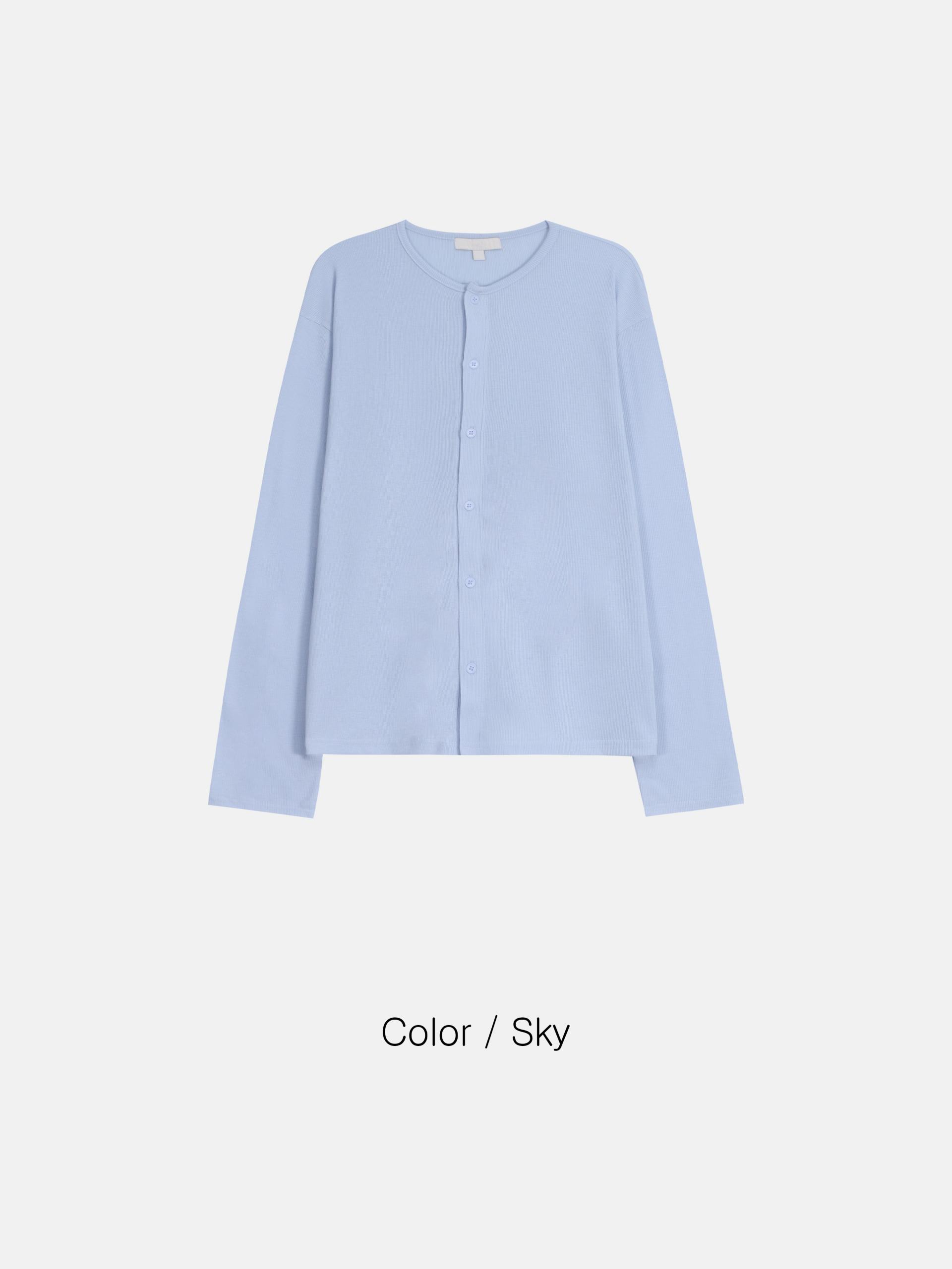 - 깔끔한 라운드 넥과 미니멀한 단추 디테일로 데일리 활용도 높음