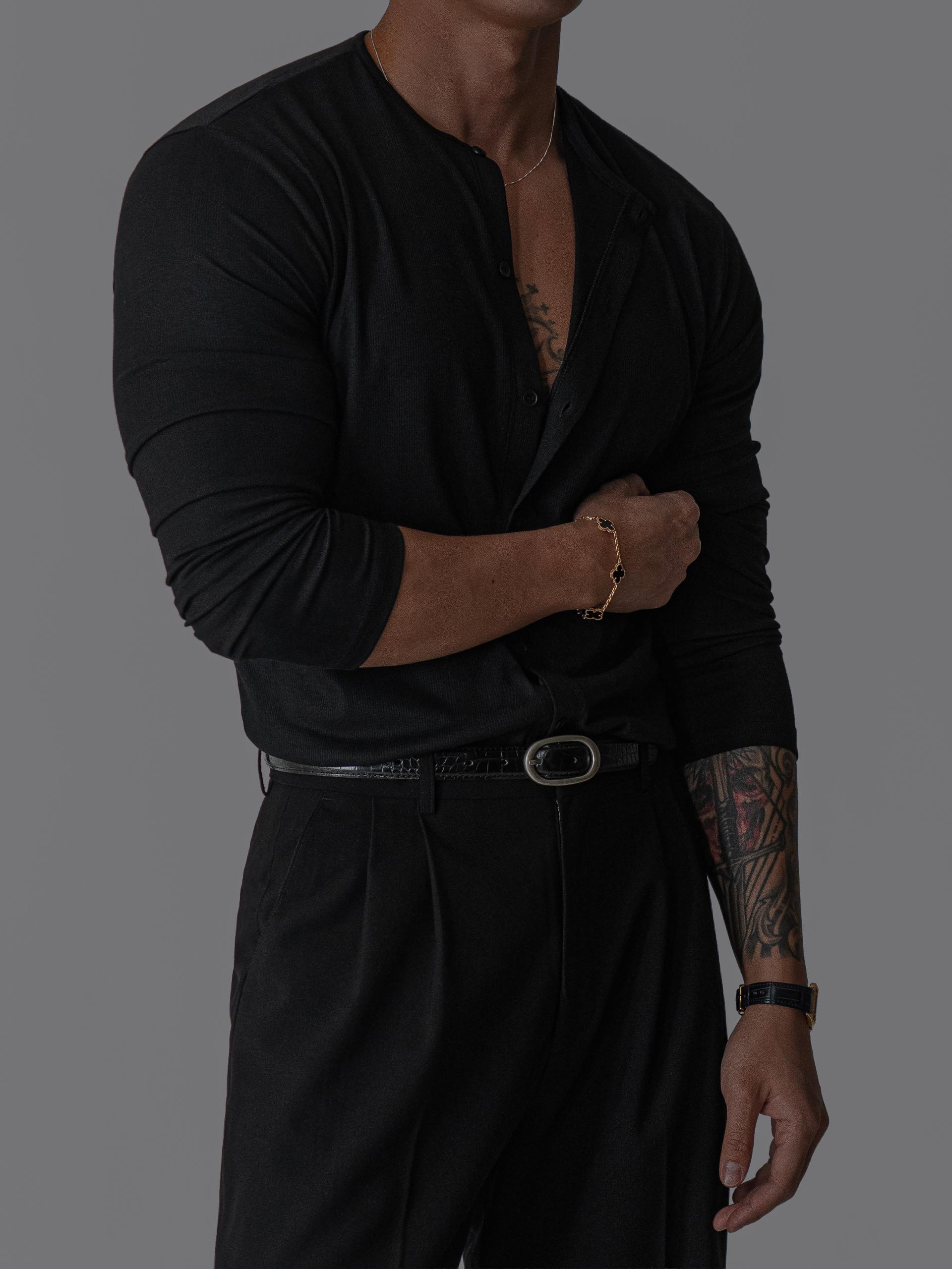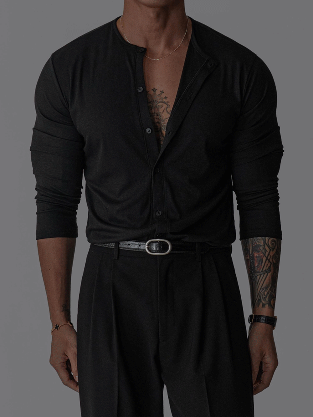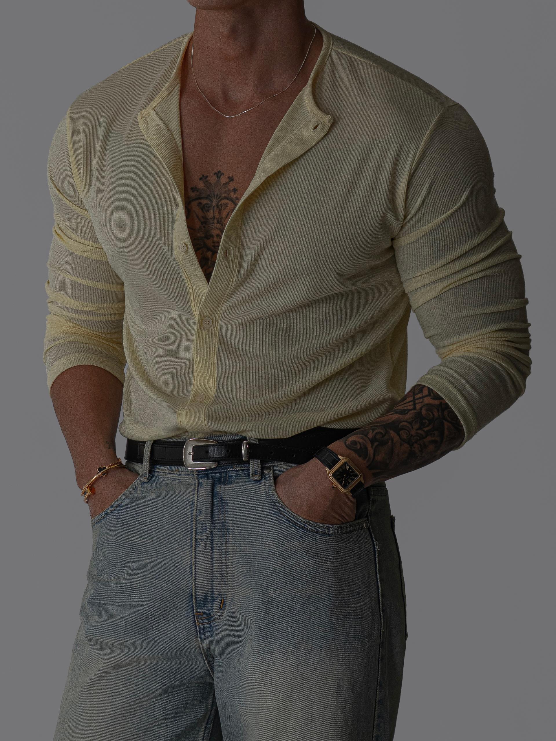 - 깔끔한 라운드 넥과 미니멀한 단추 디테일로 데일리 활용도 높음