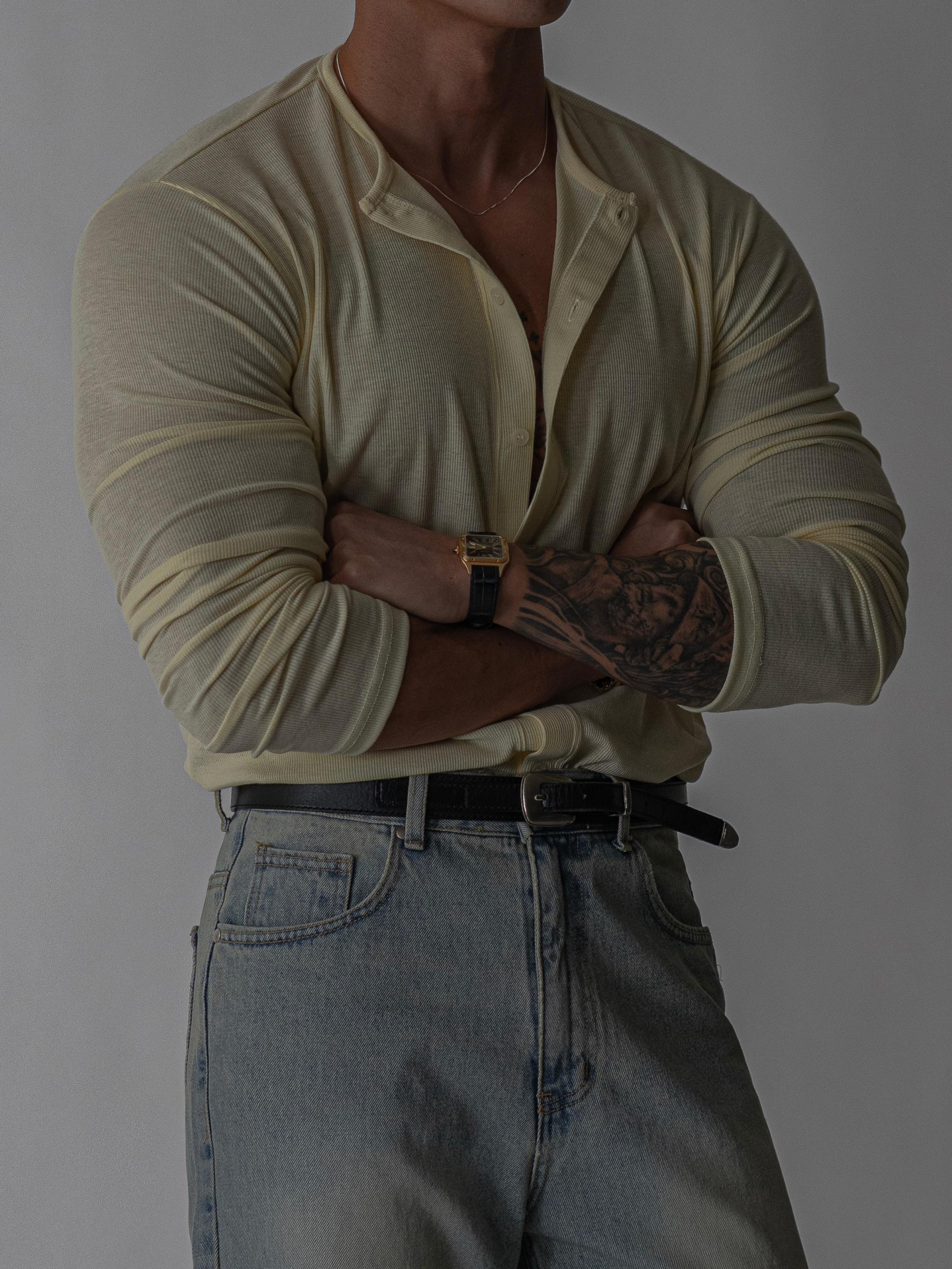 - 세미 크롭 슬림핏으로 상체 라인을 자연스럽게 강조