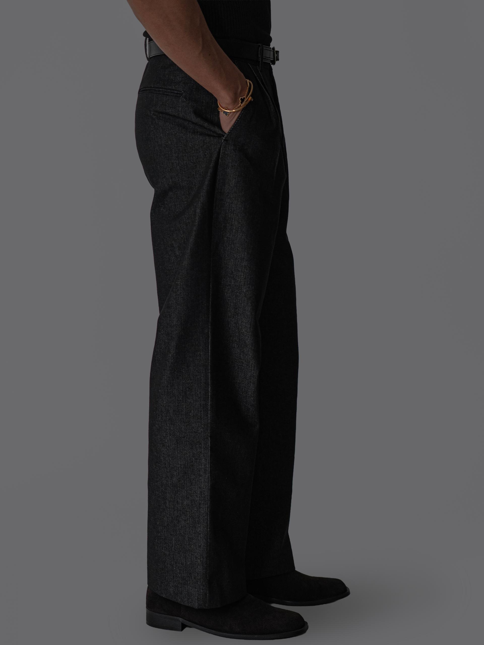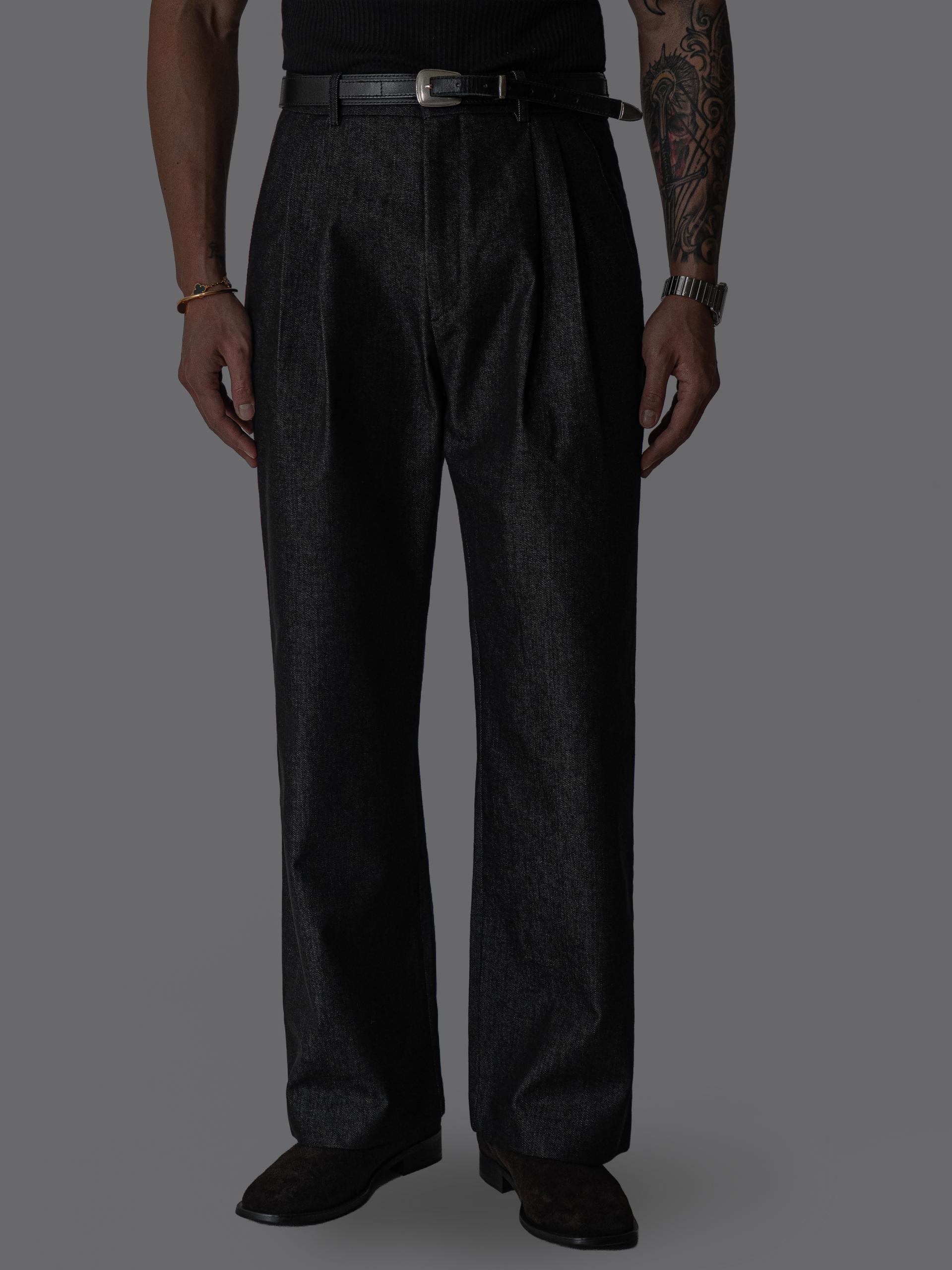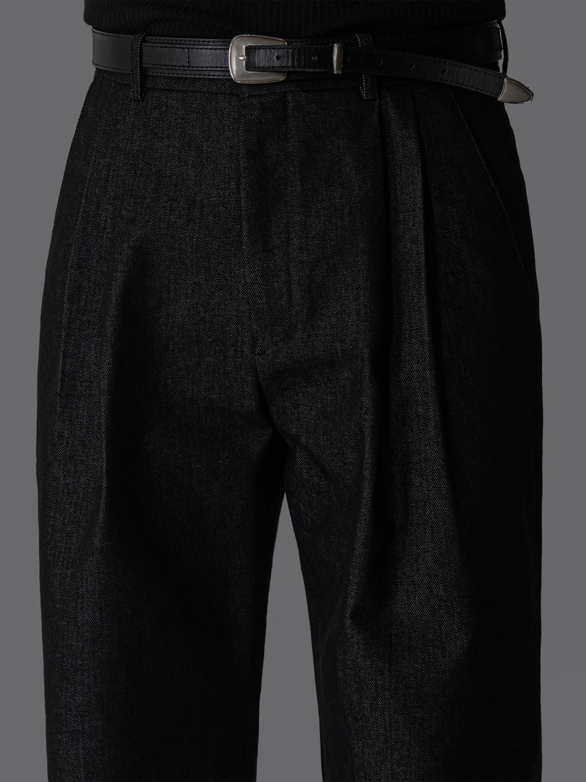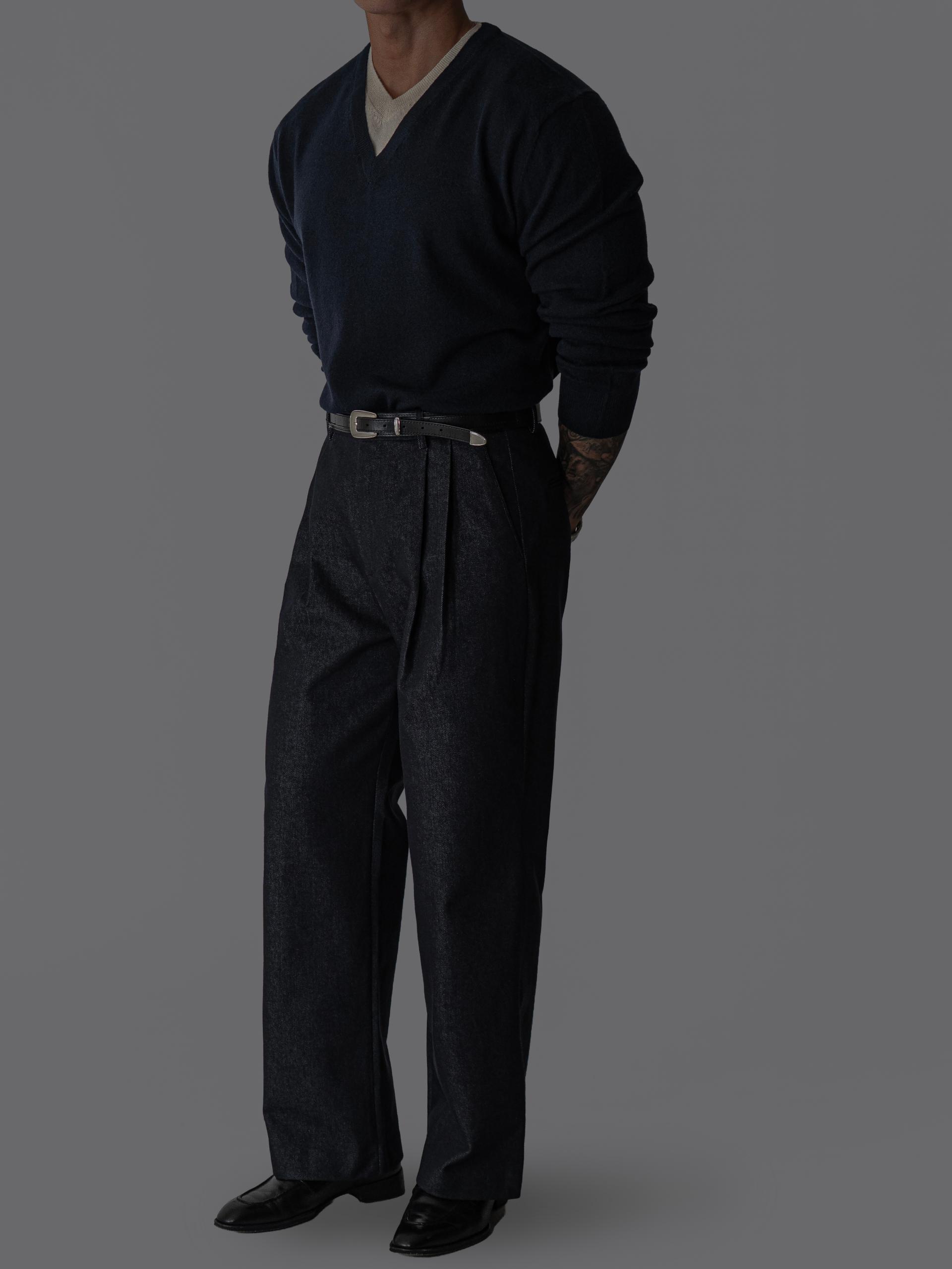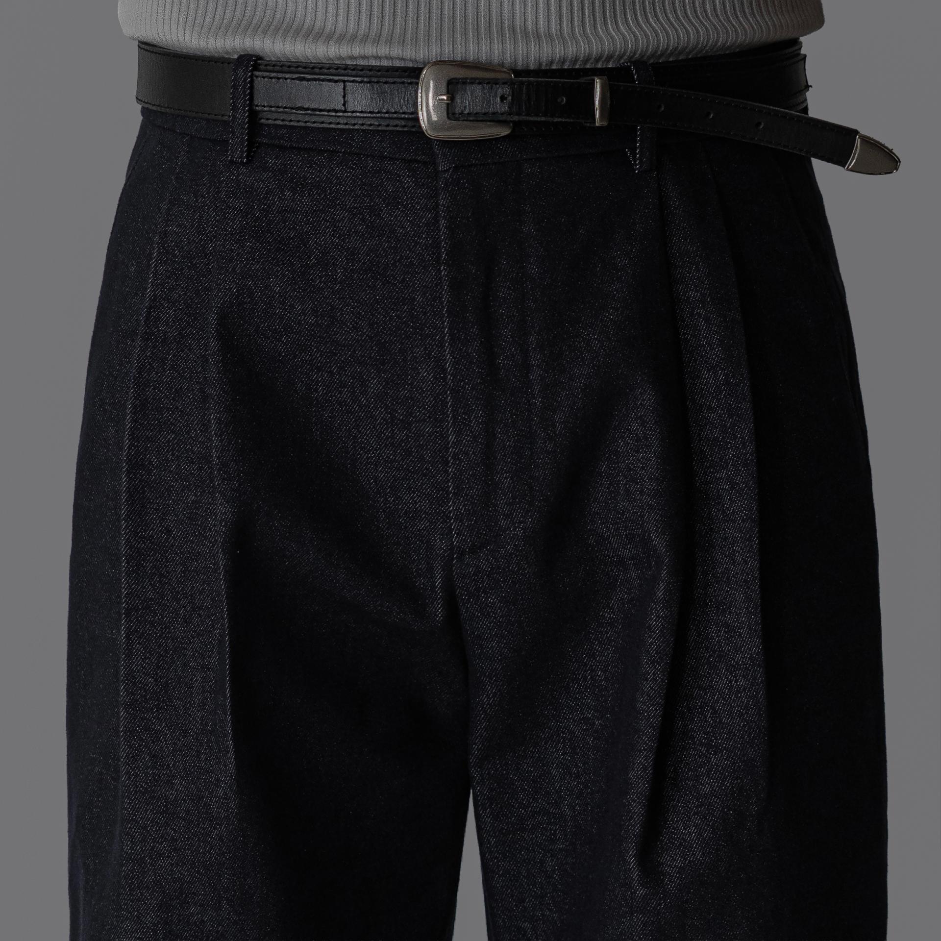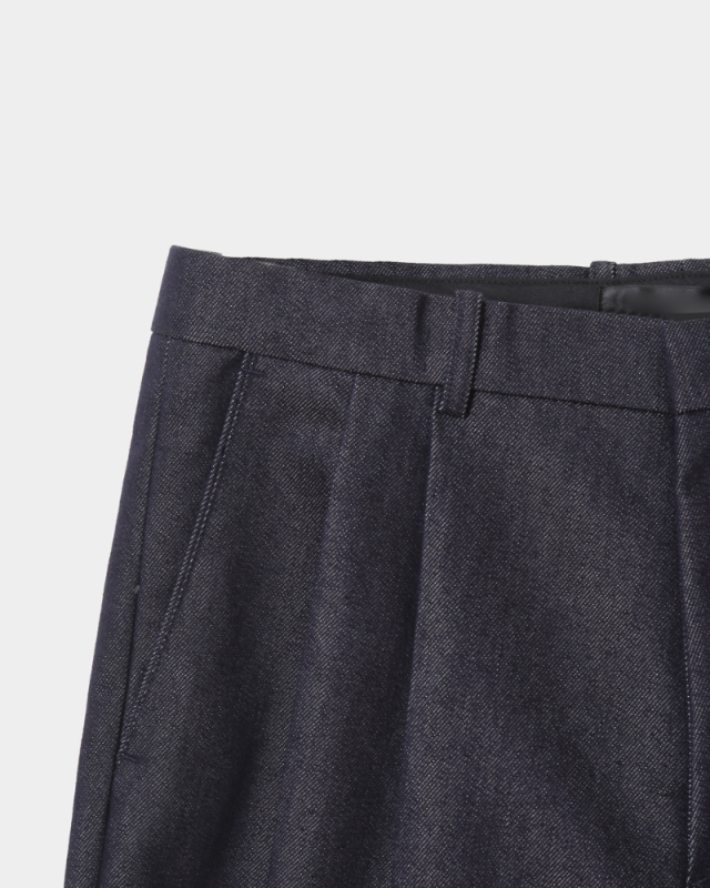 - 미세한 텍스처감이 느껴지는 데님 표면으로 슬랙스 무드의 고급스러움