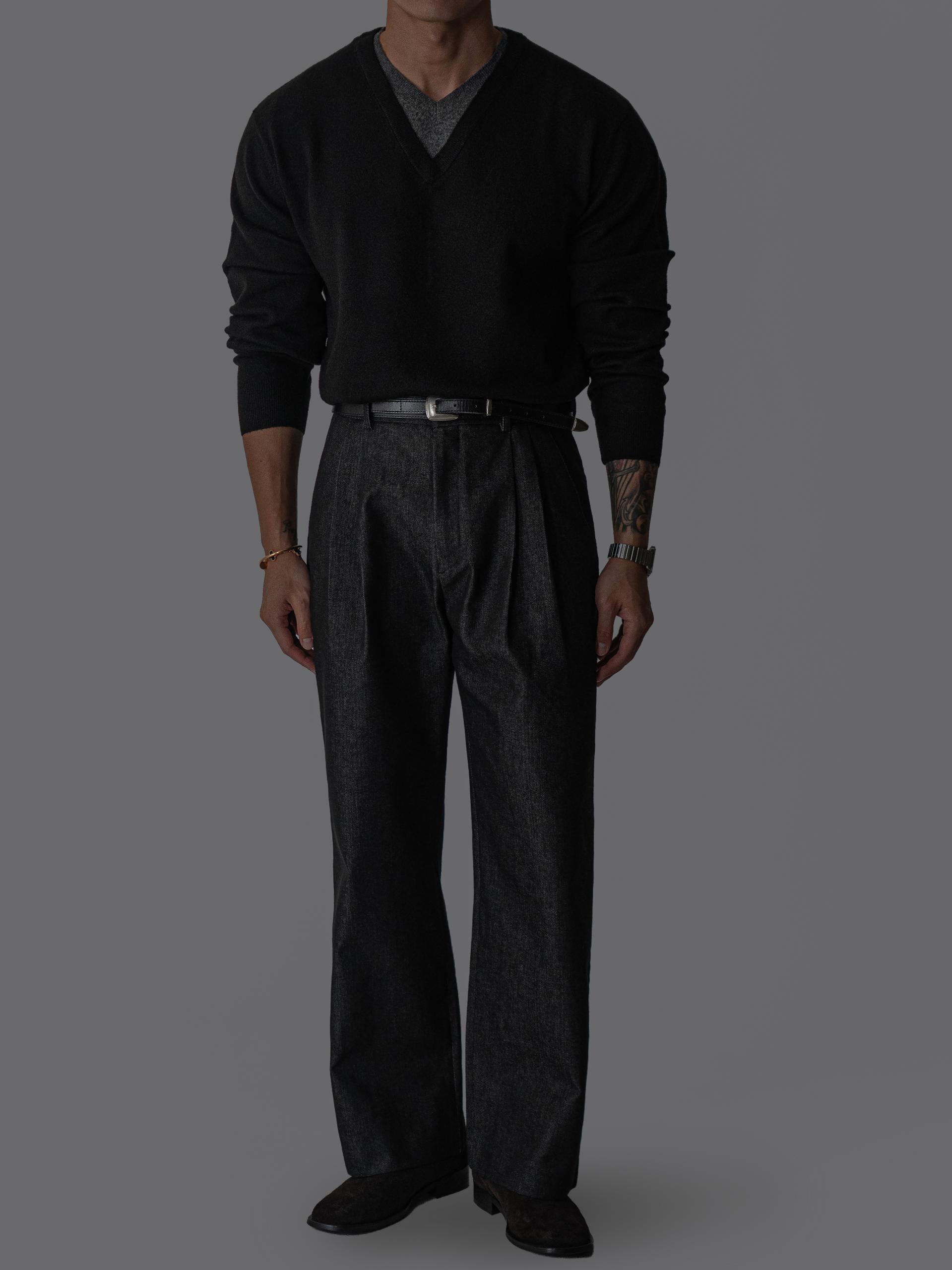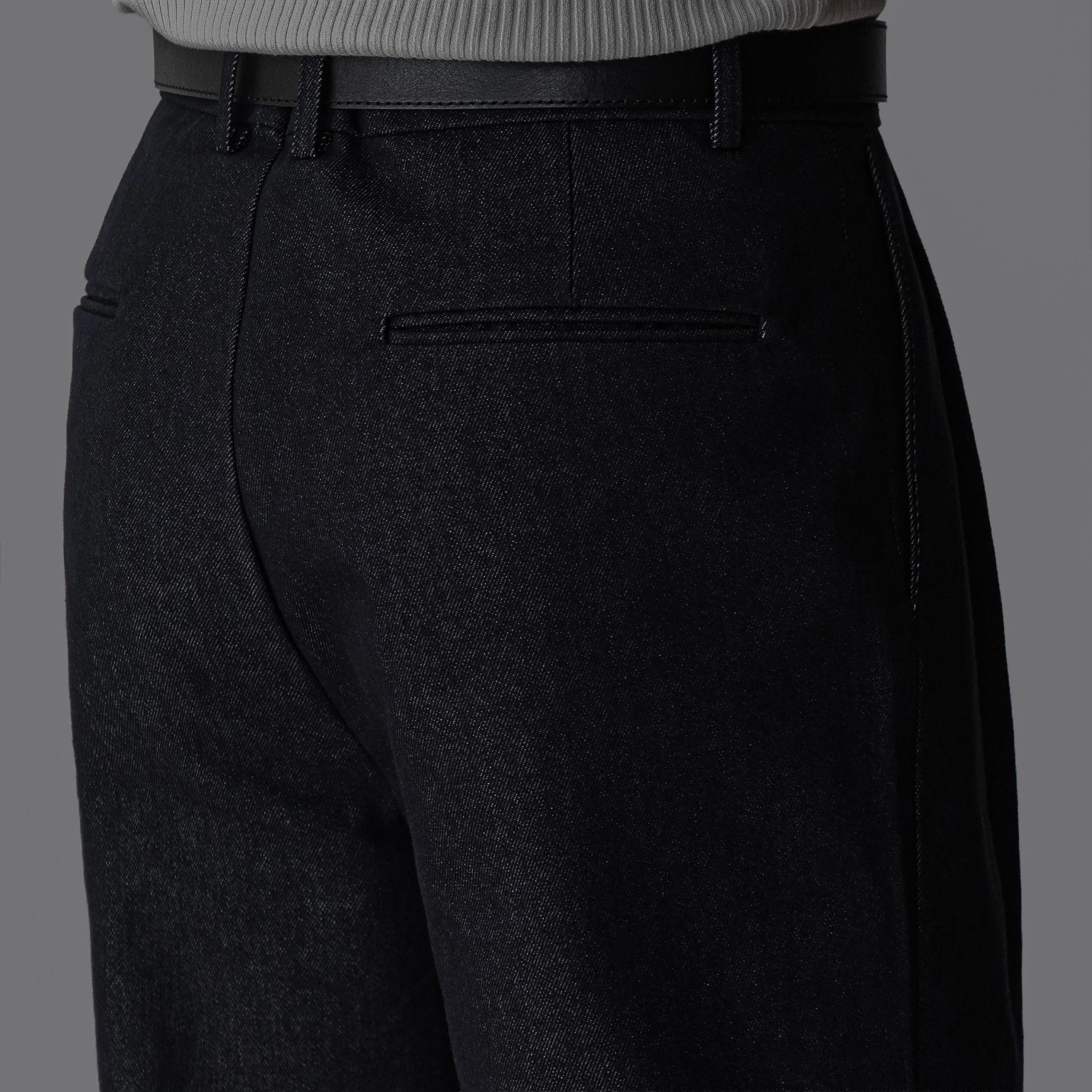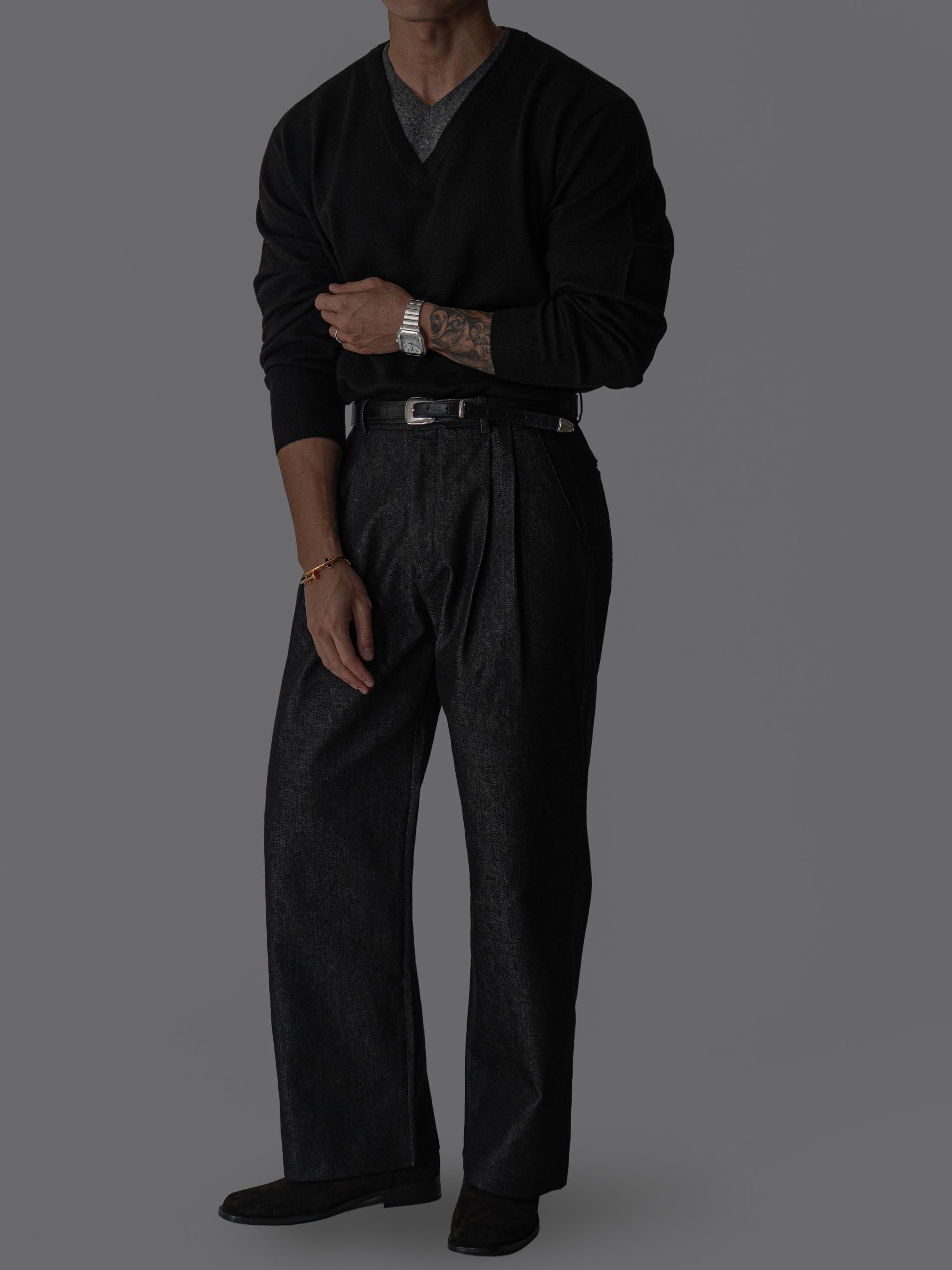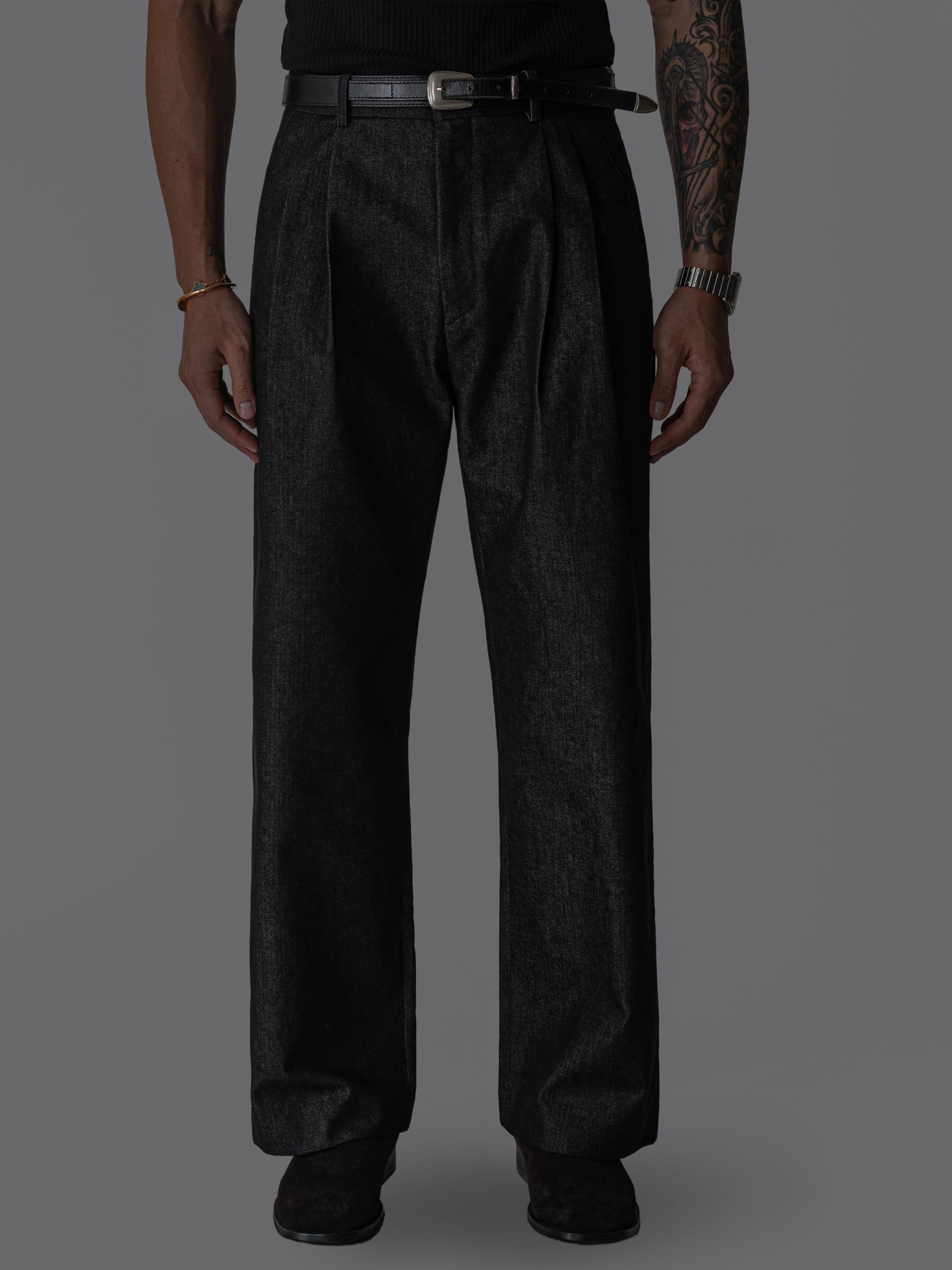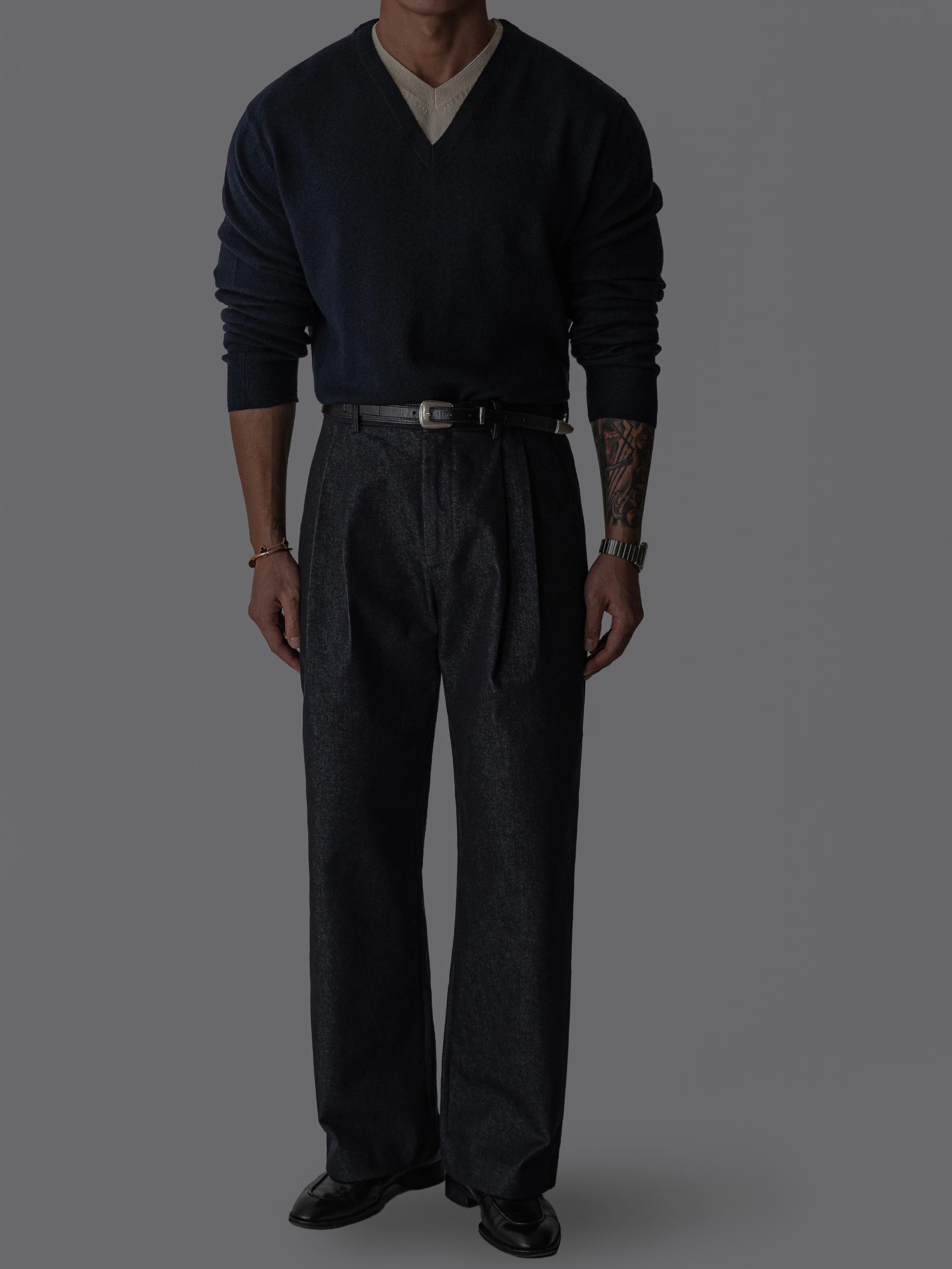 - 미세한 텍스처감이 느껴지는 데님 표면으로 슬랙스 무드의 고급스러움