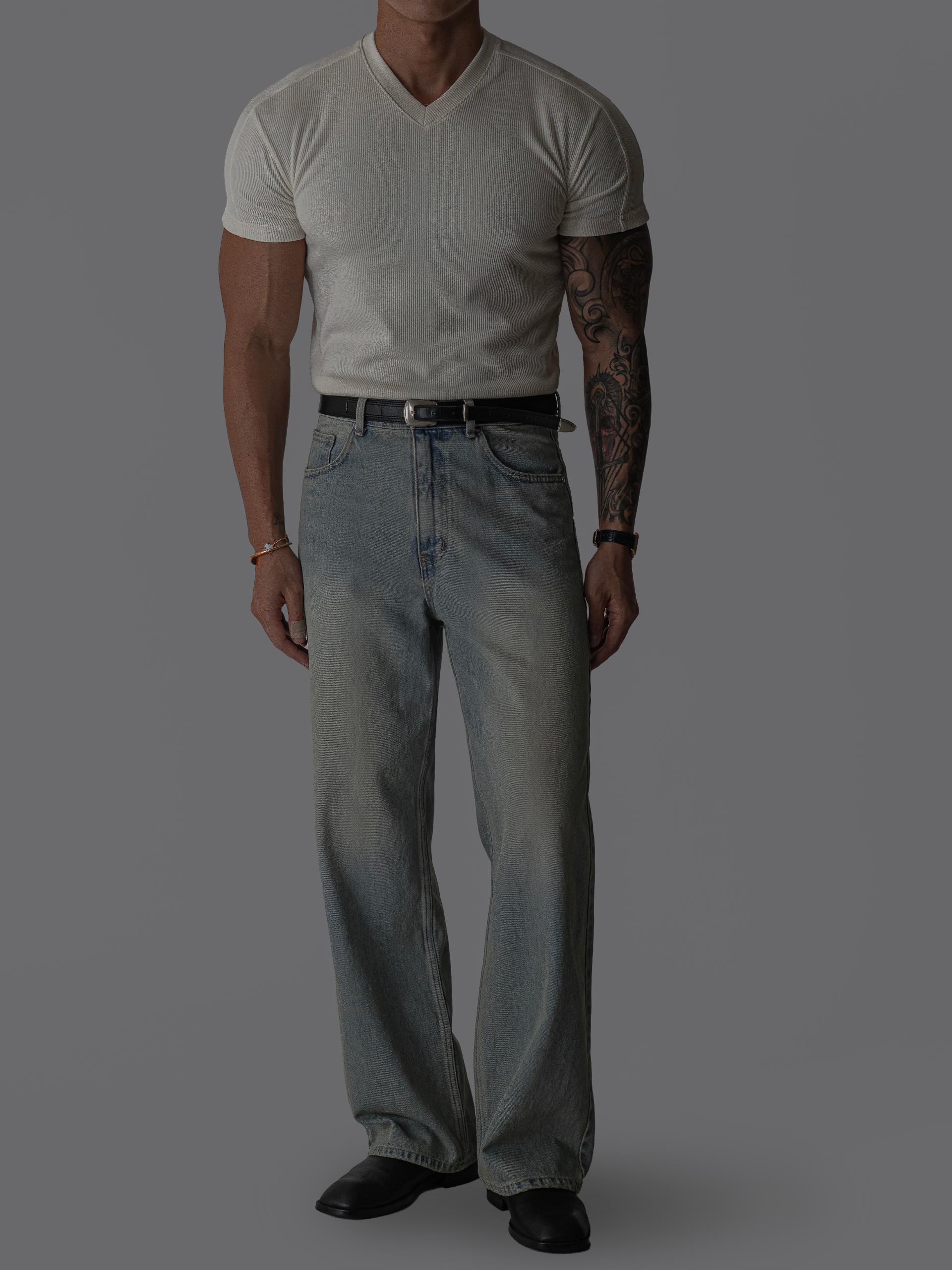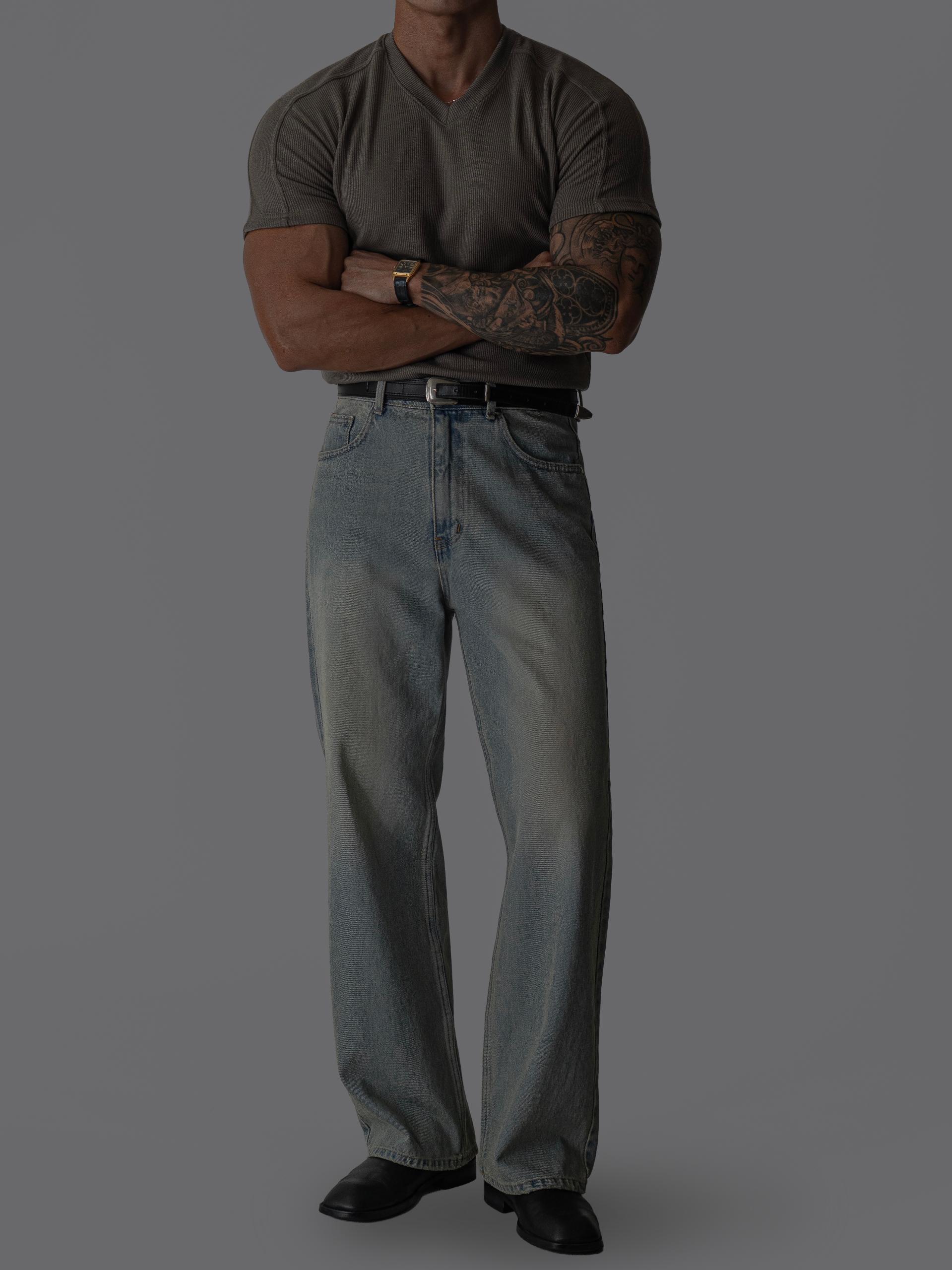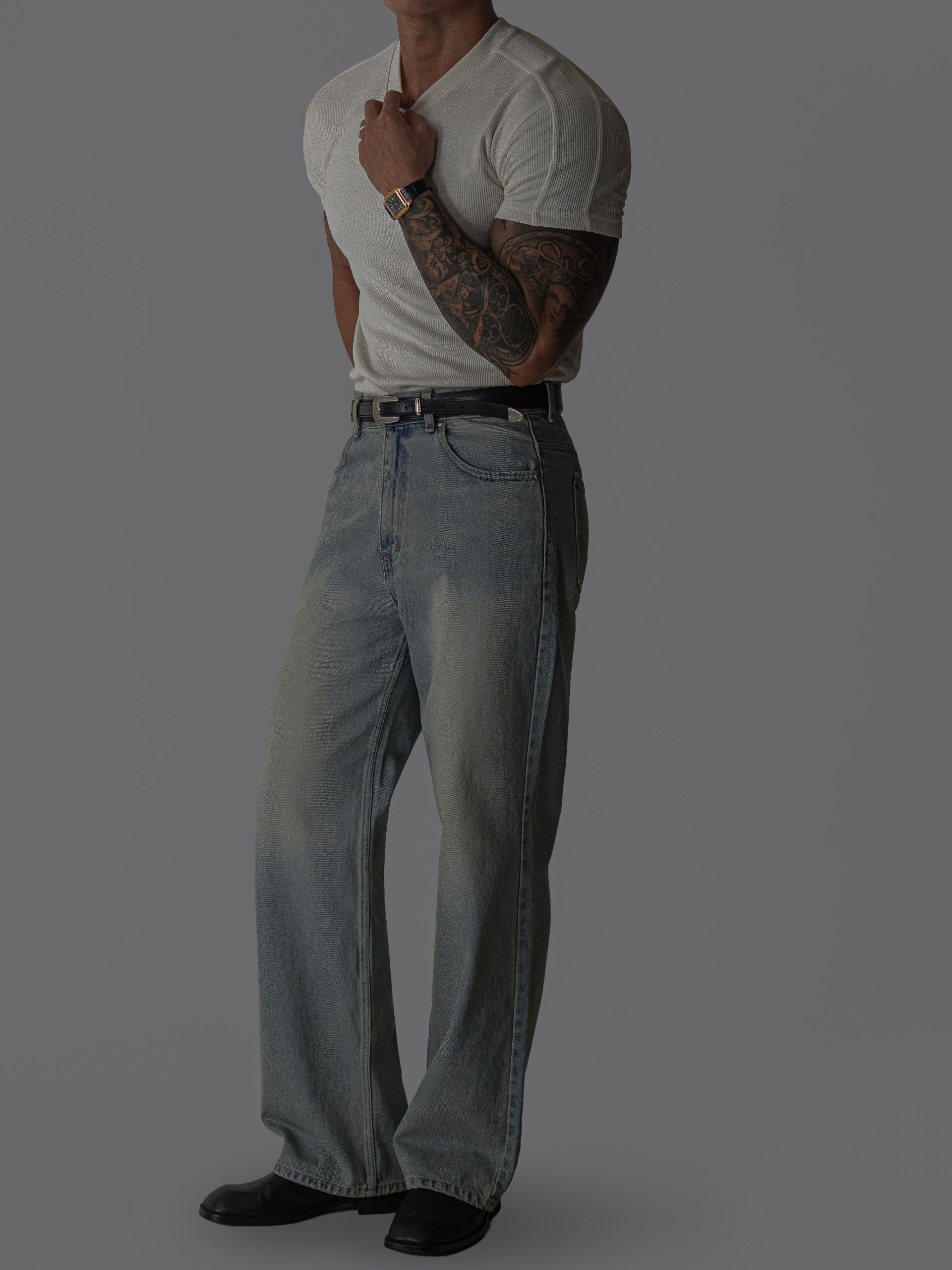 하의 - 빈티지 바이오 워싱 데님 팬츠