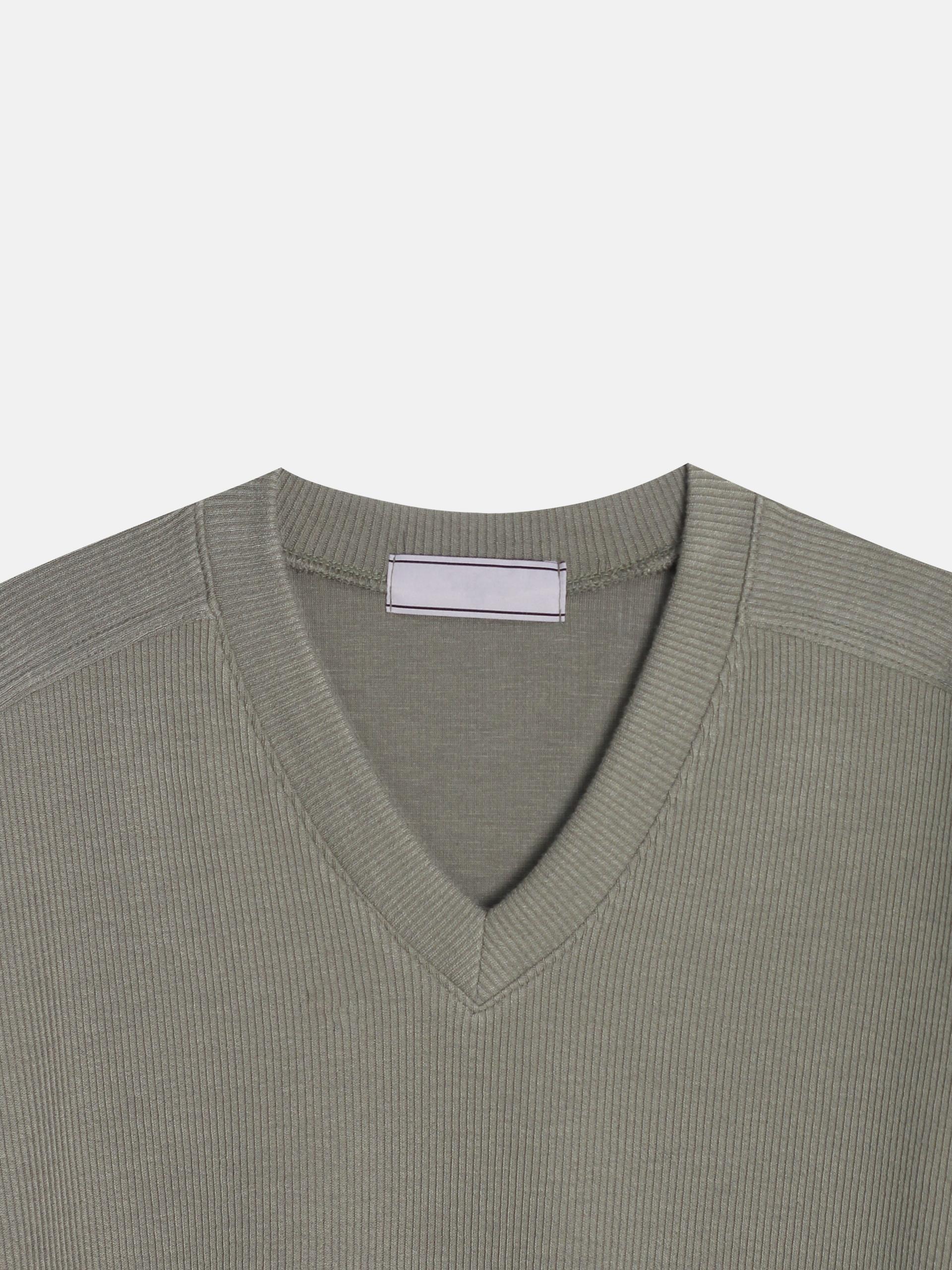 (1+1할인) 볼륨숄더 브이넥 골지 니트 티셔츠 (6color)