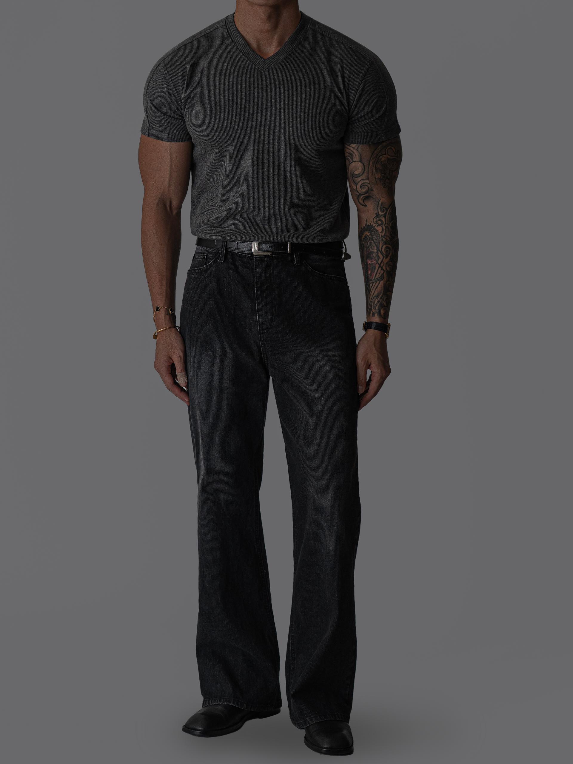 하의 - ikkei PRODUCT 프리미엄 워싱 플레어 골지 데님 팬츠