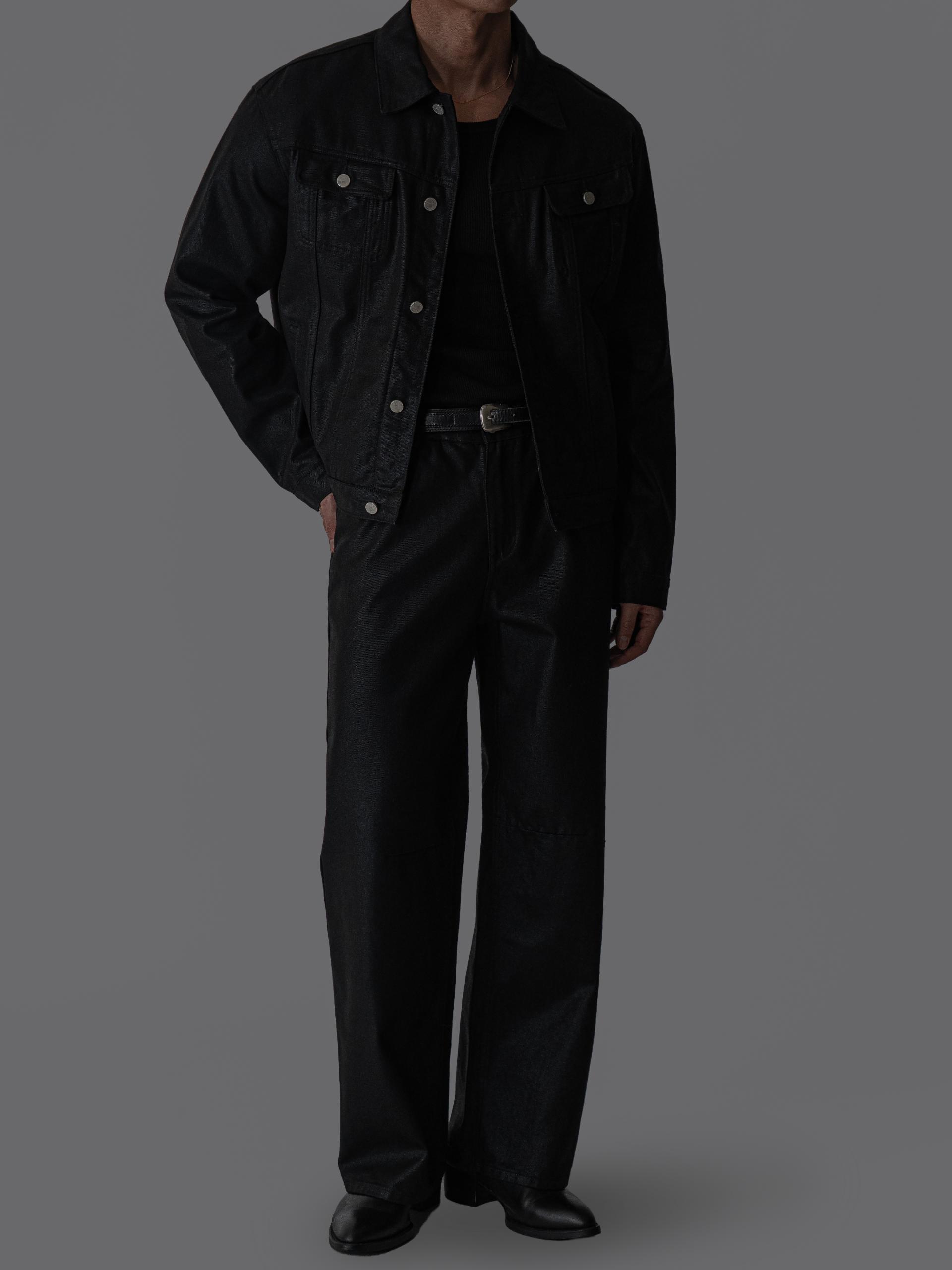 - 10수 데님에 은은한 코팅감을 더해 세련된 무드와 매끈한 텍스처 연출