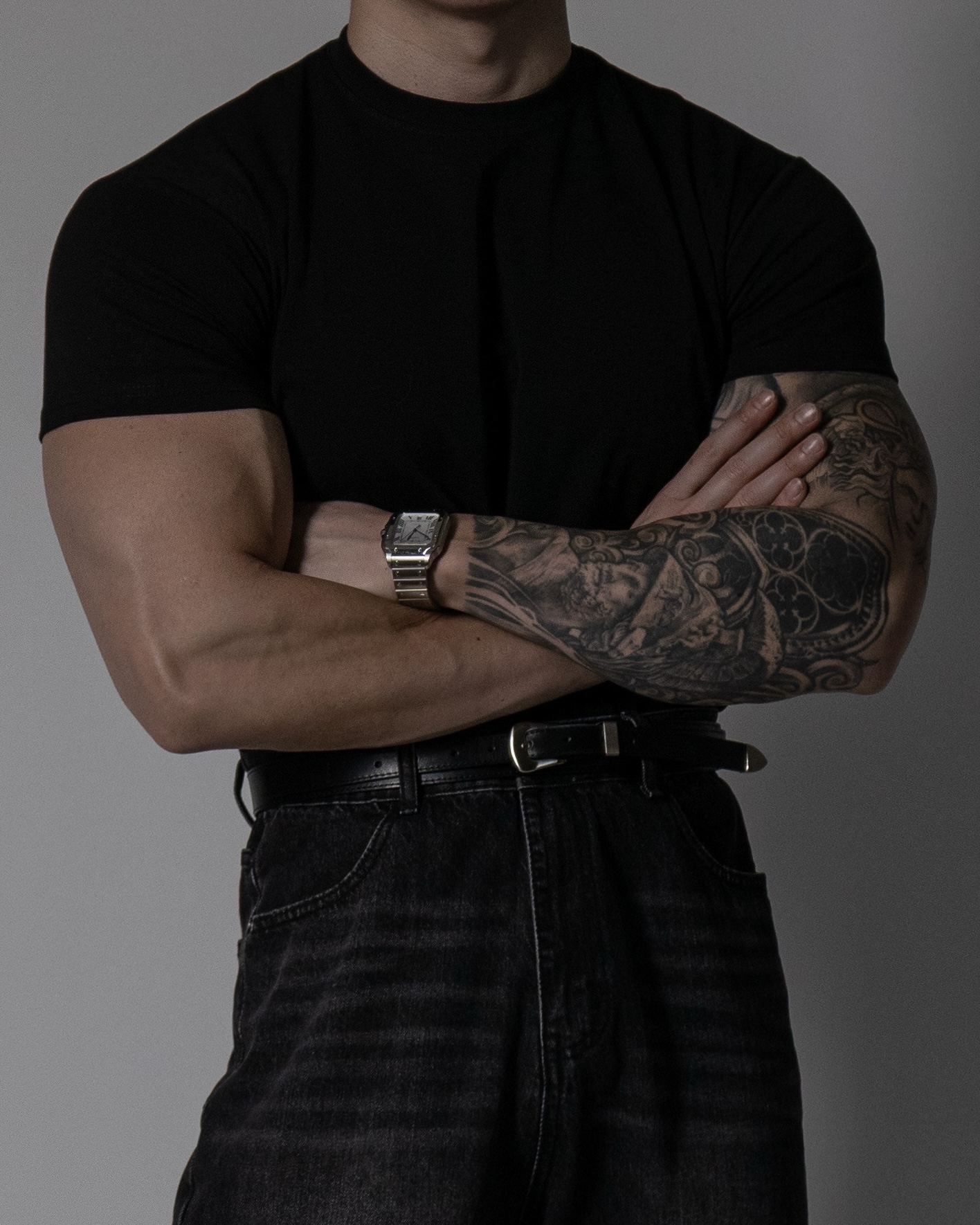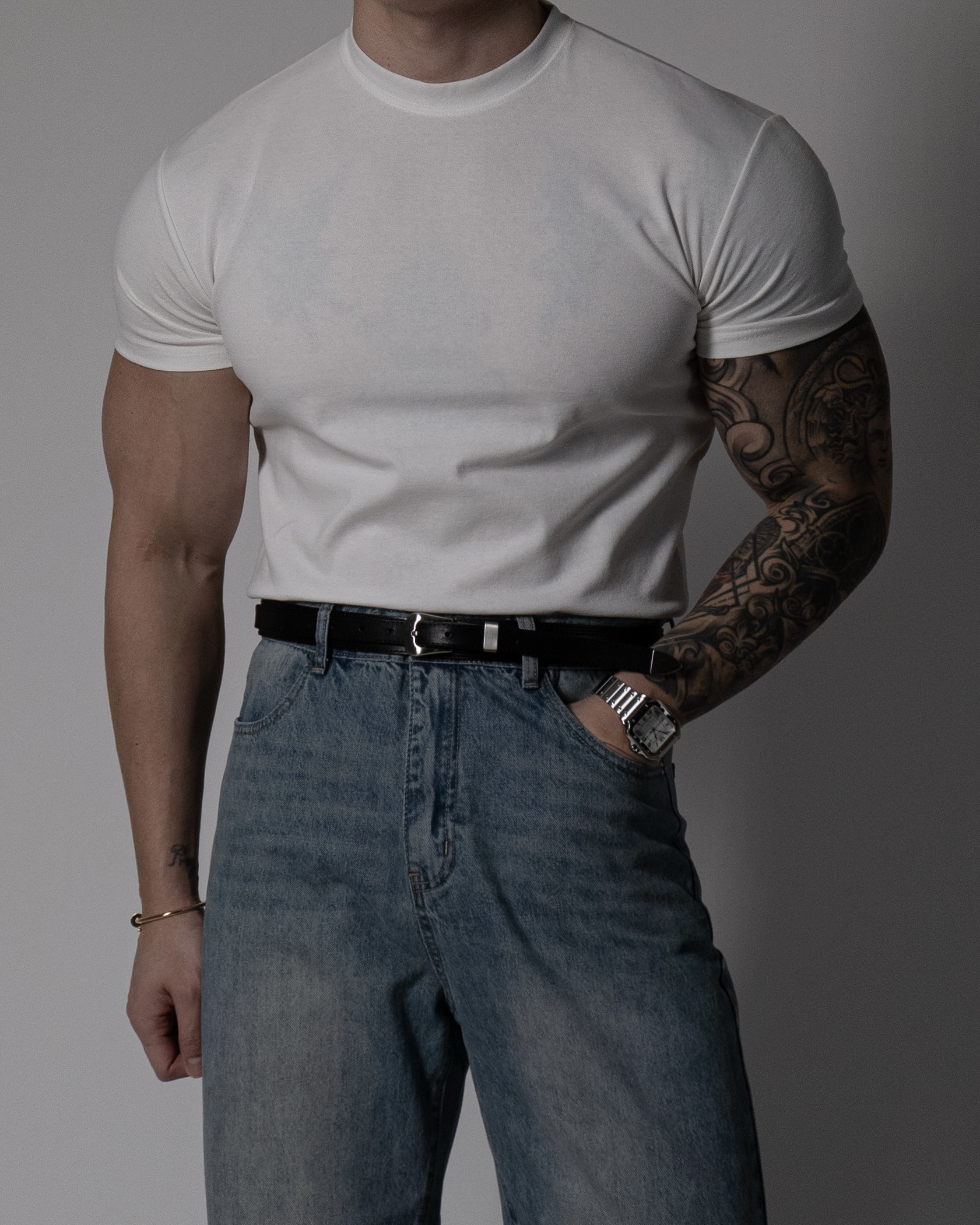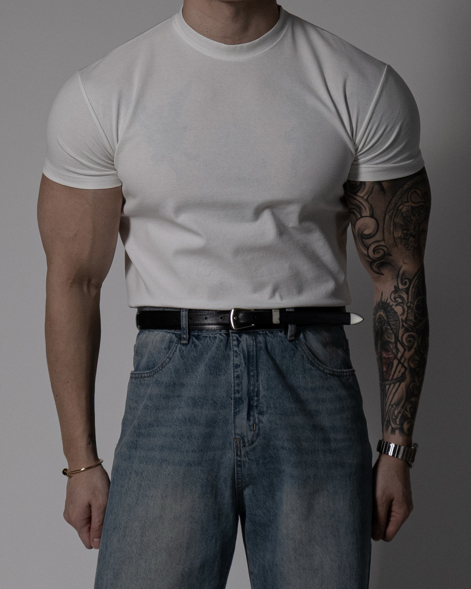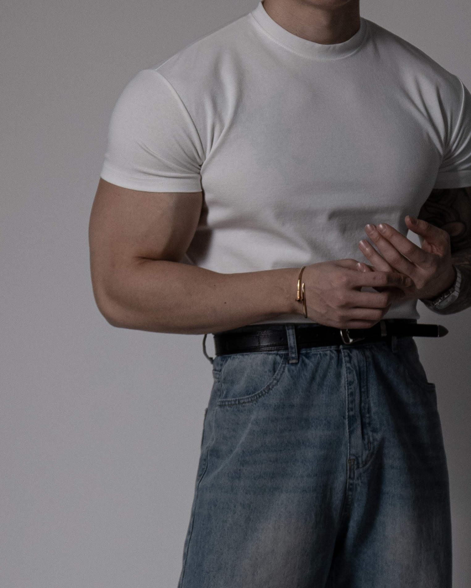 - 머슬핏 디자인으로 타이트한 암홀 라인과 높은 탄성의 넥 라인