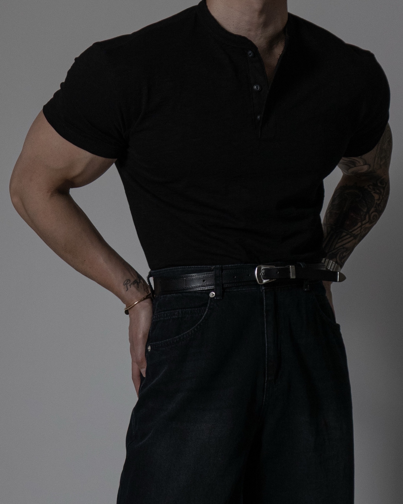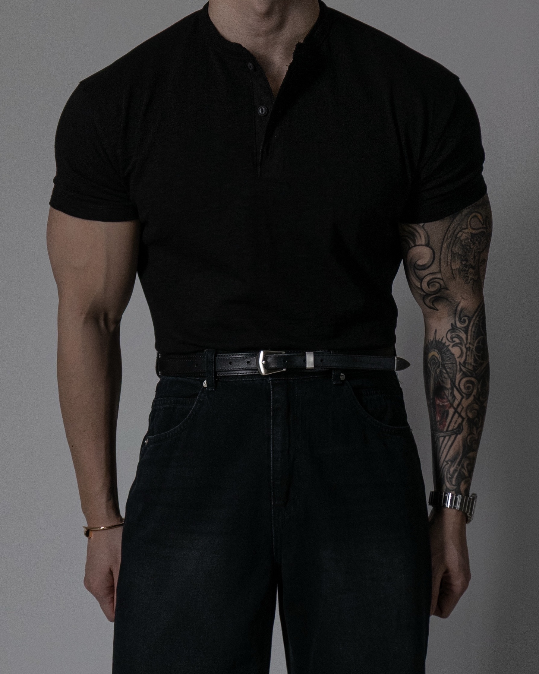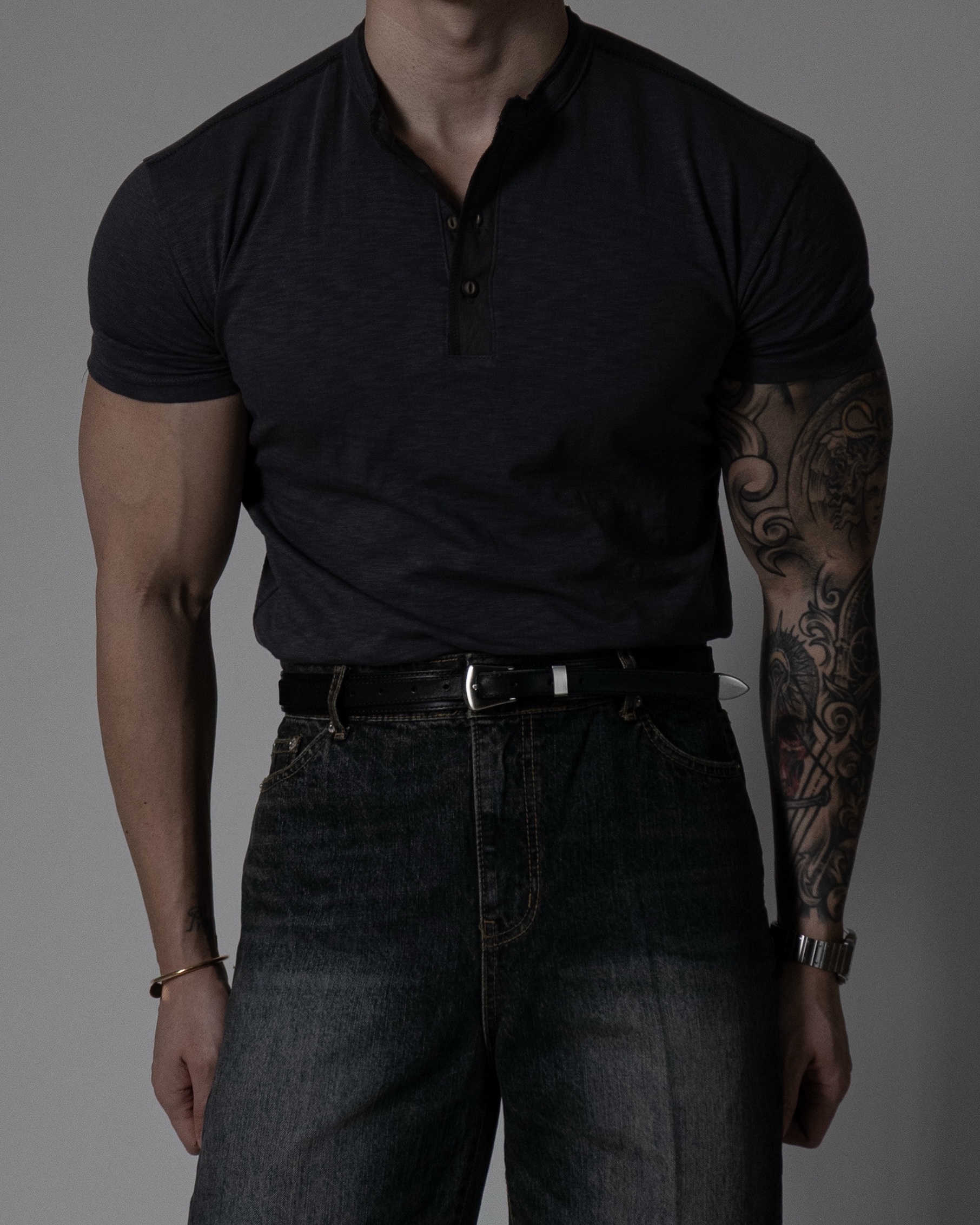 - 고급스러운 텍스처의 프리미엄 슬라브 원단의 헨리넥 티셔츠