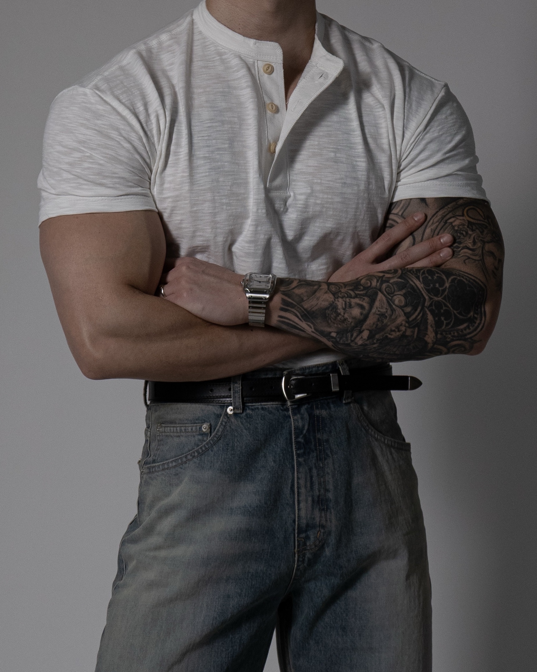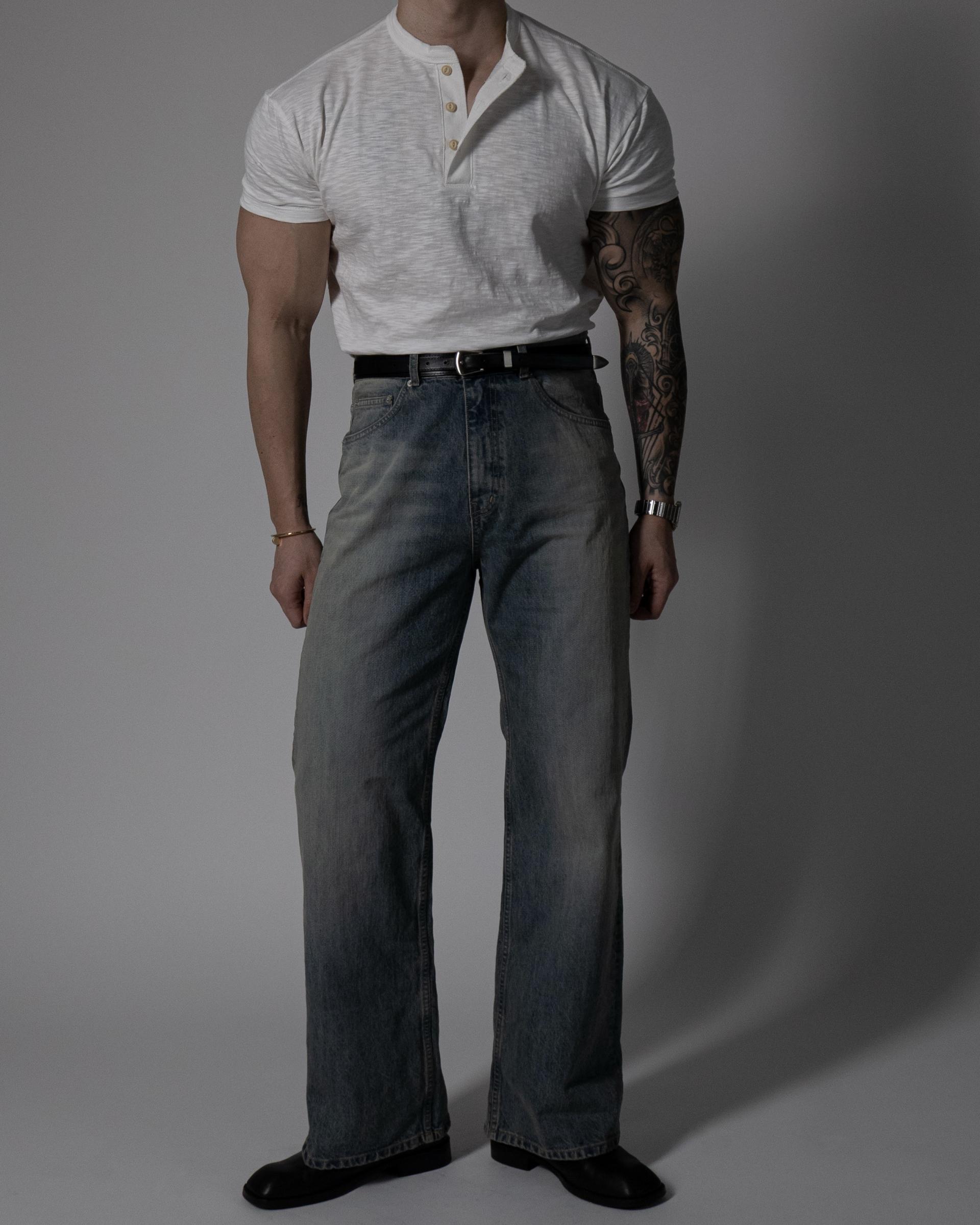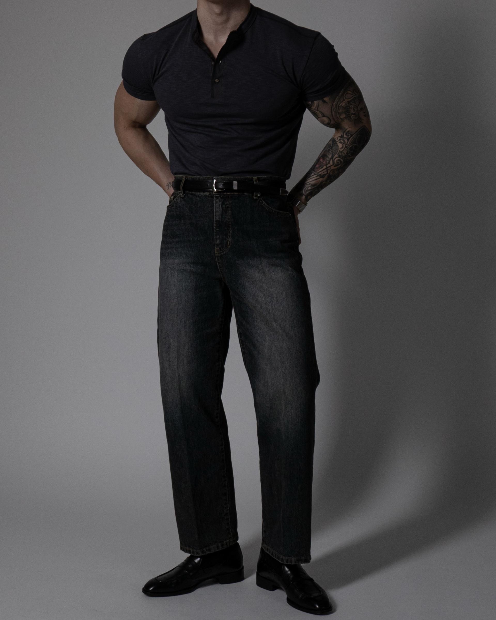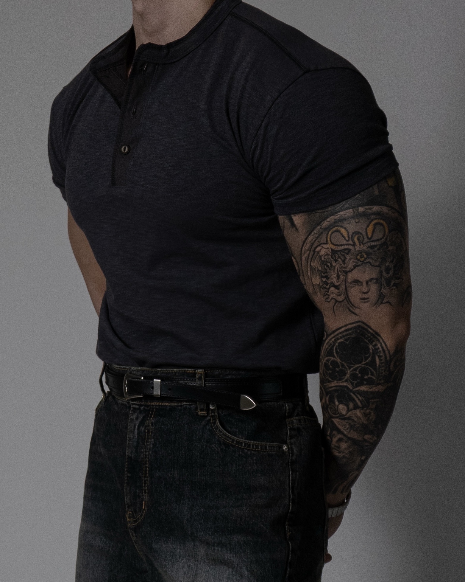 - 고급스러운 텍스처의 프리미엄 슬라브 원단의 헨리넥 티셔츠