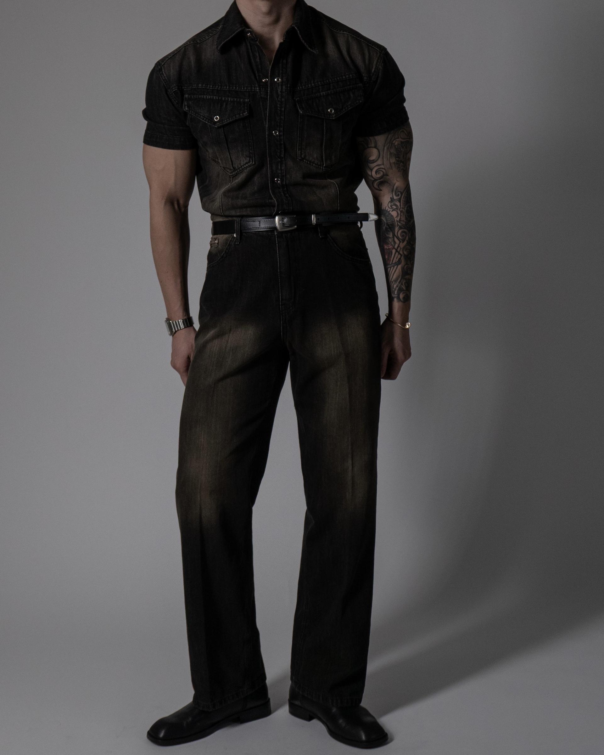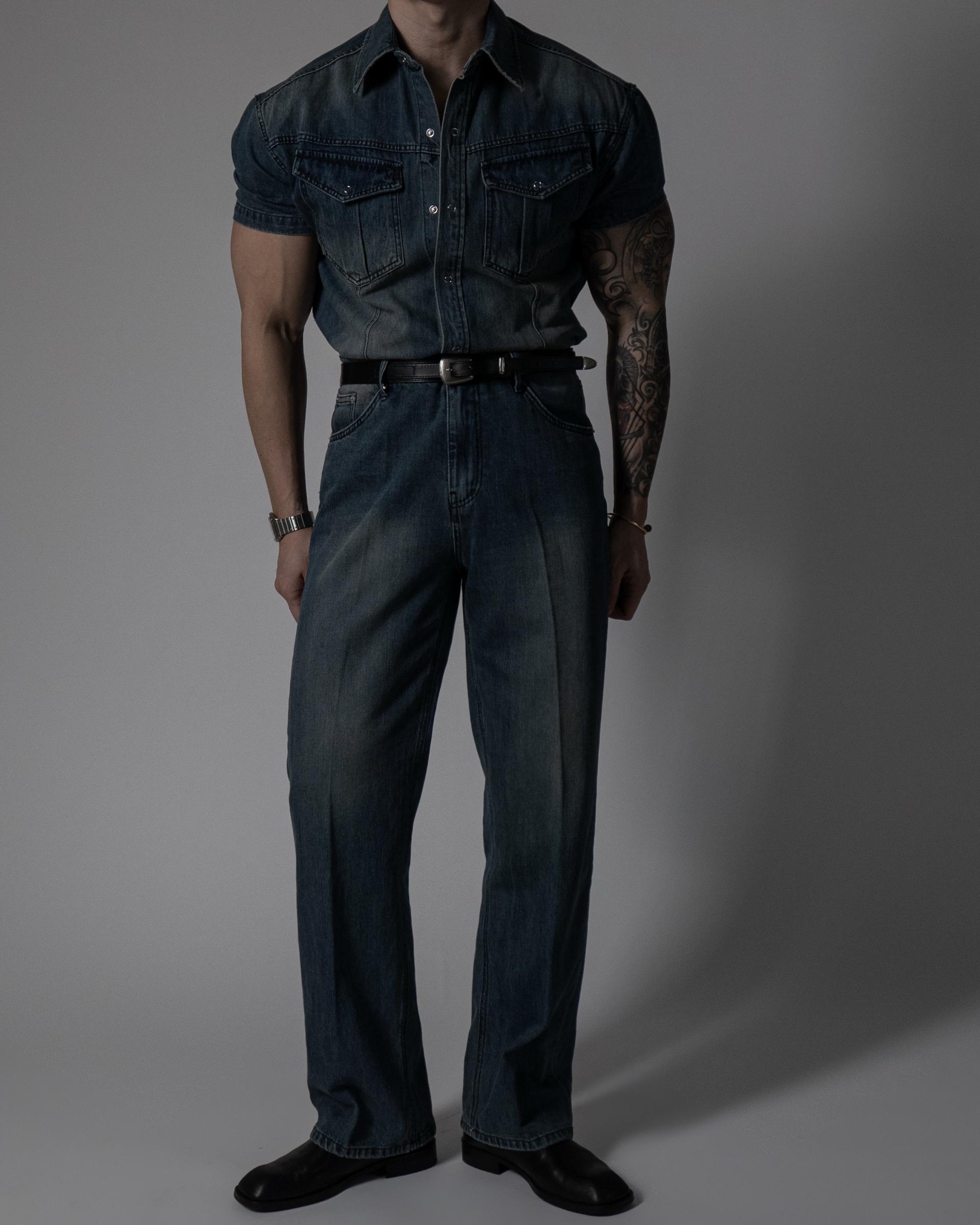 - 미엘 쿨에버 머슬핏 웨스턴 데님 반팔 셔츠와 셋업으로 착용 가능