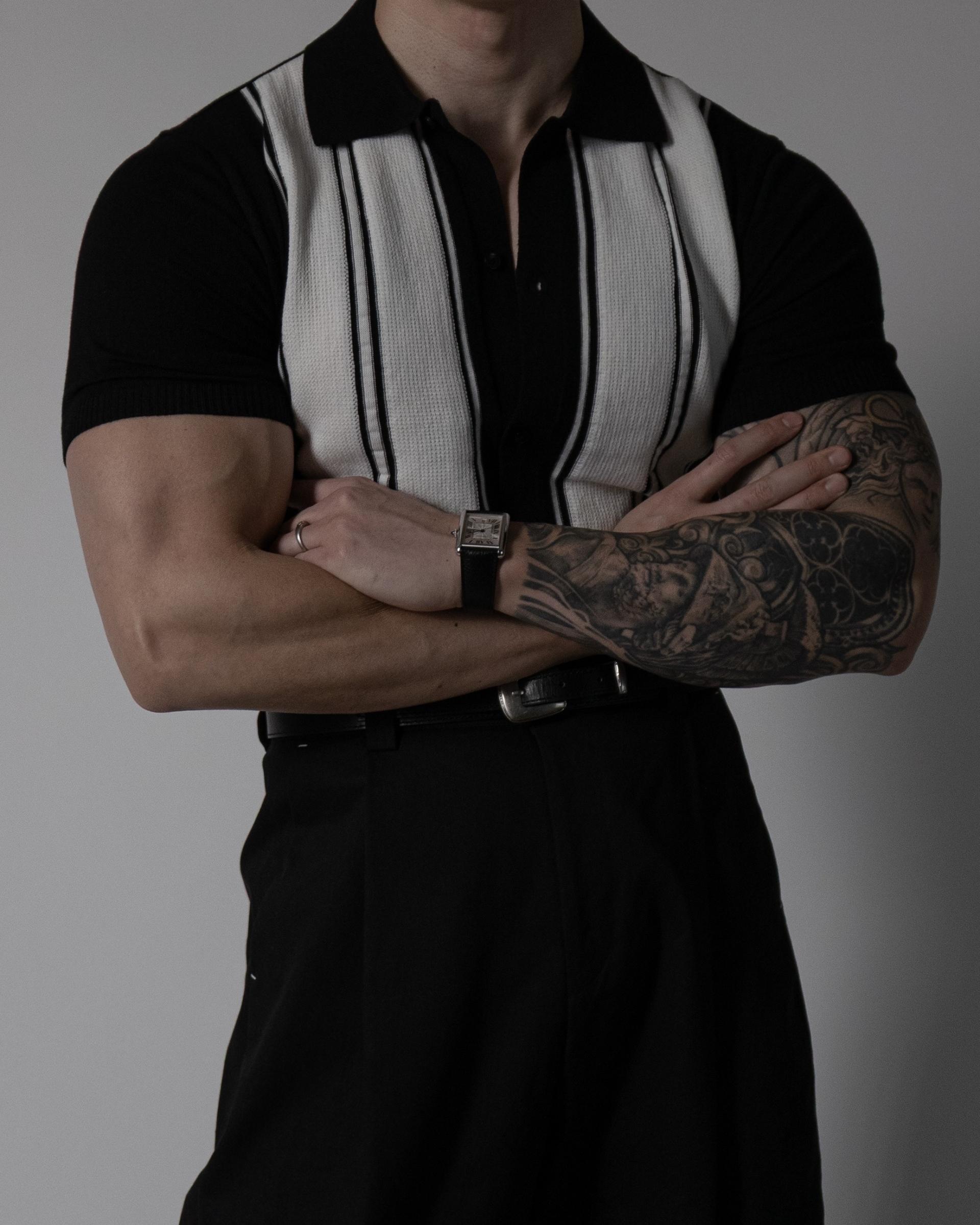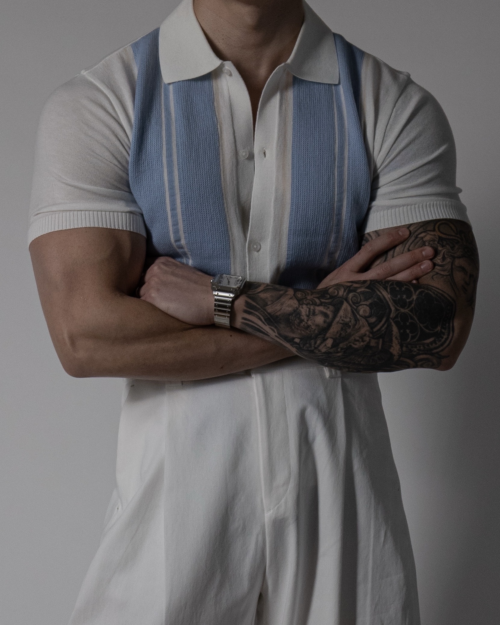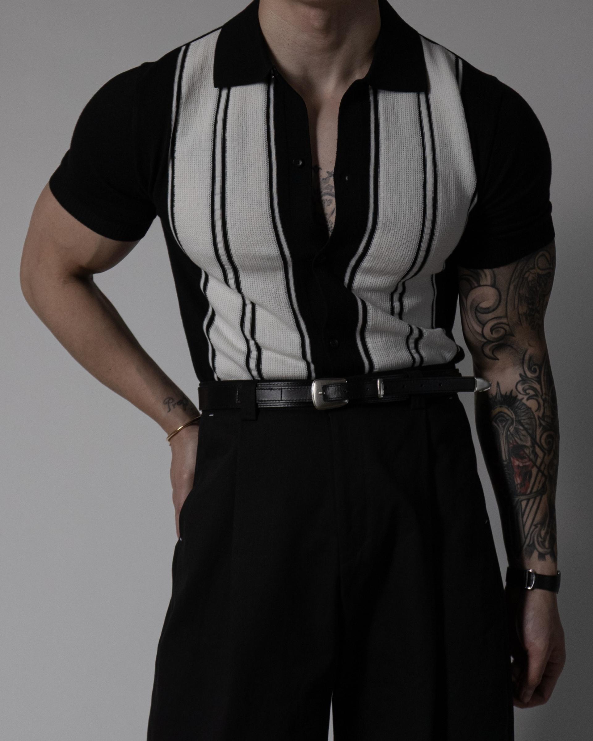 - 익케의 핏 특유의 세련된 머슬핏 반팔 가디건