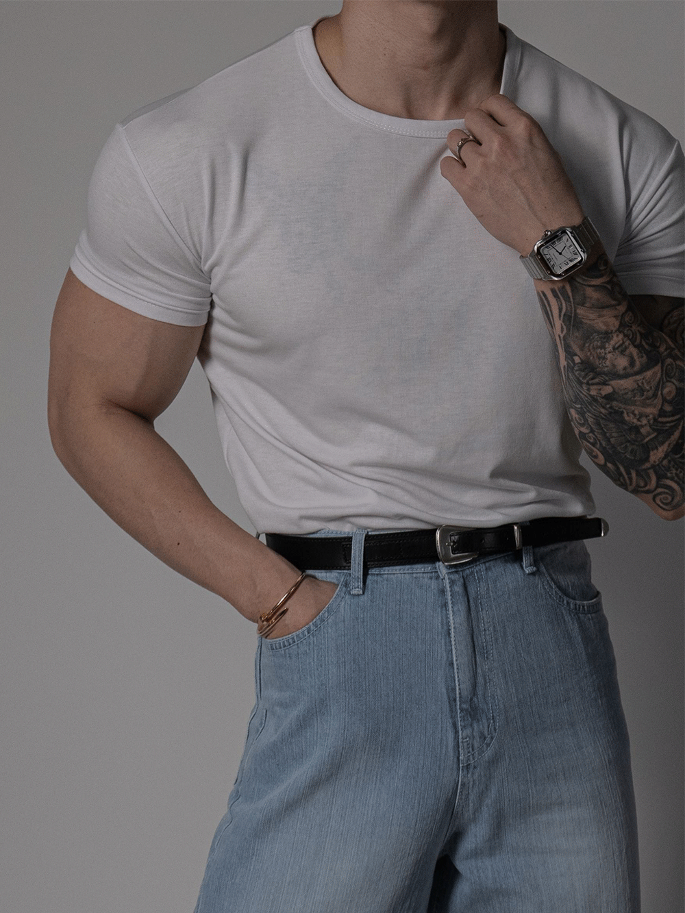 (1+1할인) 머슬핏 실키 유넥 반팔 티셔츠 (3color)