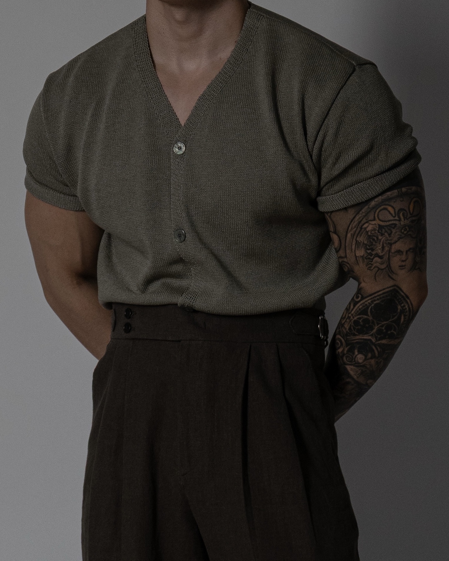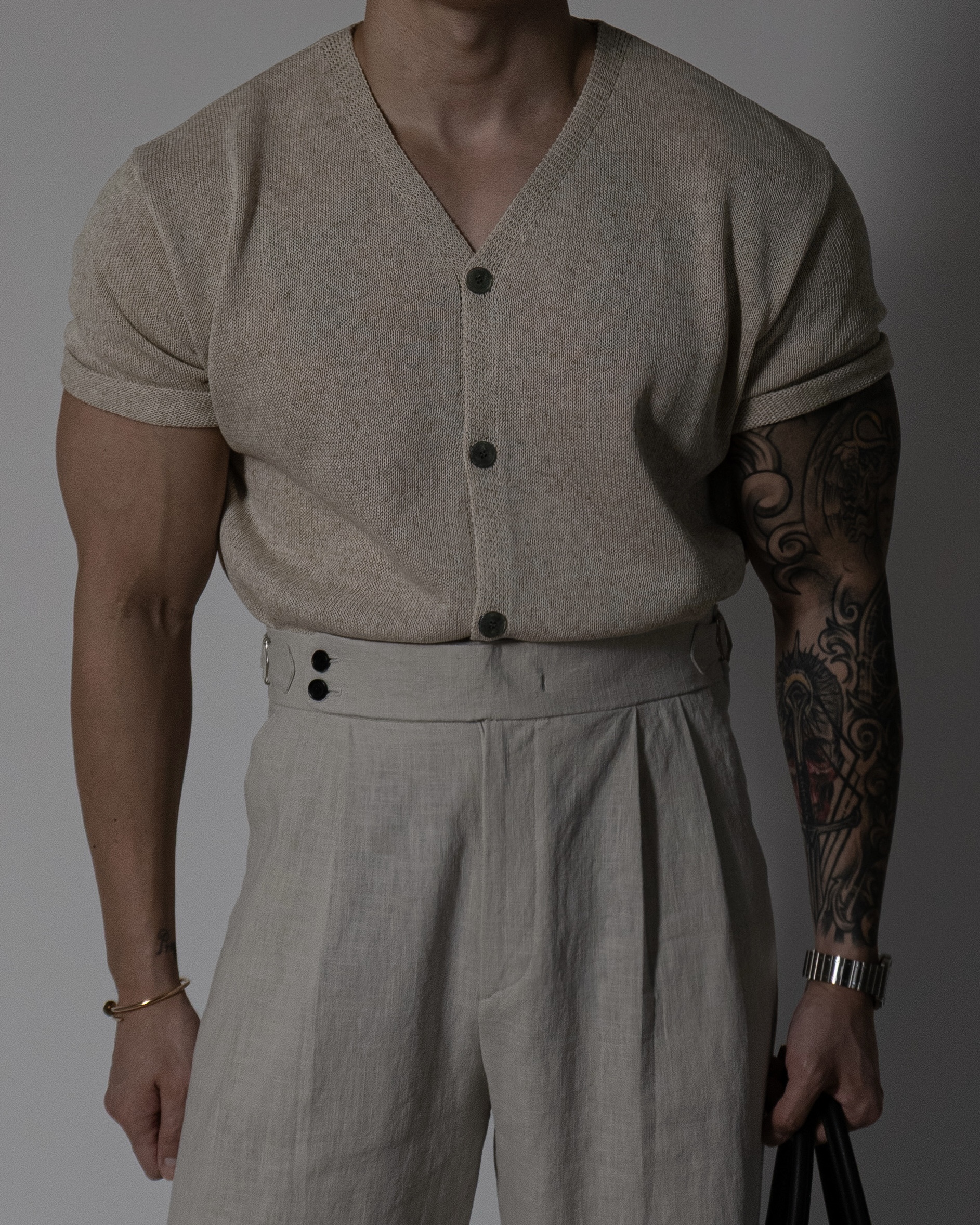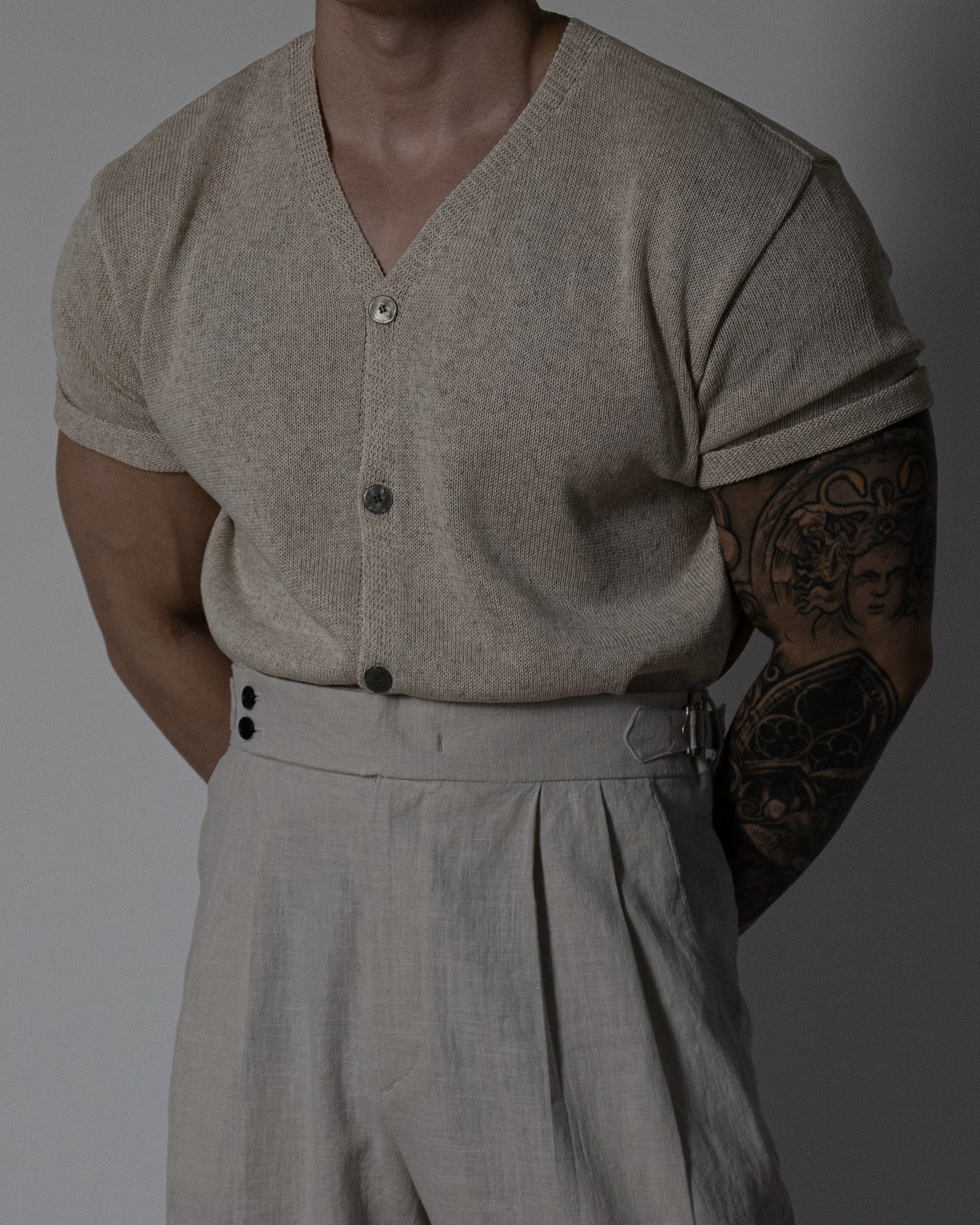 - 린넨, 아크릴 혼방으로 여름용 반팔 가디건