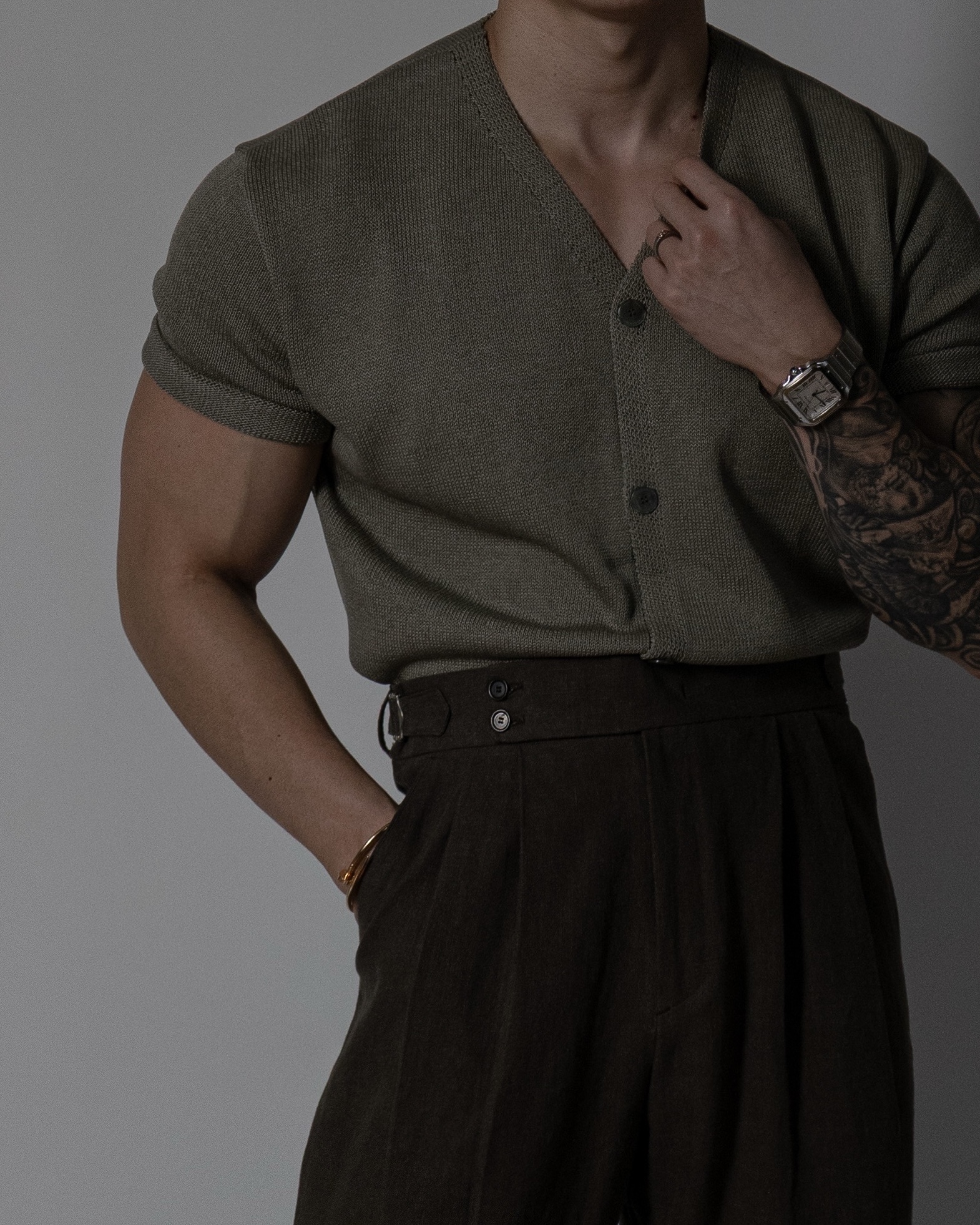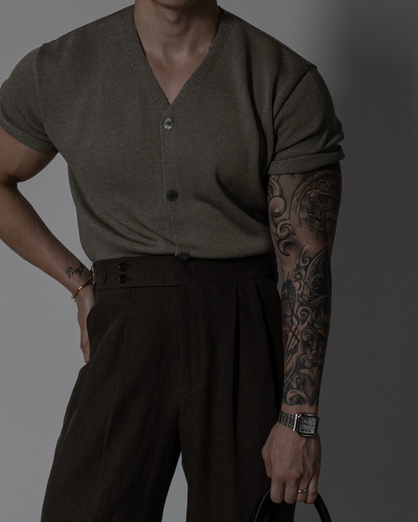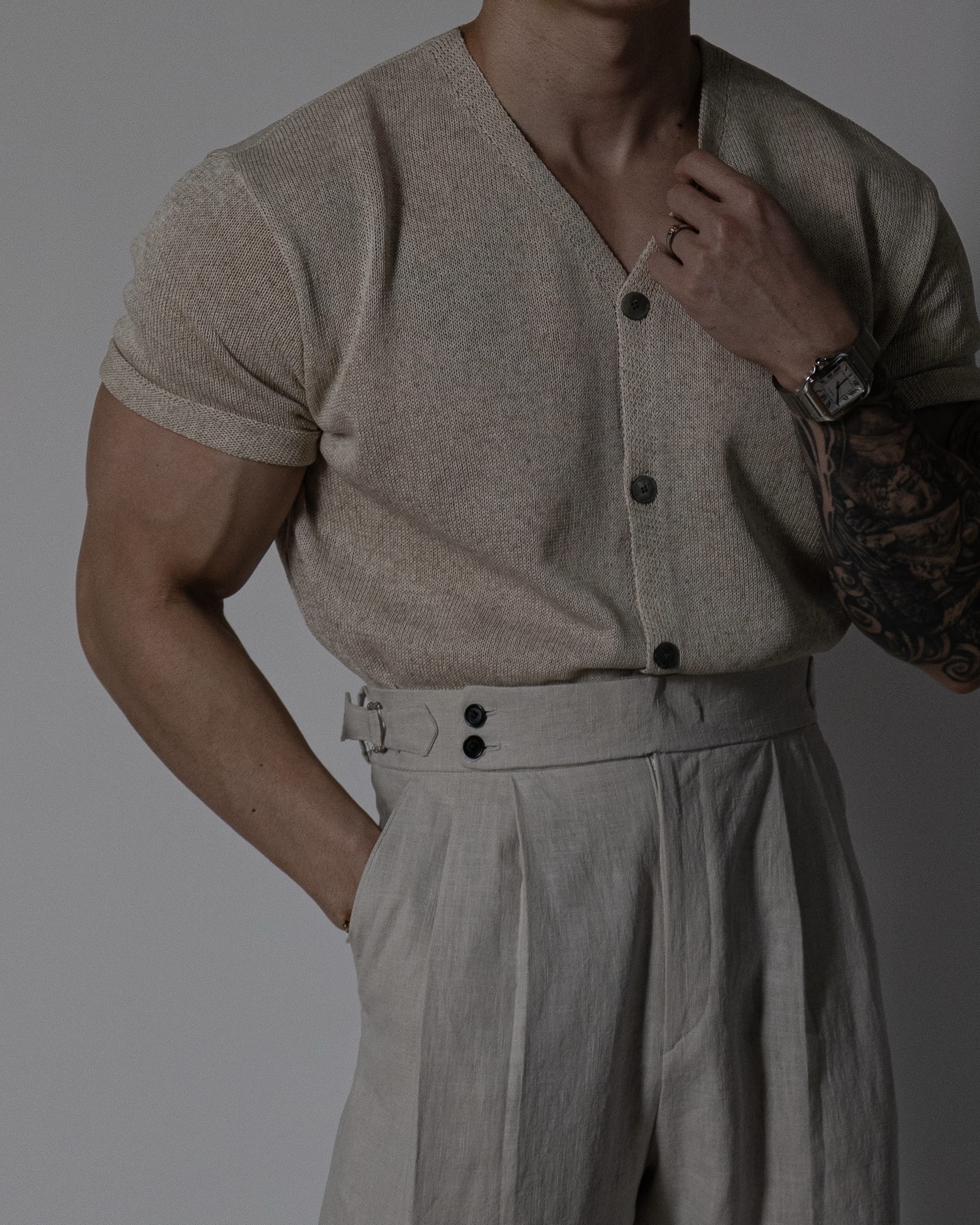 - 린넨, 아크릴 혼방으로 여름용 반팔 가디건