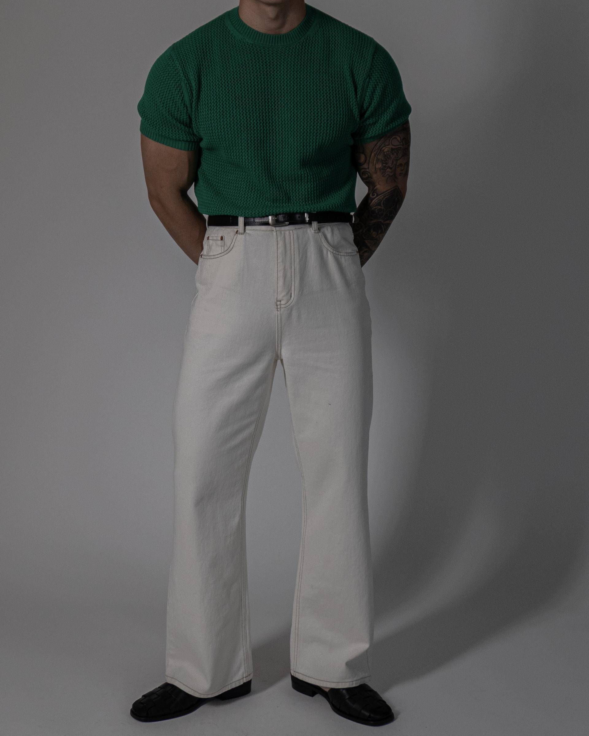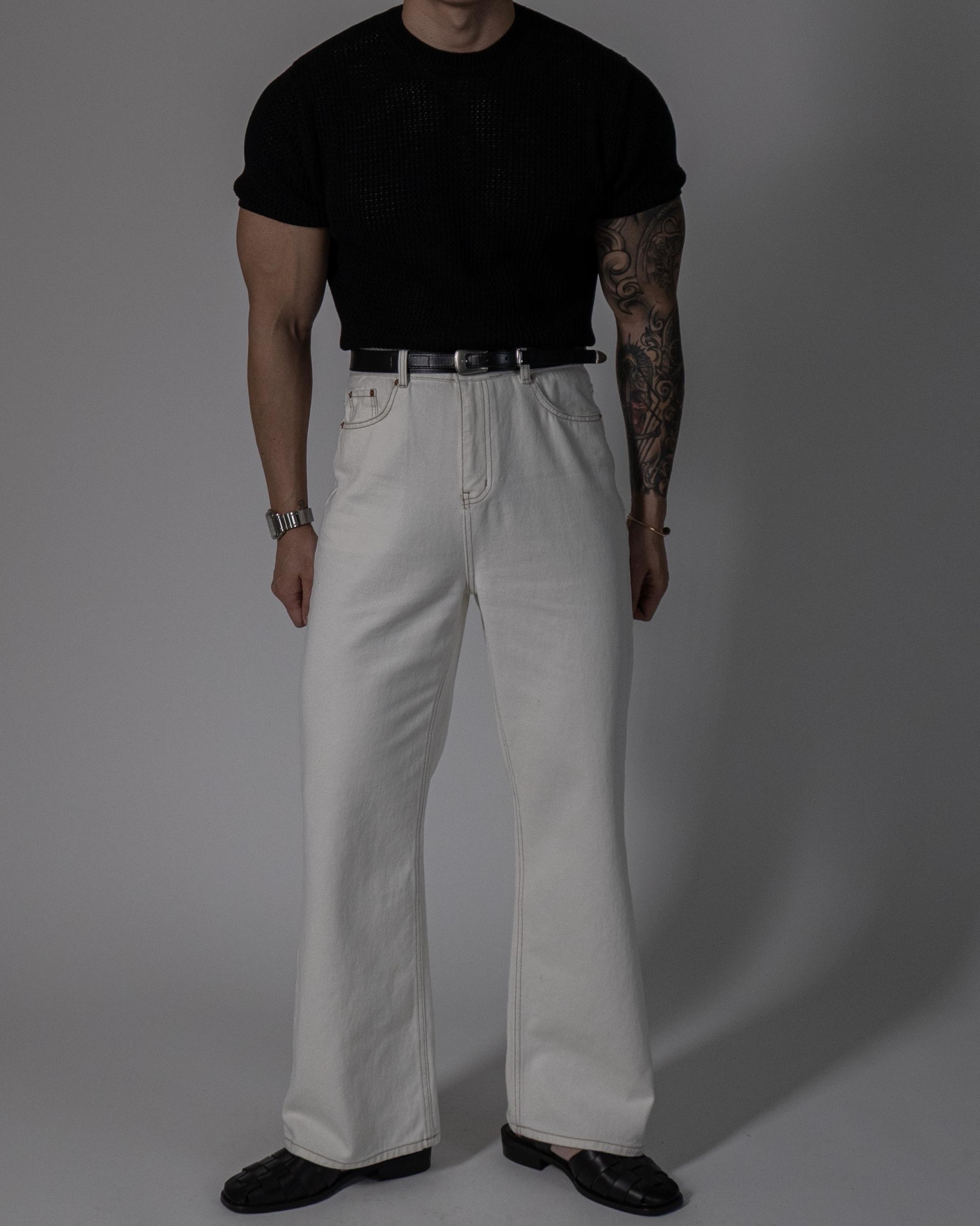 하의 - 화이트 오가닉 코튼 플레어 팬츠