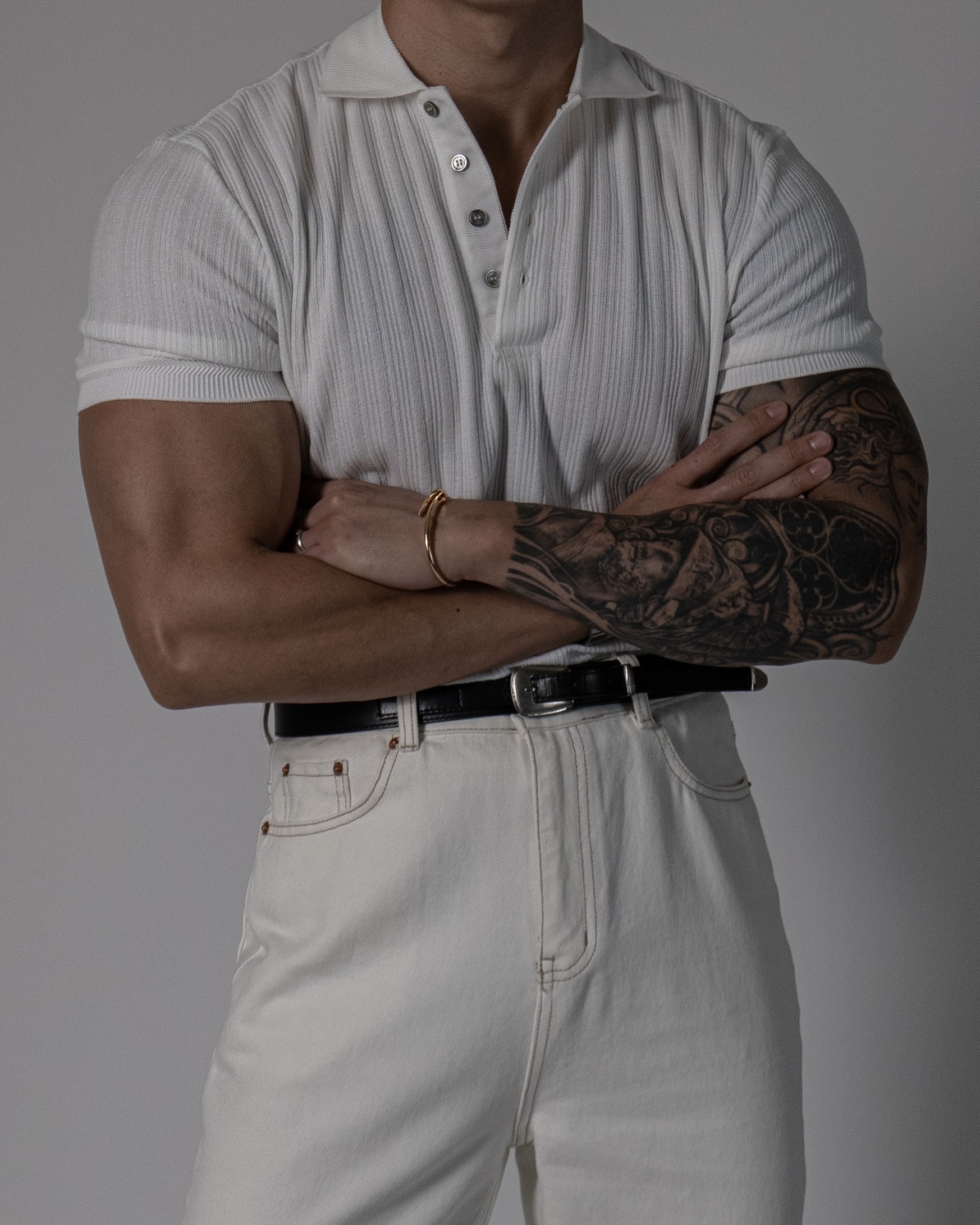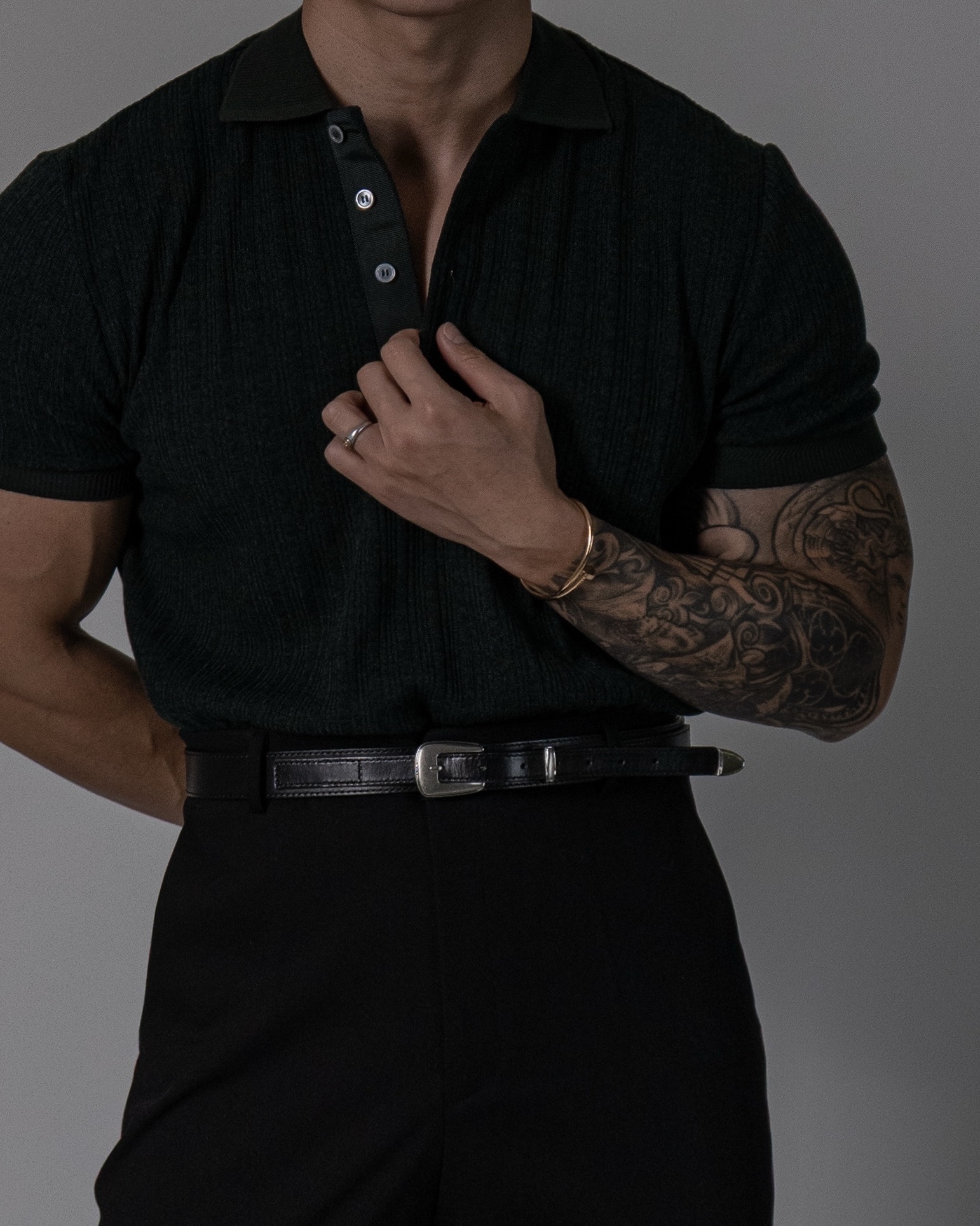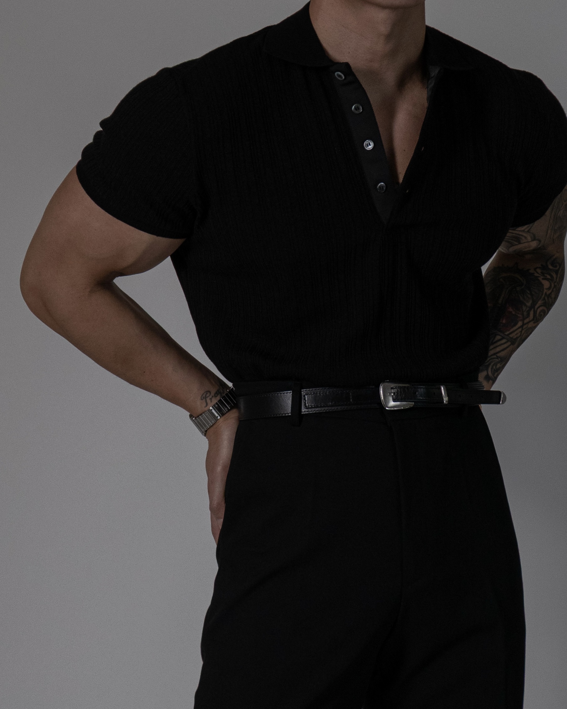 - 암홀을 꽉잡아주는 머슬핏 반팔 니트