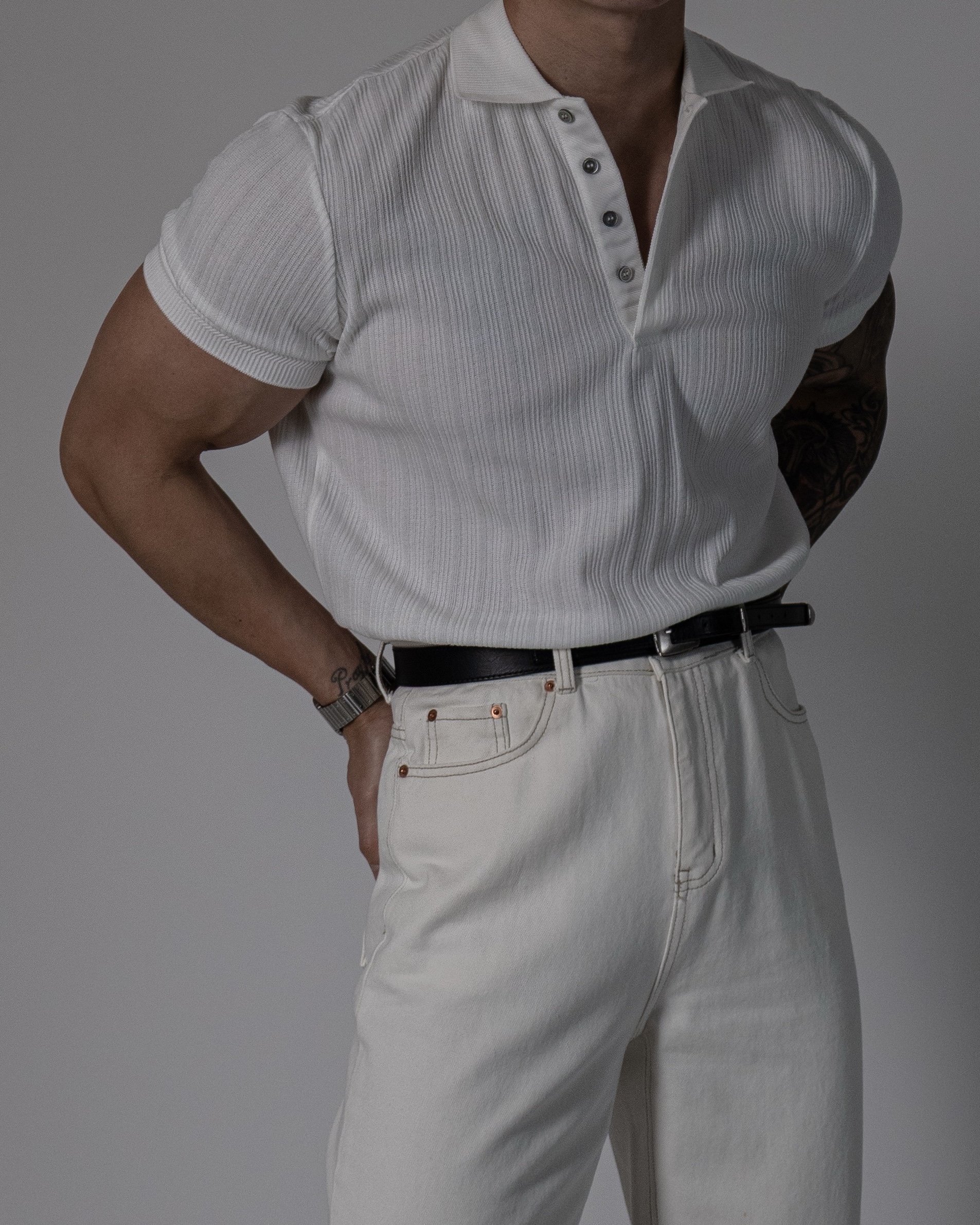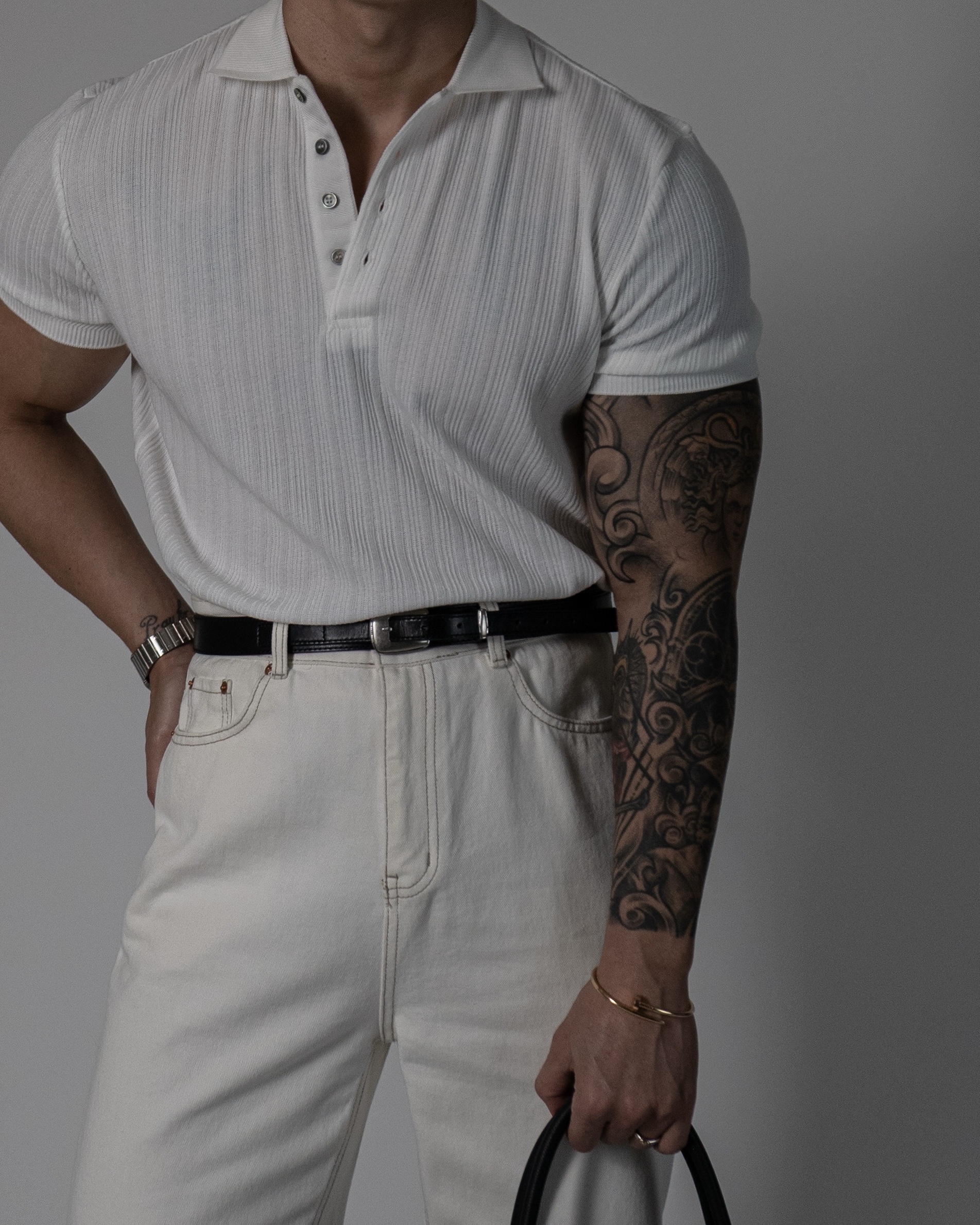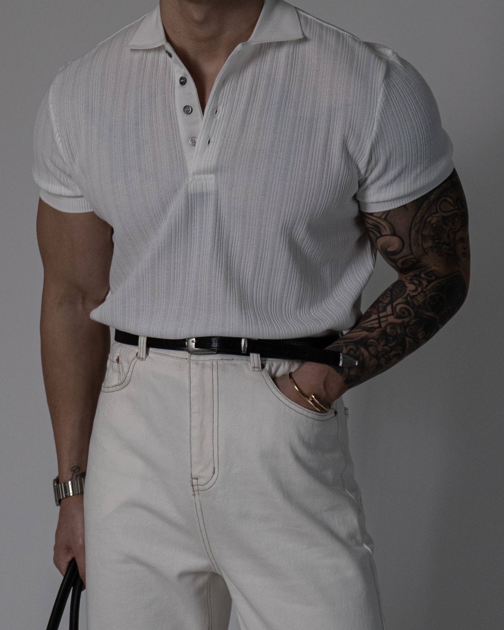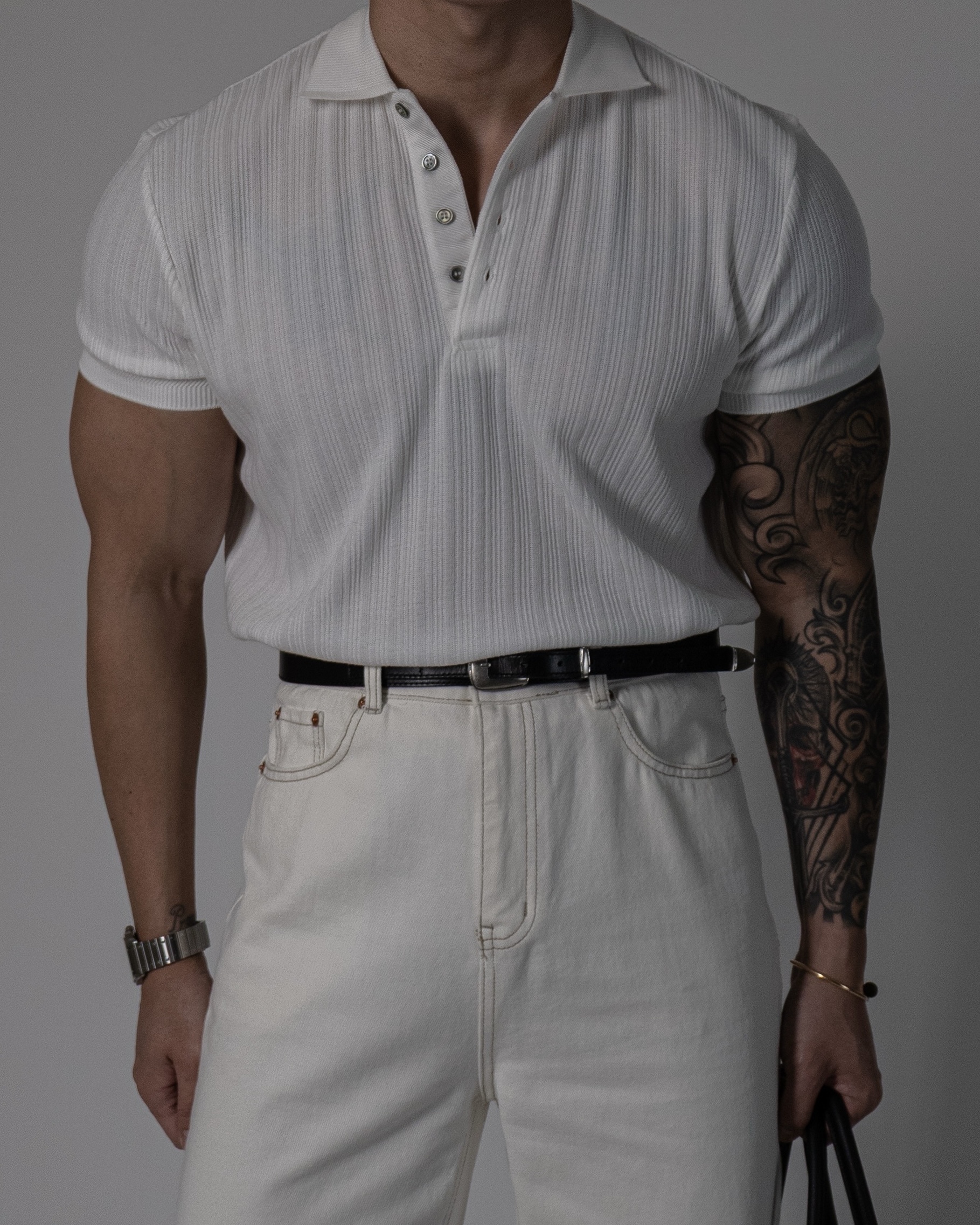 - 암홀을 꽉잡아주는 머슬핏 반팔 니트