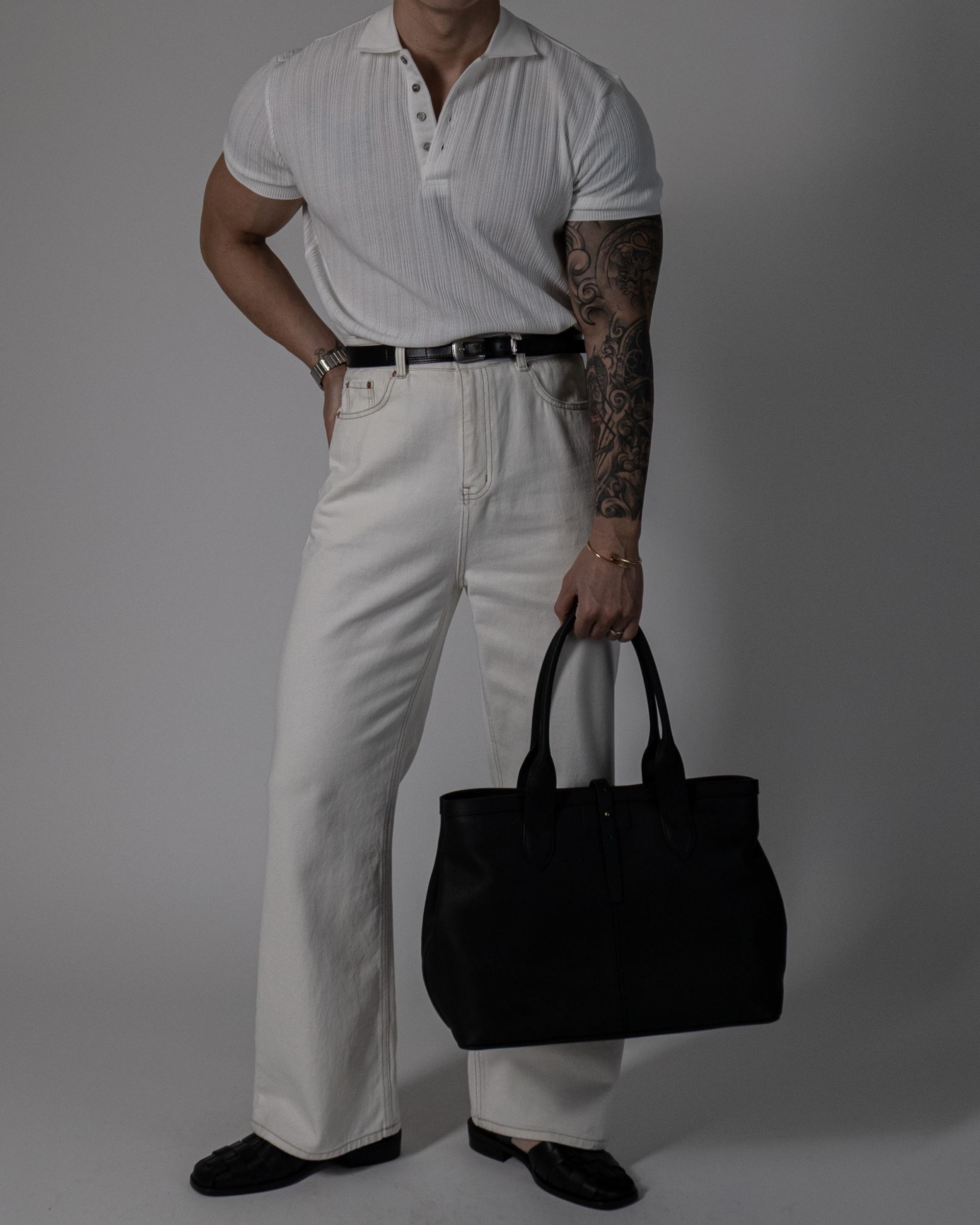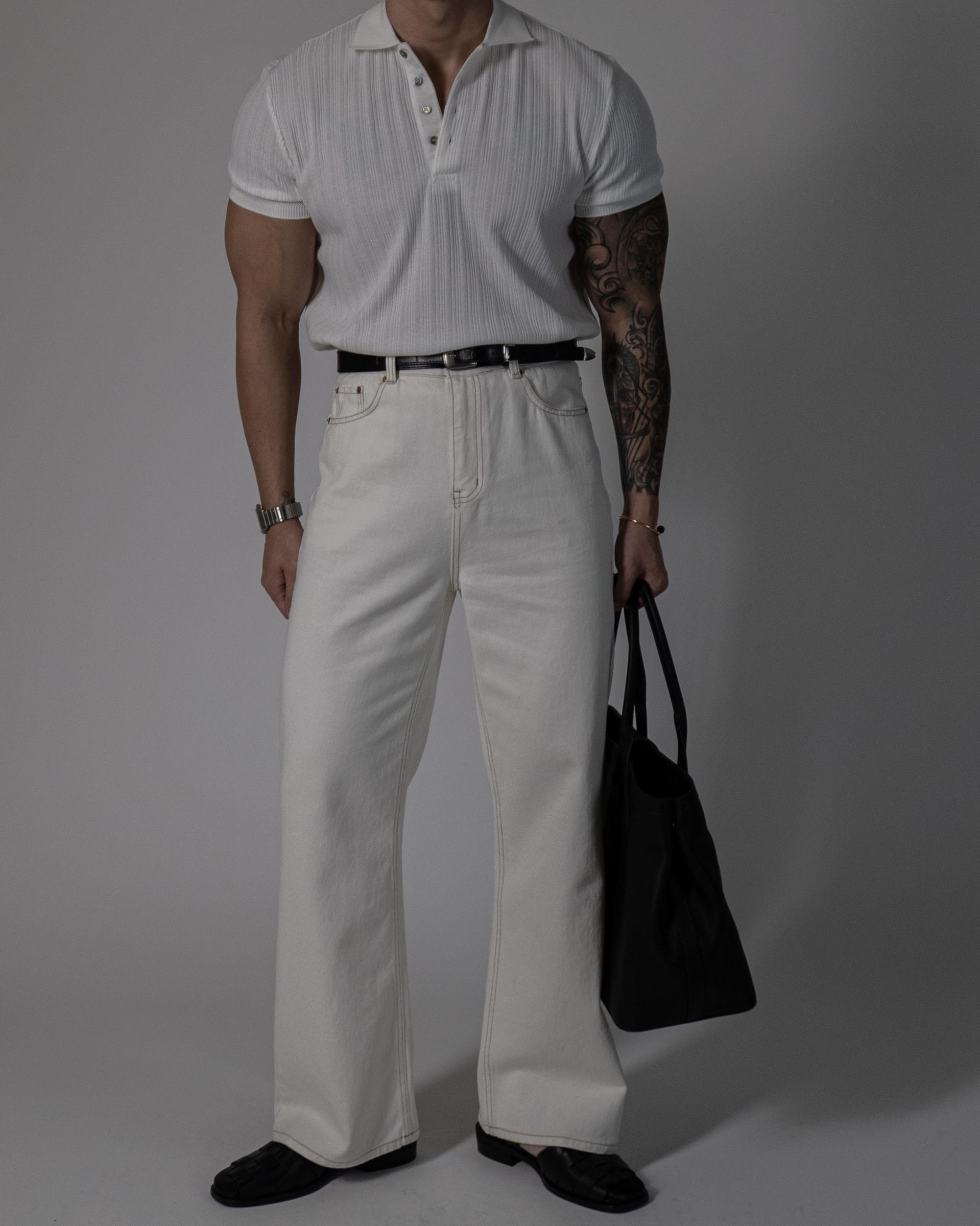 하의 - 화이트 오가닉 코튼 플레어 팬츠