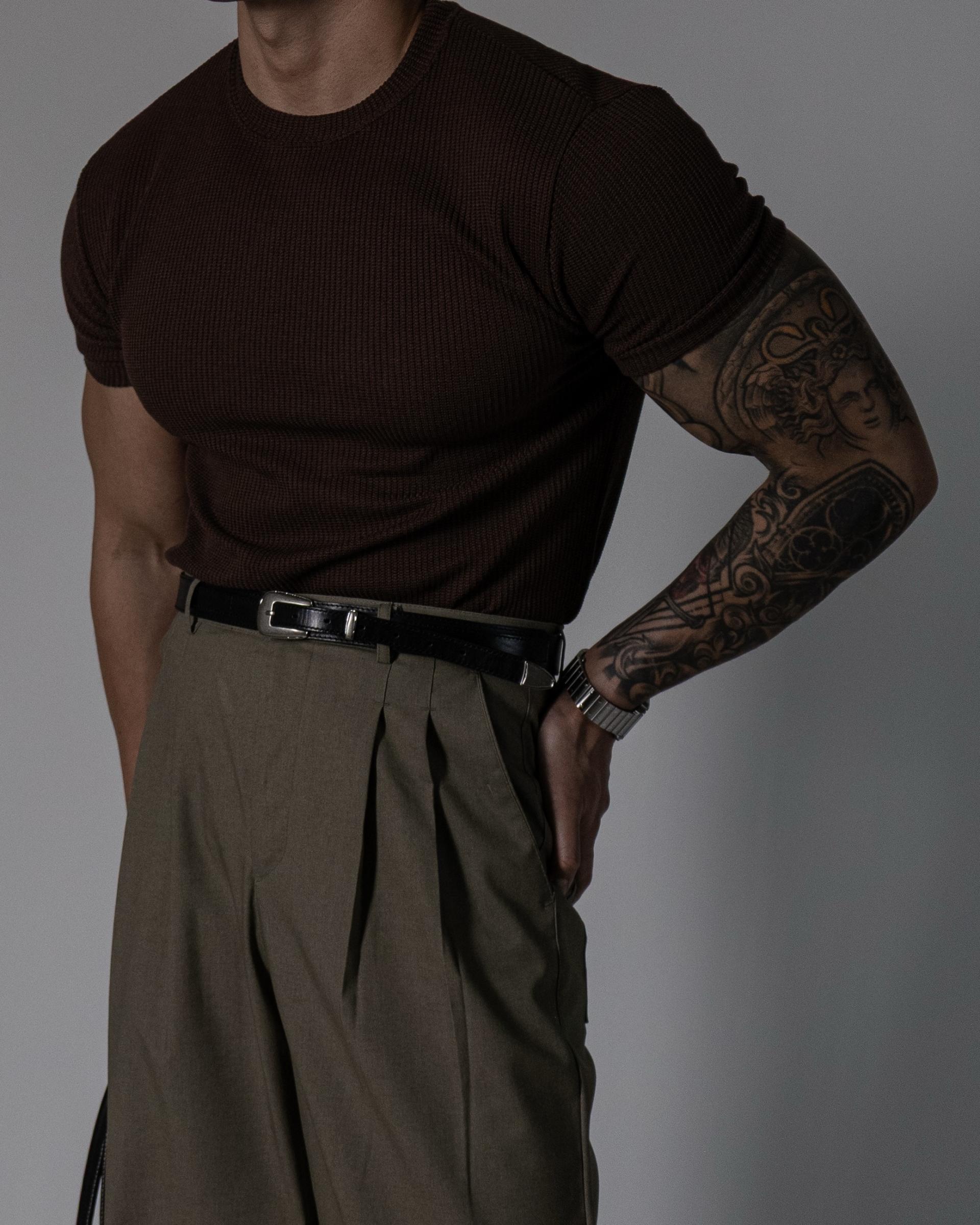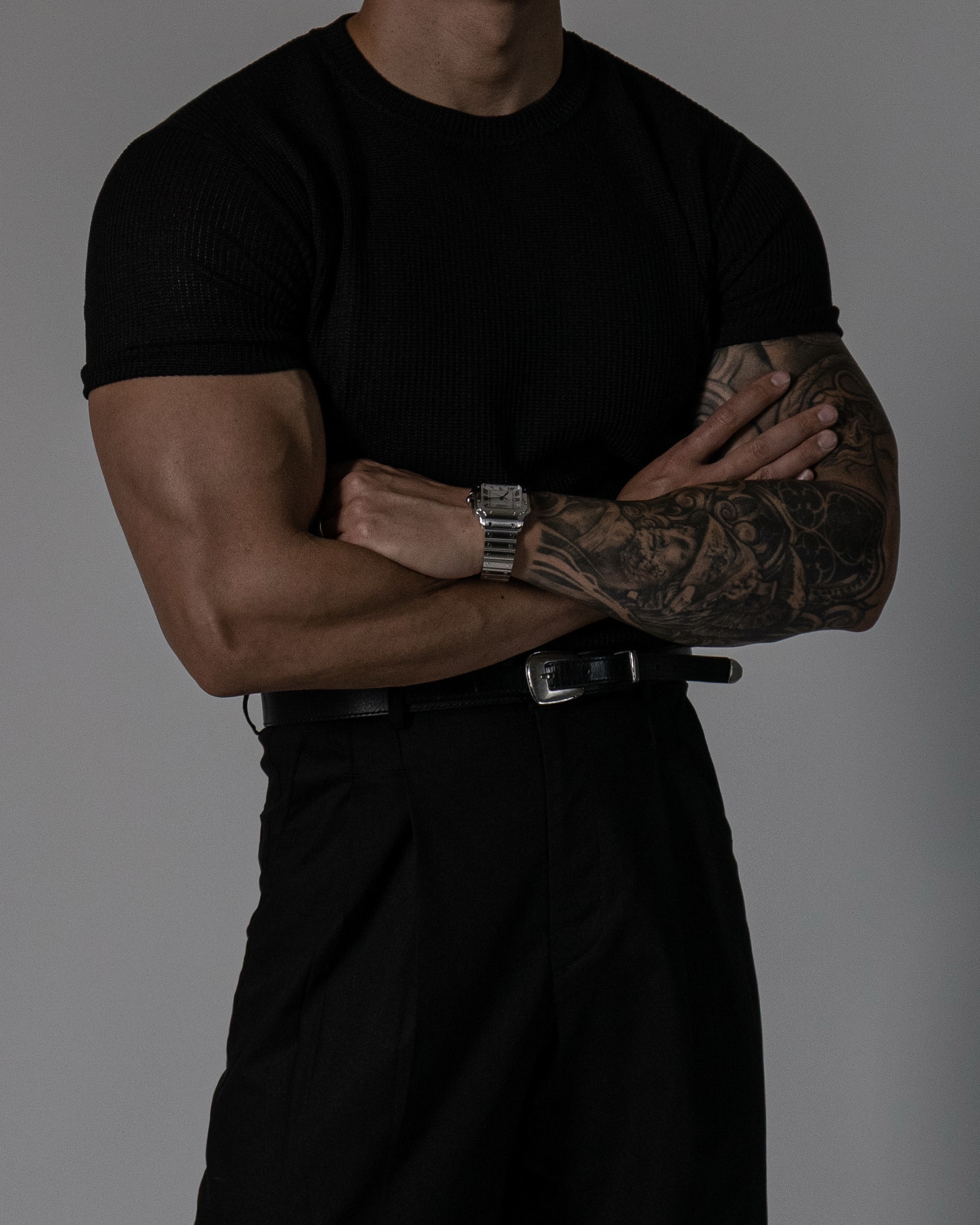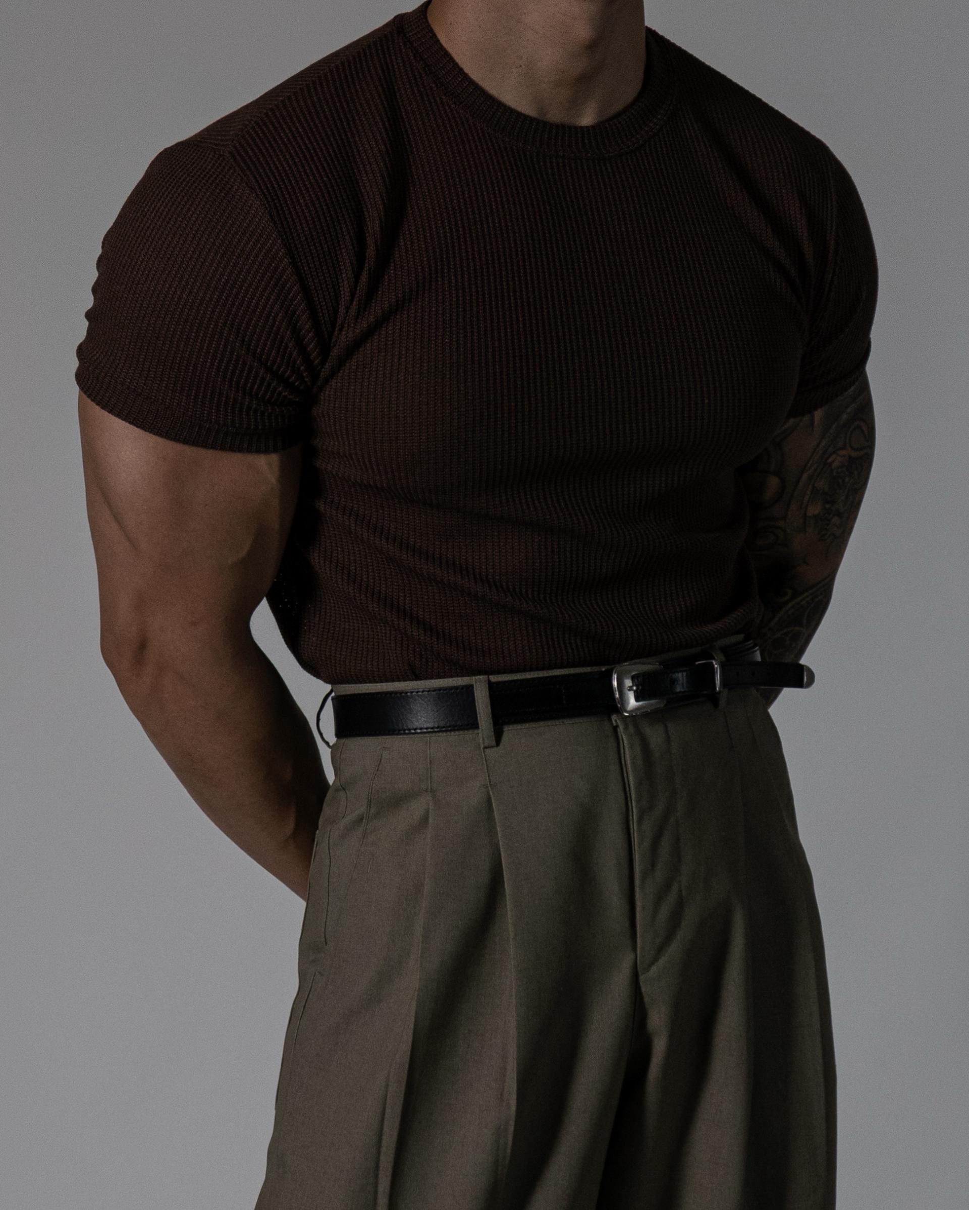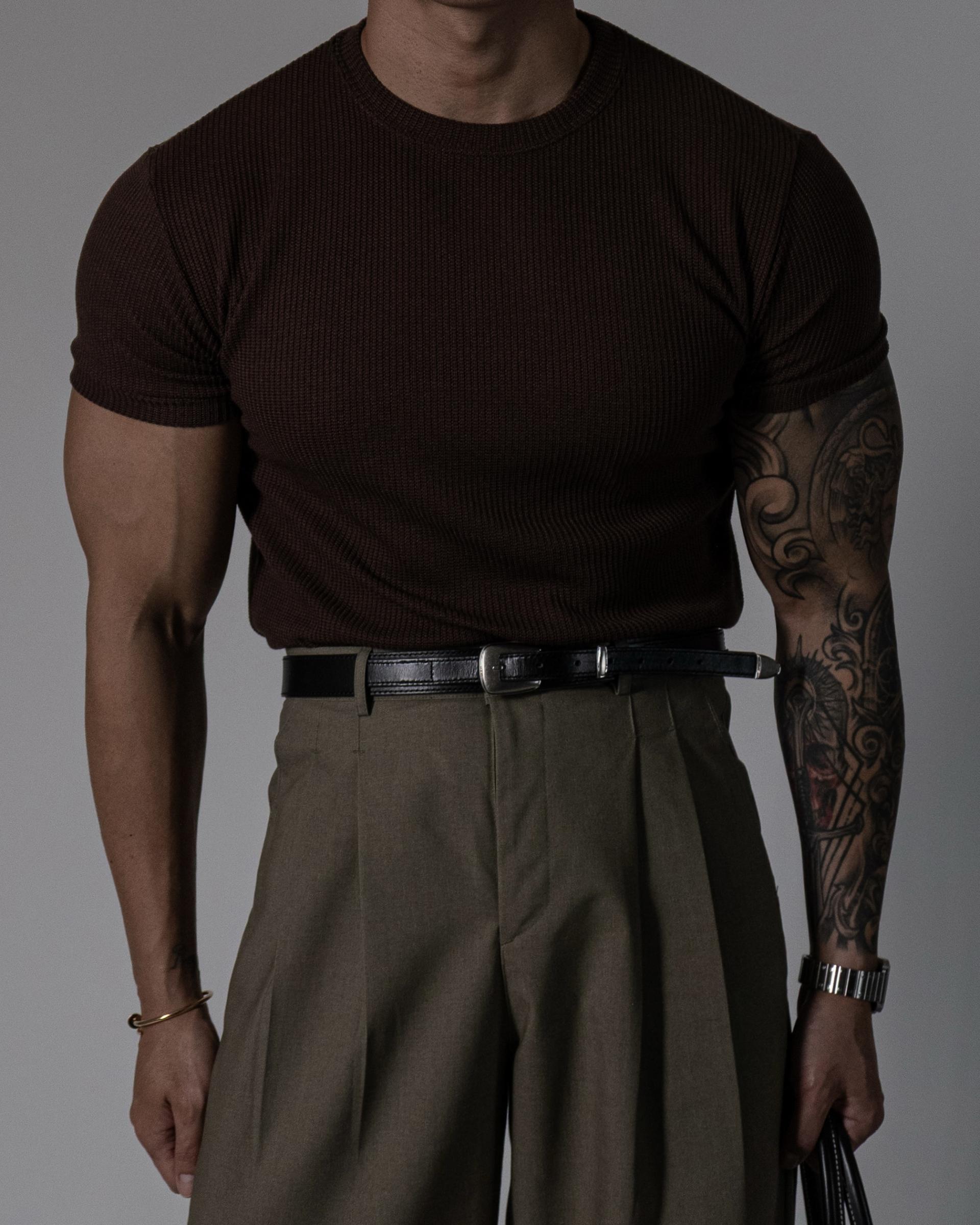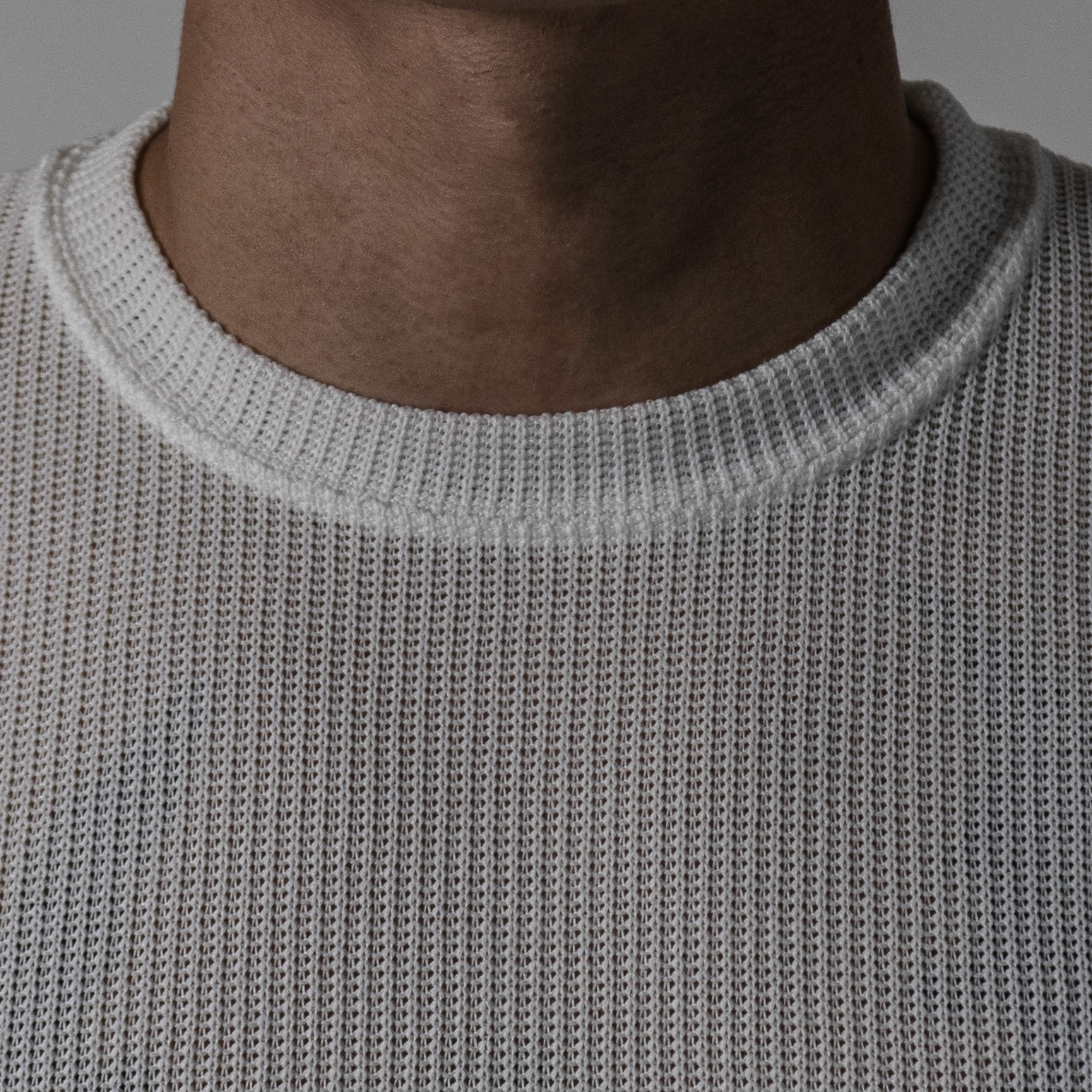 - 탄탄한 하찌 조직으로 고급스러운 텍스처의 머슬핏 니트