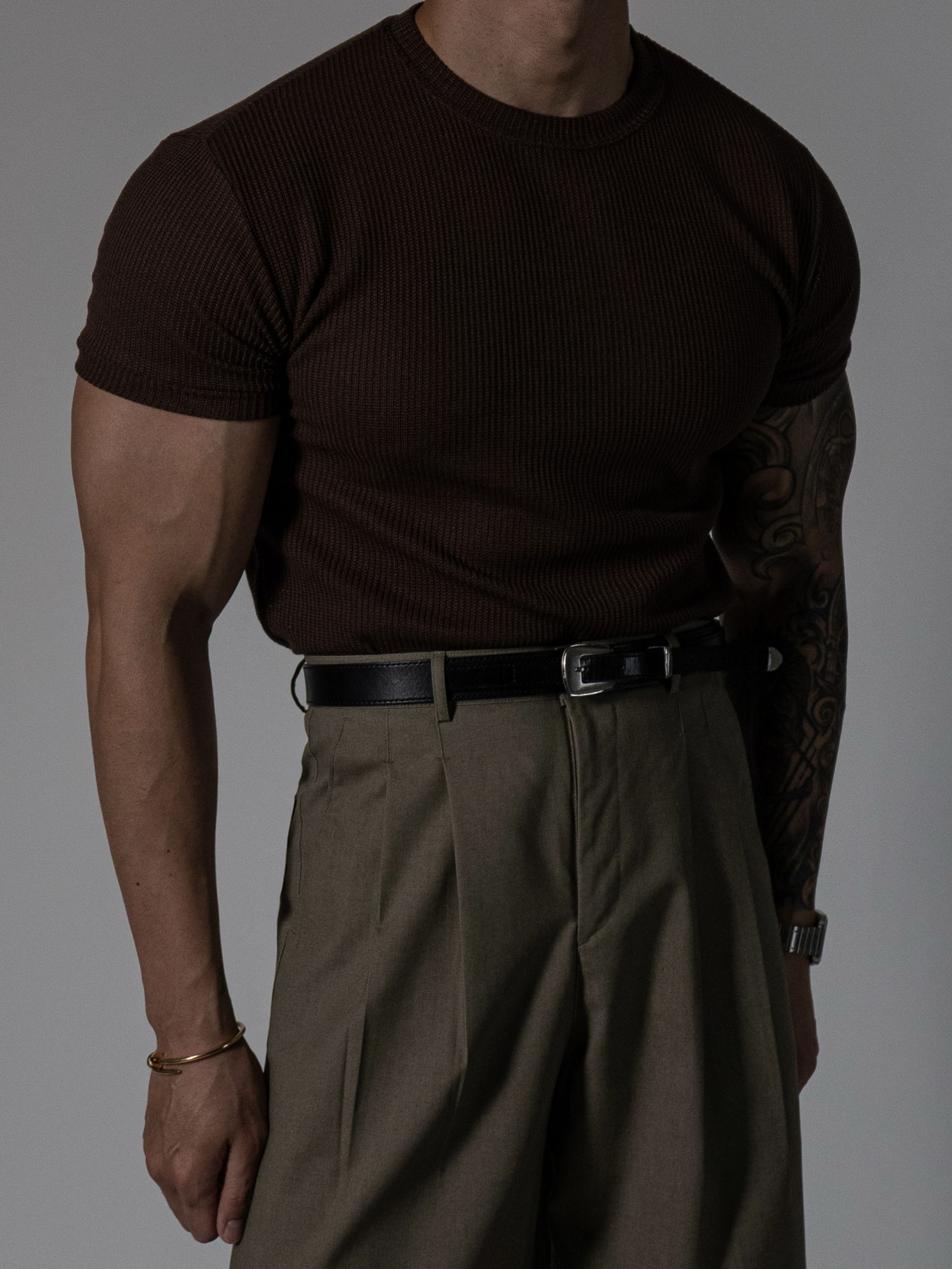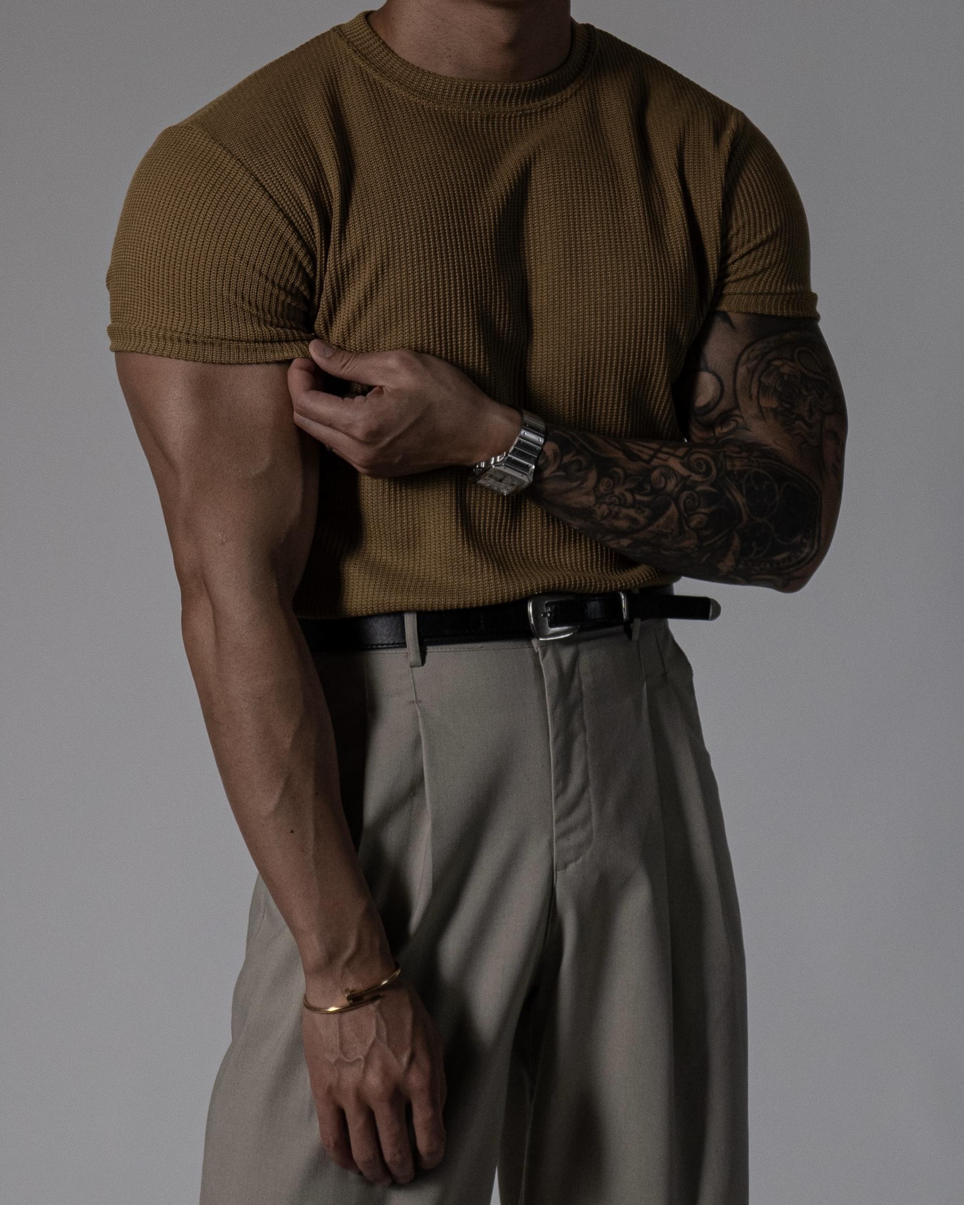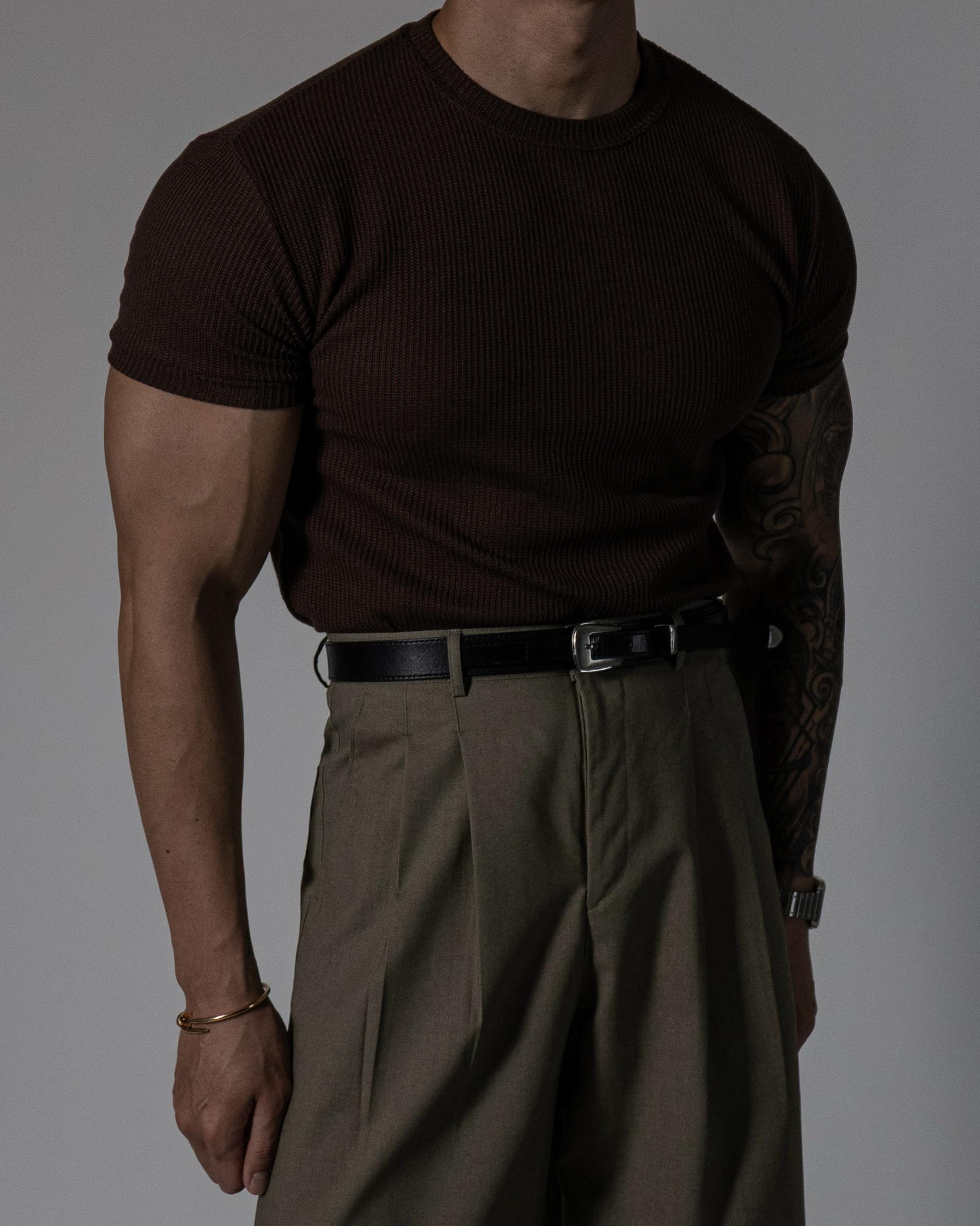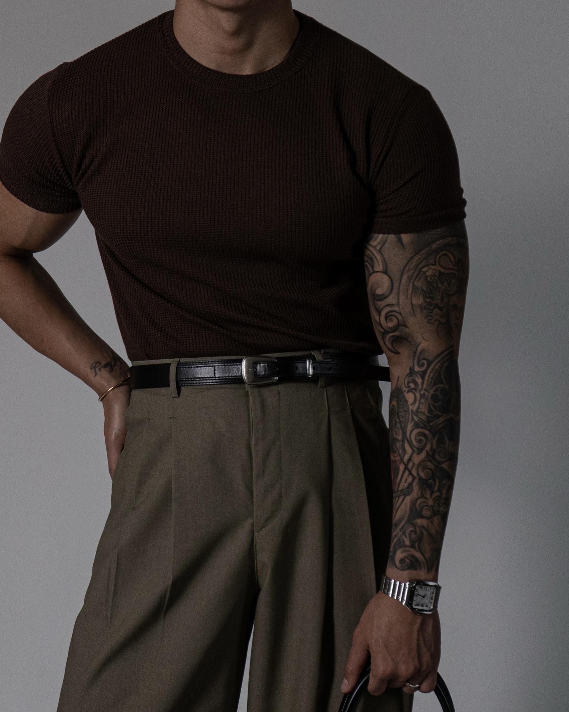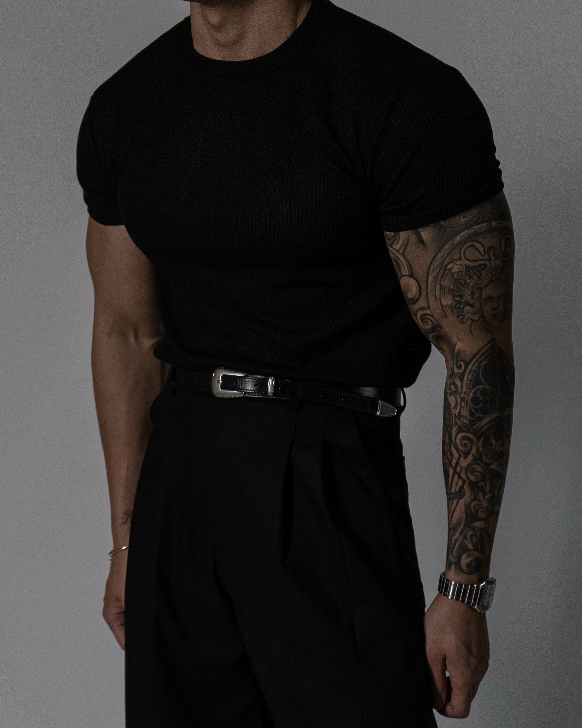- 탄탄한 하찌 조직으로 고급스러운 텍스처의 머슬핏 니트