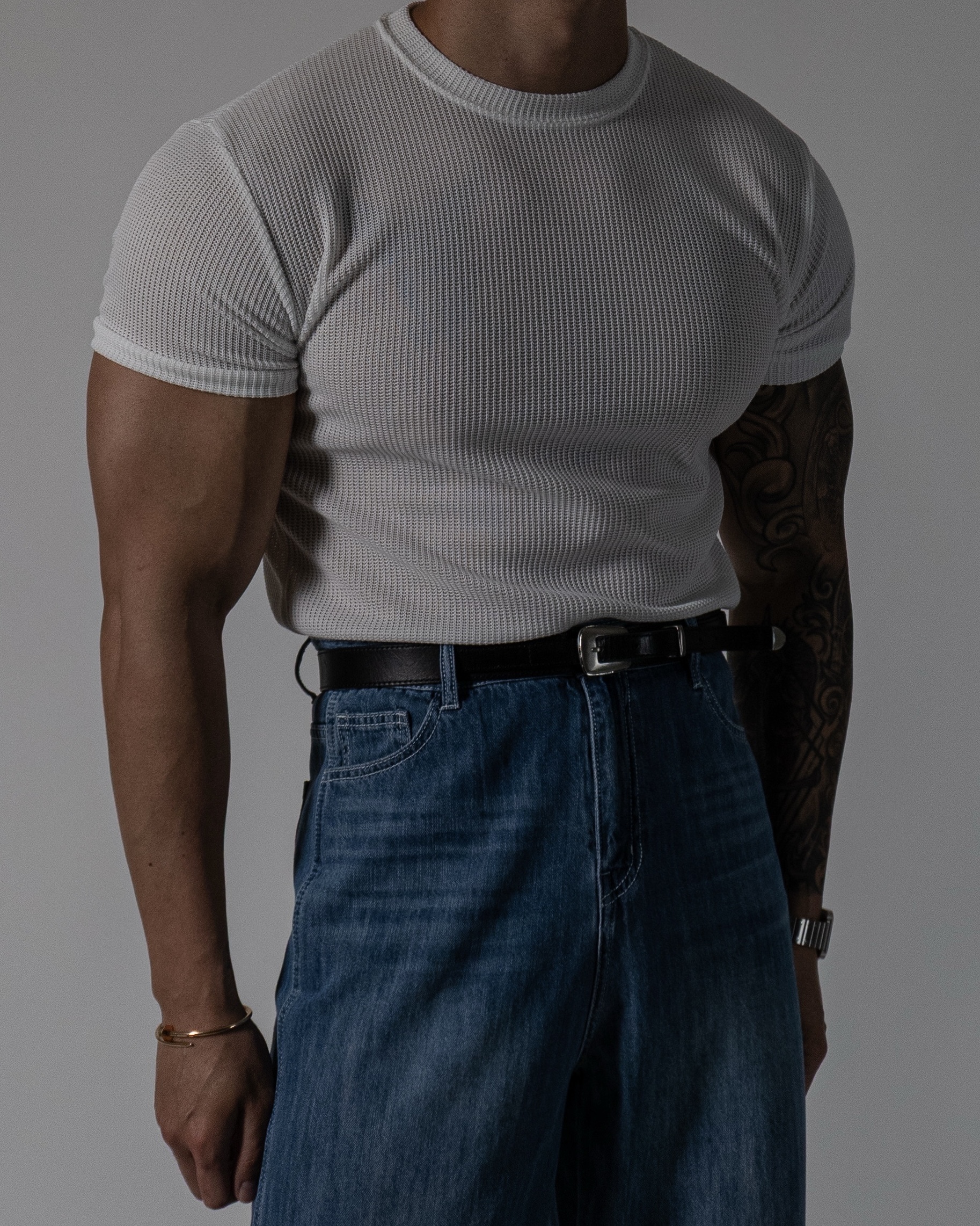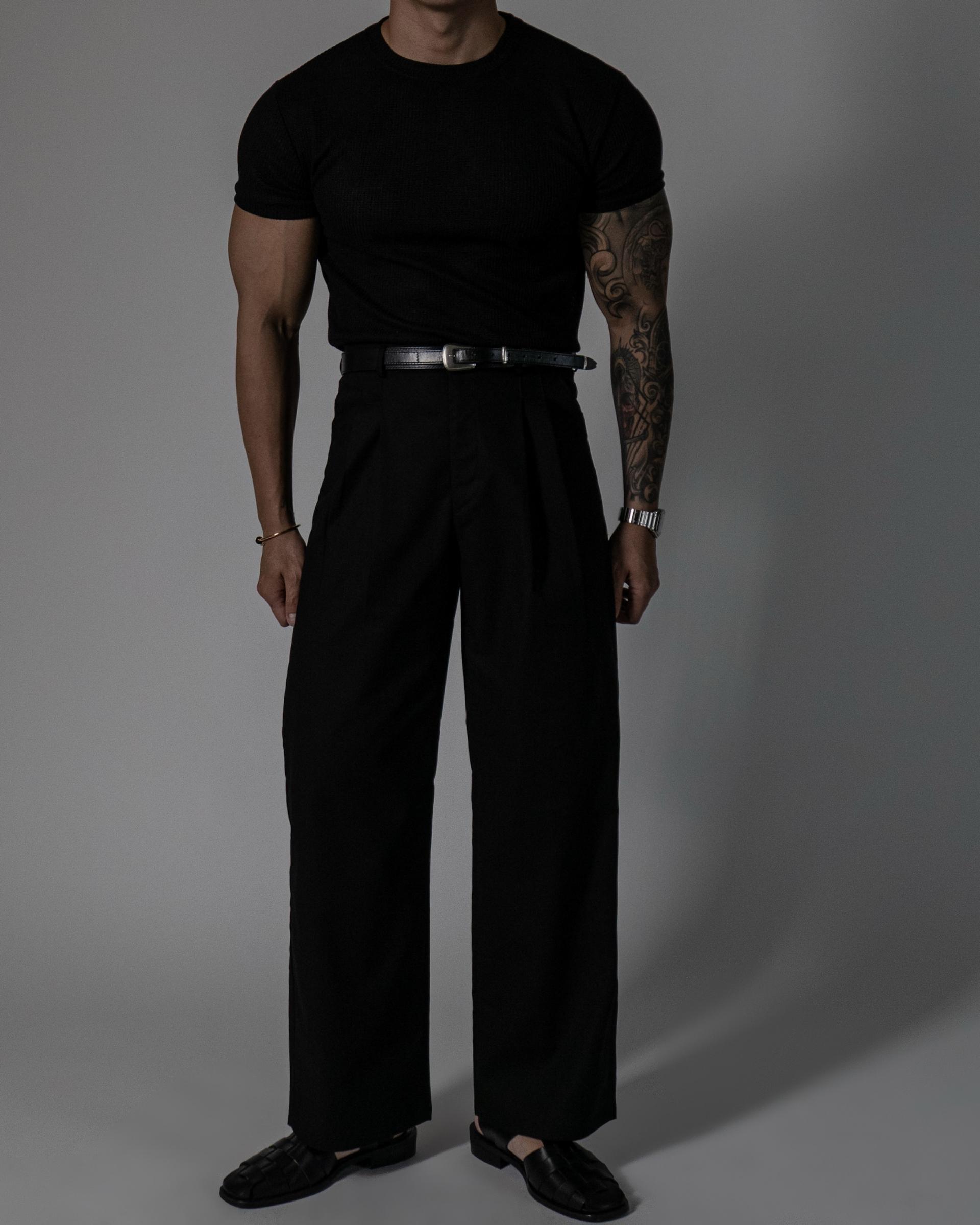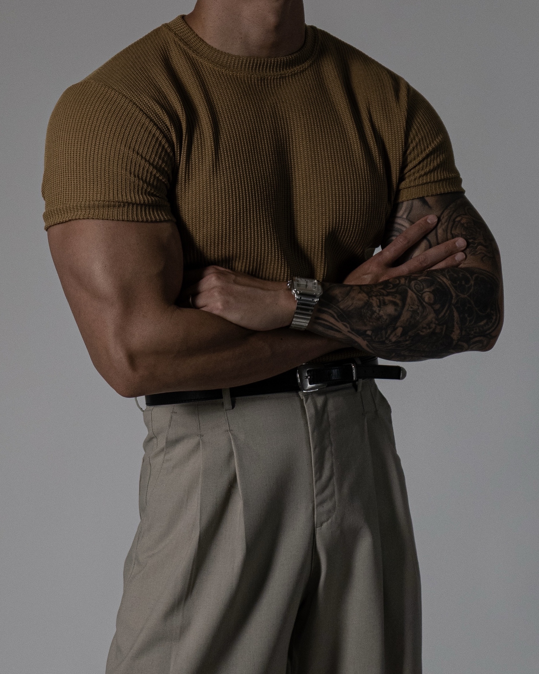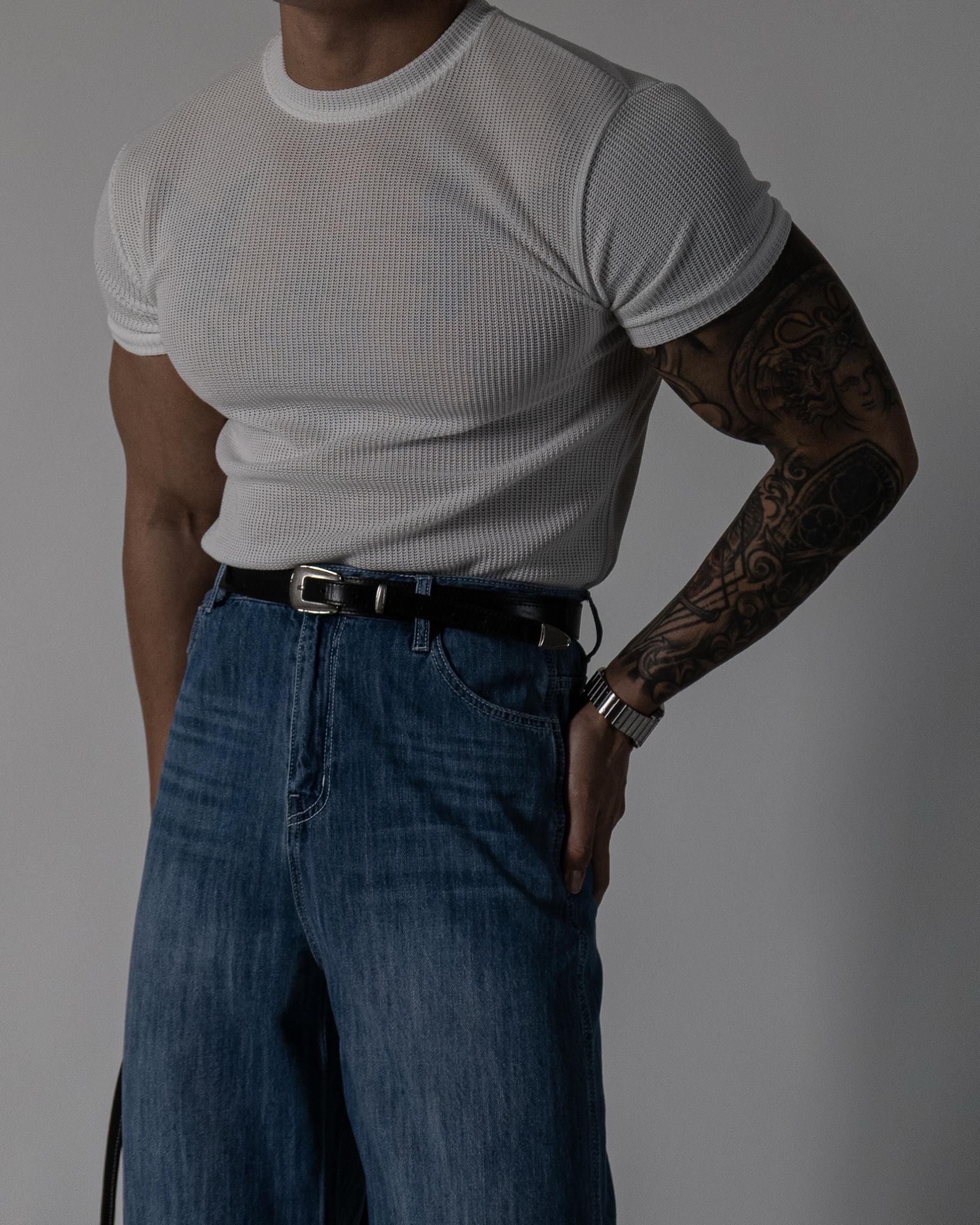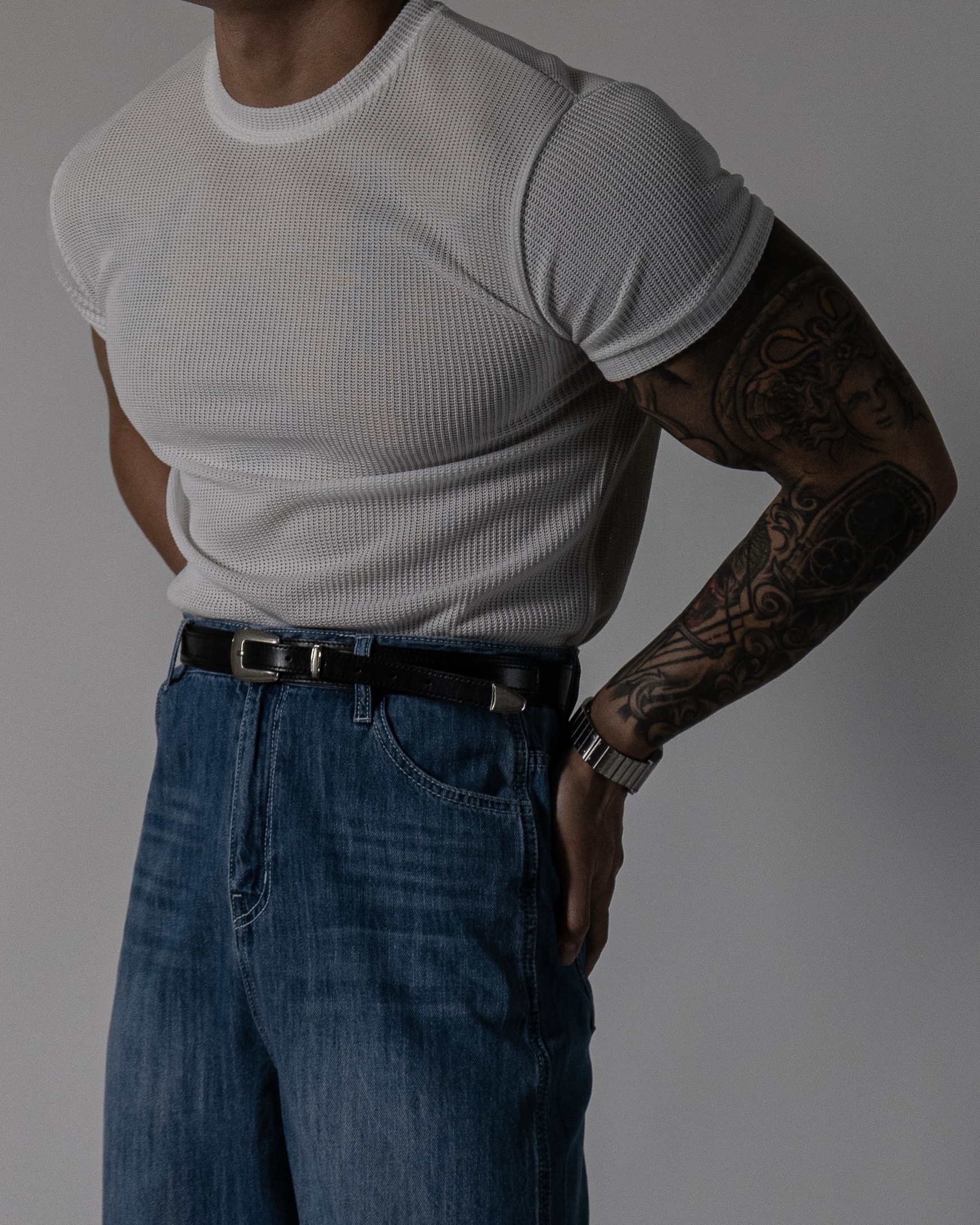 - 탄탄한 하찌 조직으로 고급스러운 텍스처의 머슬핏 니트