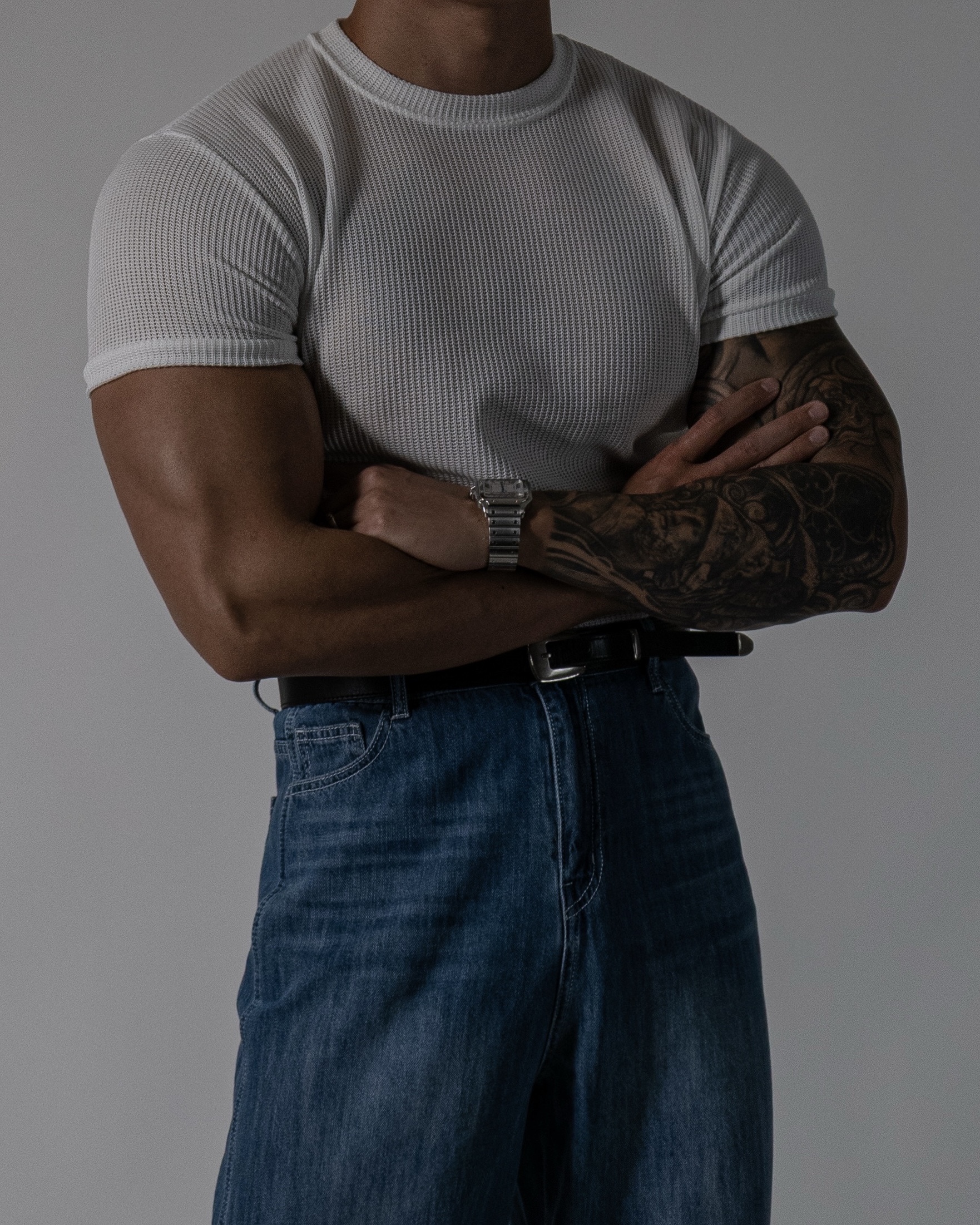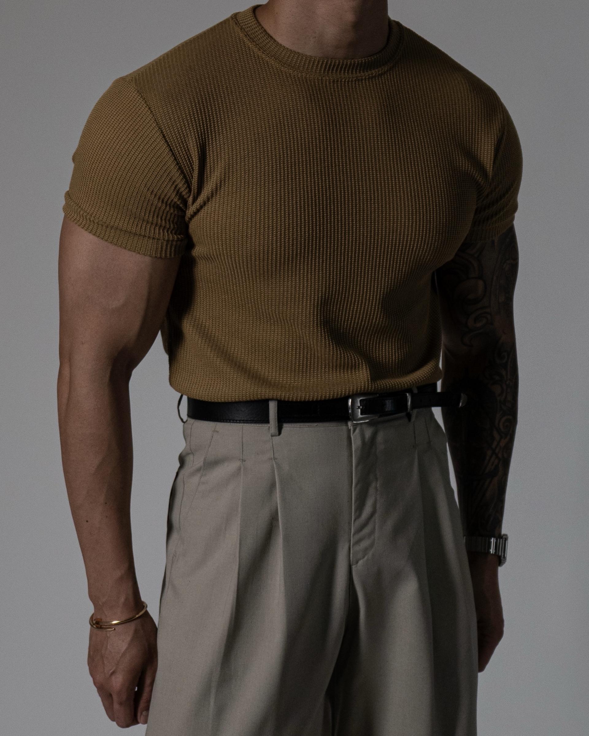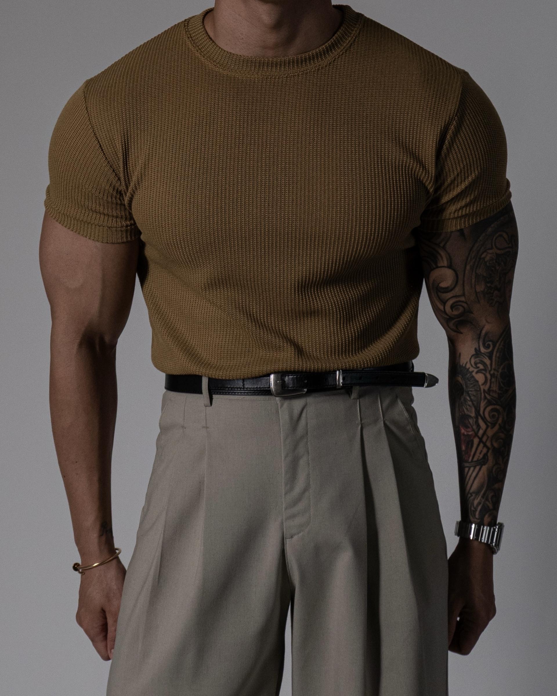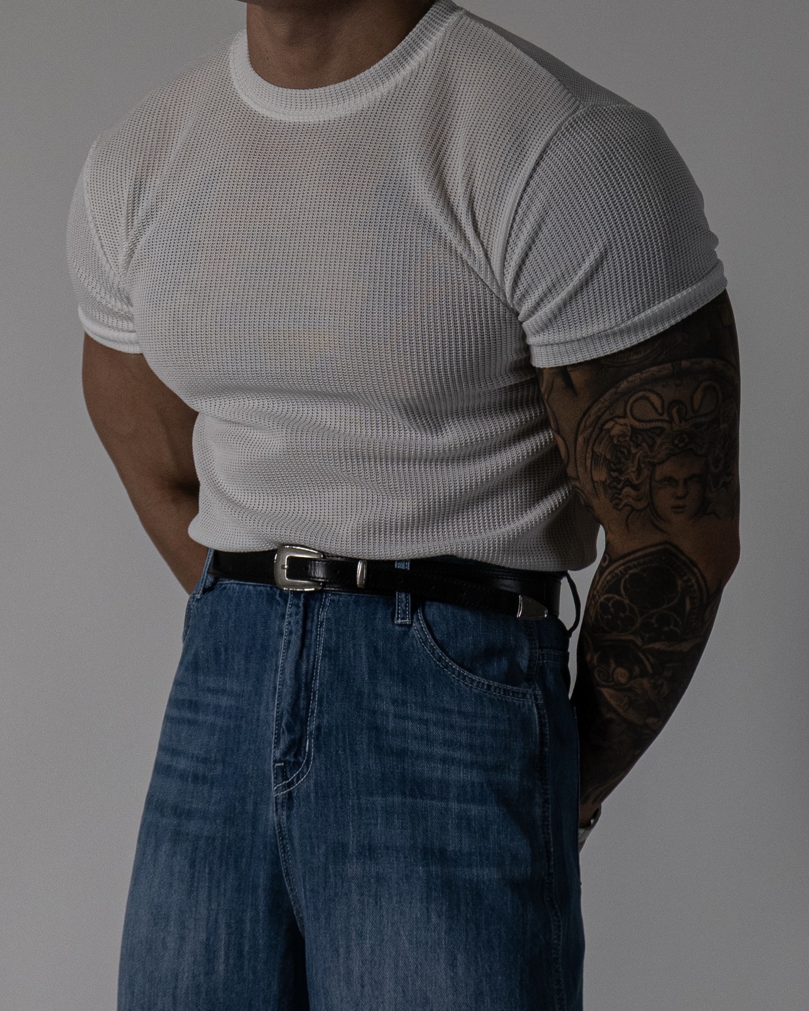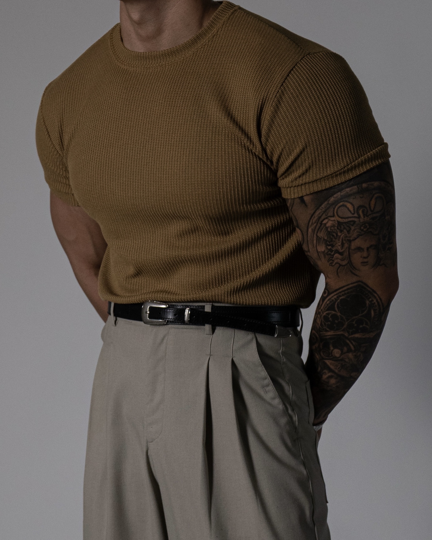 - 탄탄한 하찌 조직으로 고급스러운 텍스처의 머슬핏 니트