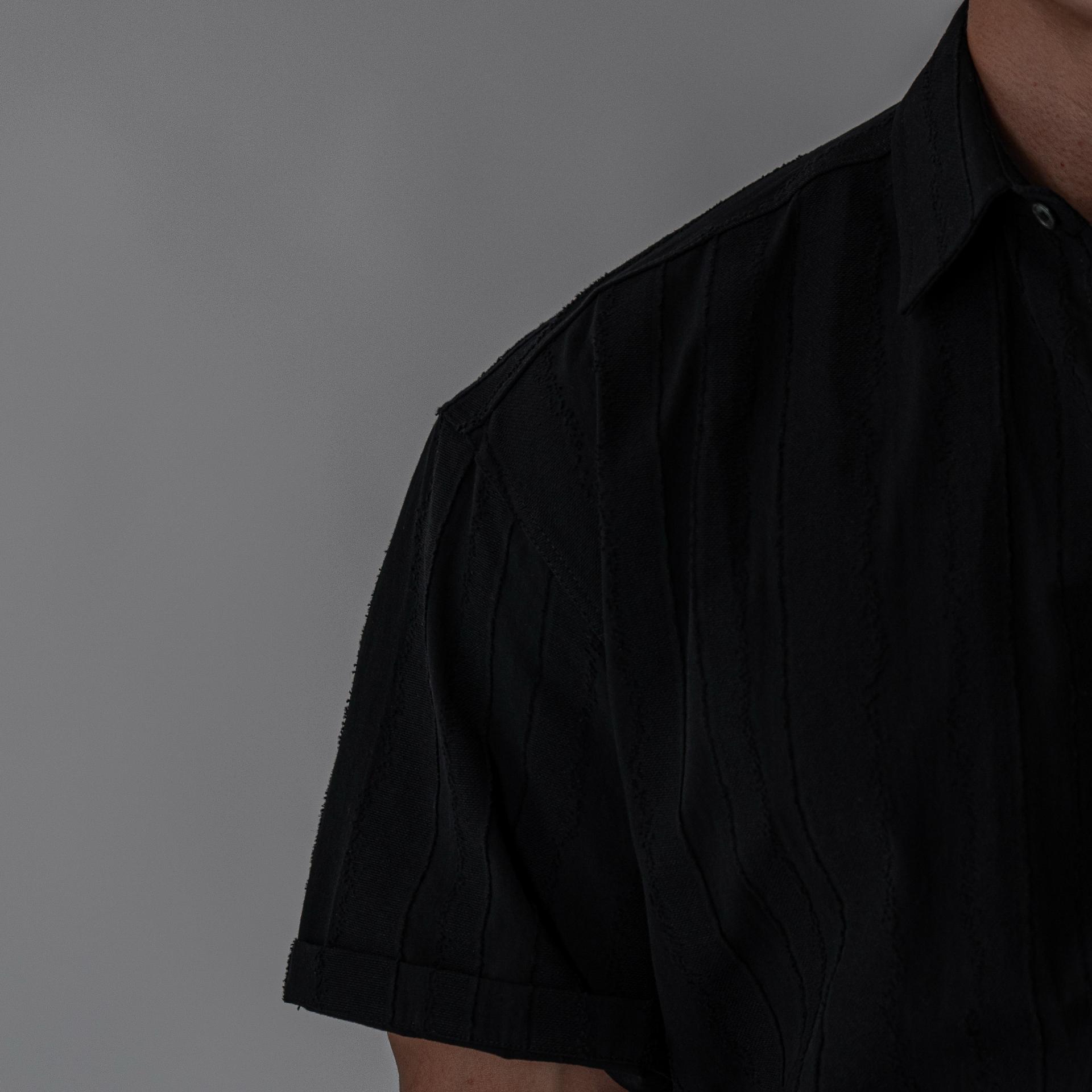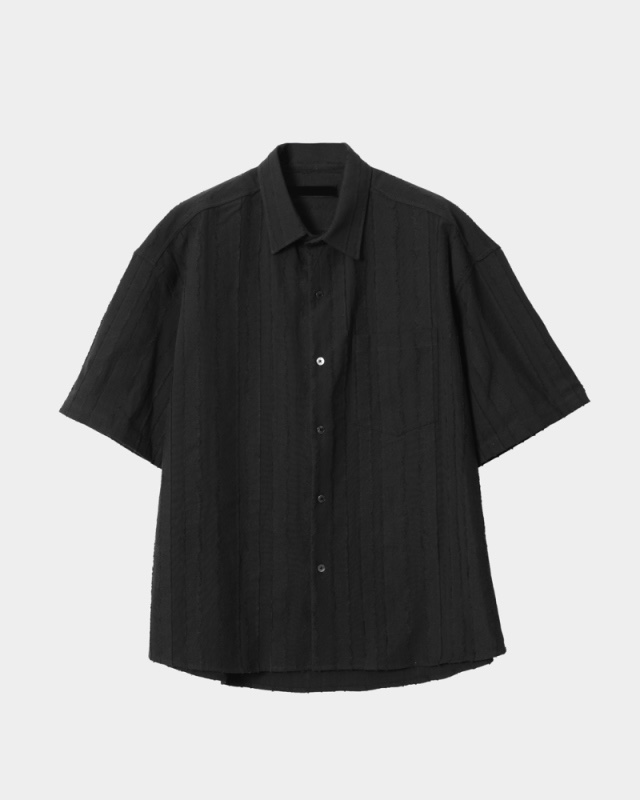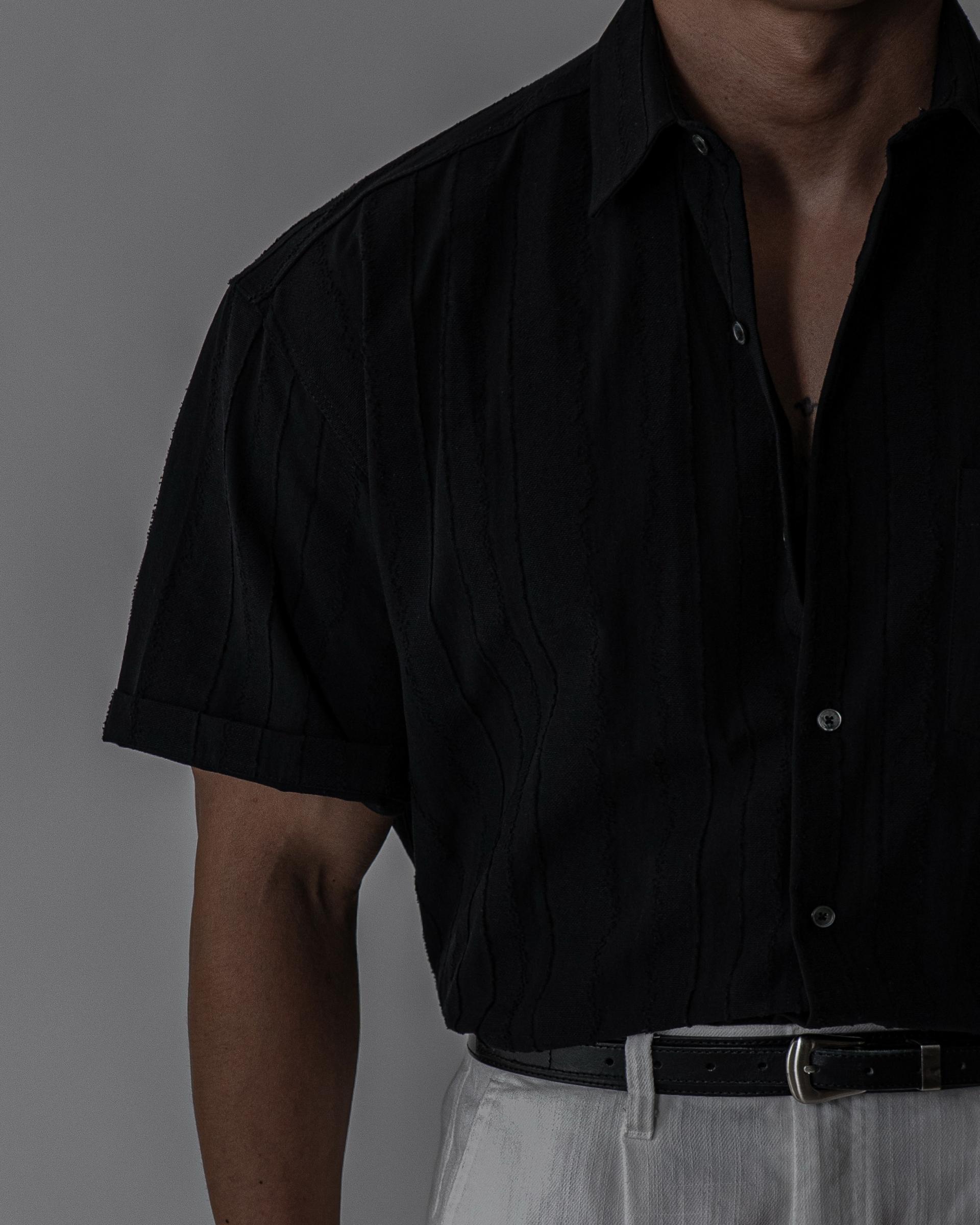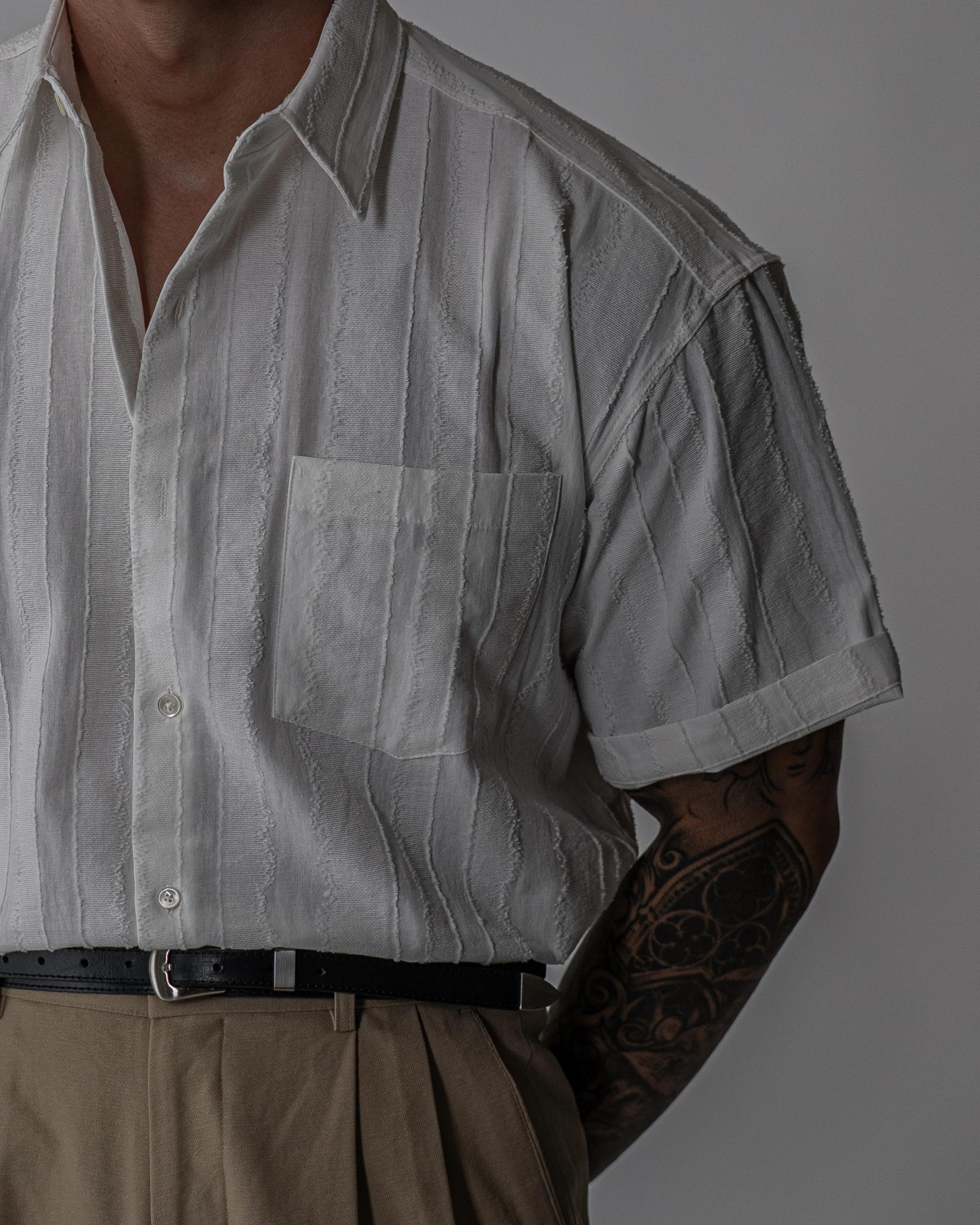 - 불규칙한 텍스처와 스트라이프 패턴이 어우러져 고급스러운 실루엣