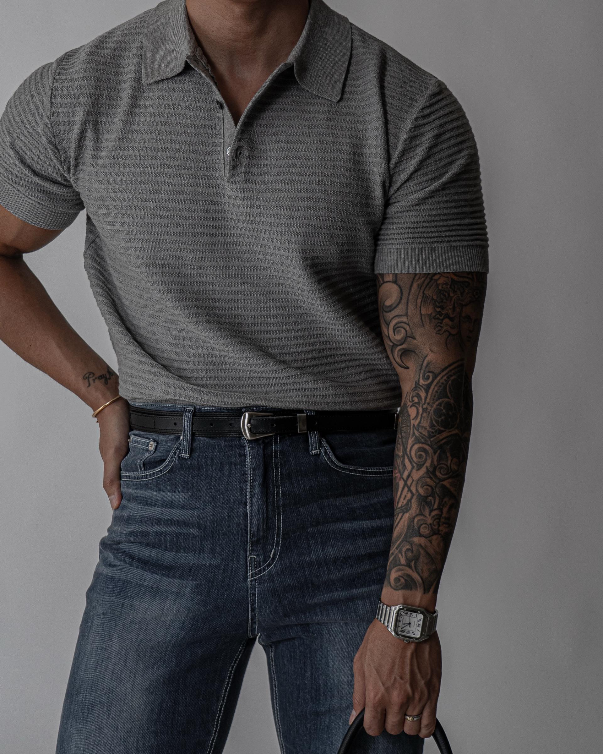 - 상체를 부각시키기 좋은 입체감있는 스트라이프 텍스처