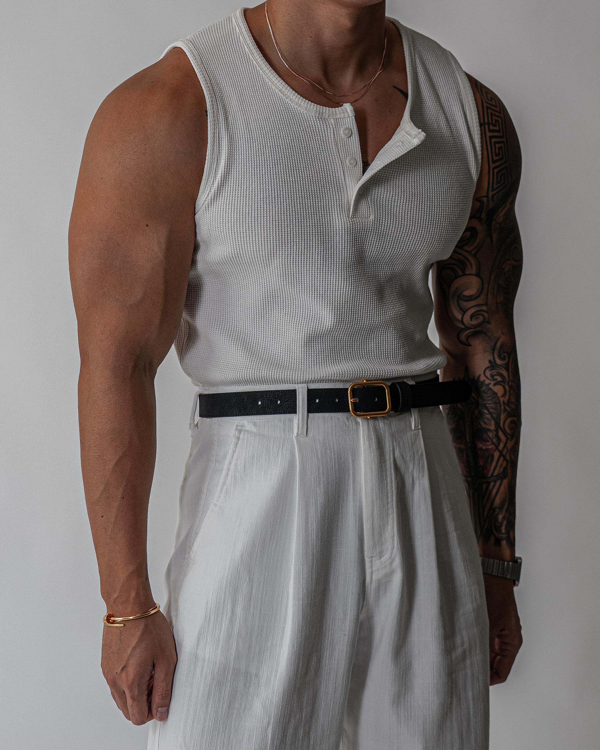 - 슬림한 실루엣과 헨리넥 디자인으로 캐주얼하면서도 세련된 무드