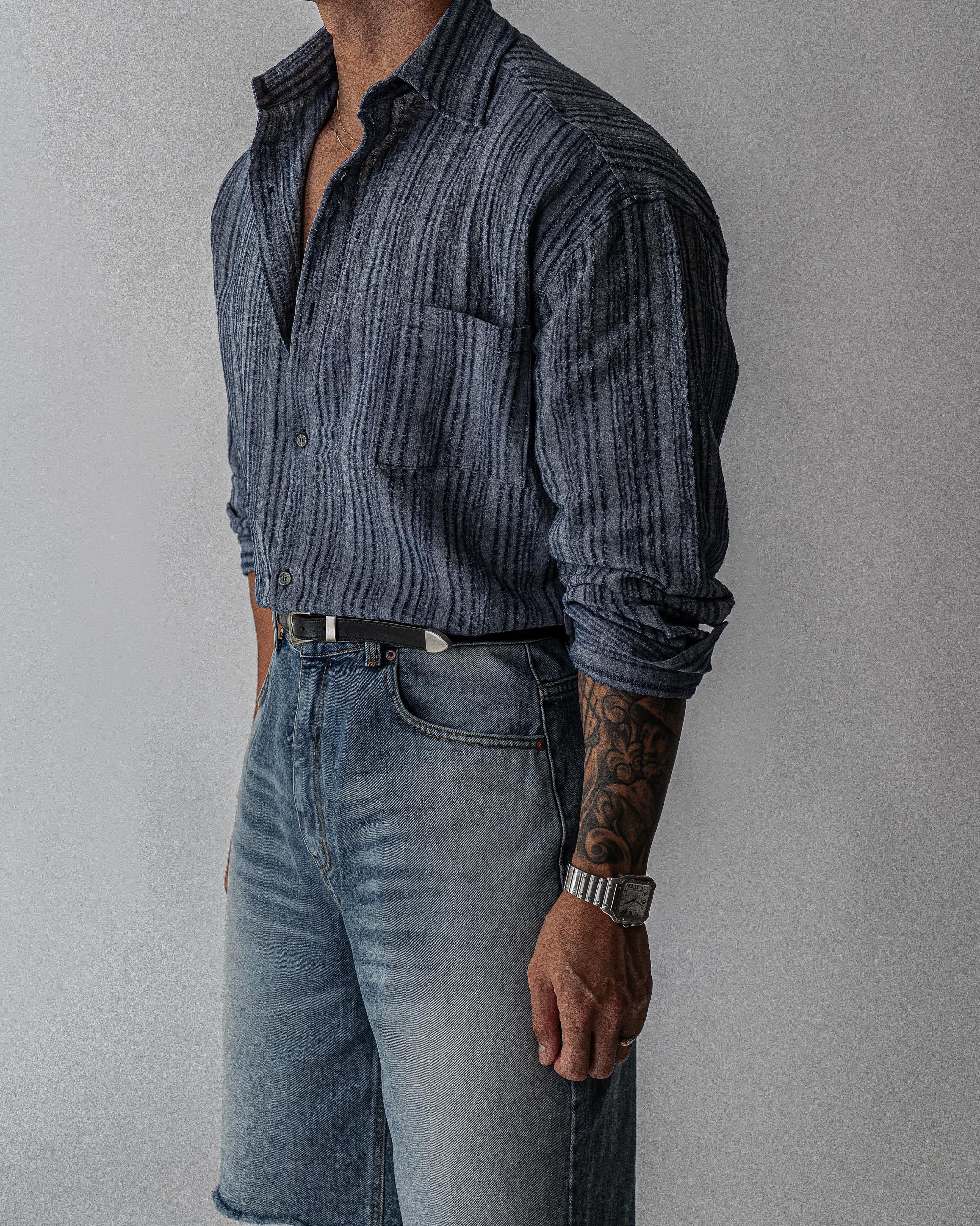 - 린넨과 코튼이 혼방된 원사로 통기성과 조직감을 동시에 갖춘 셔츠
