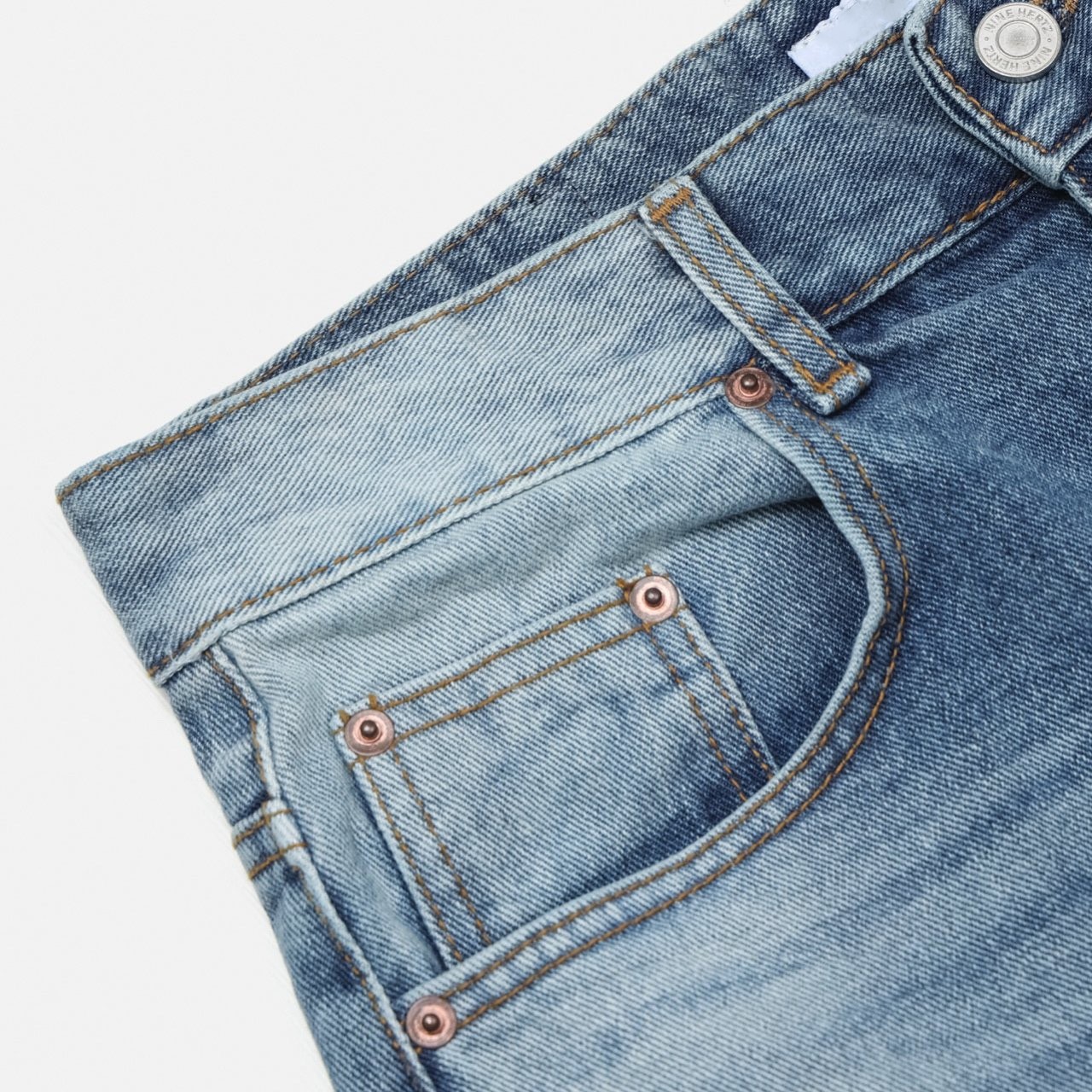 - 다리 비율이 좋아 보이도록 무릎 위로 떨어지는 세미 와이드 핏