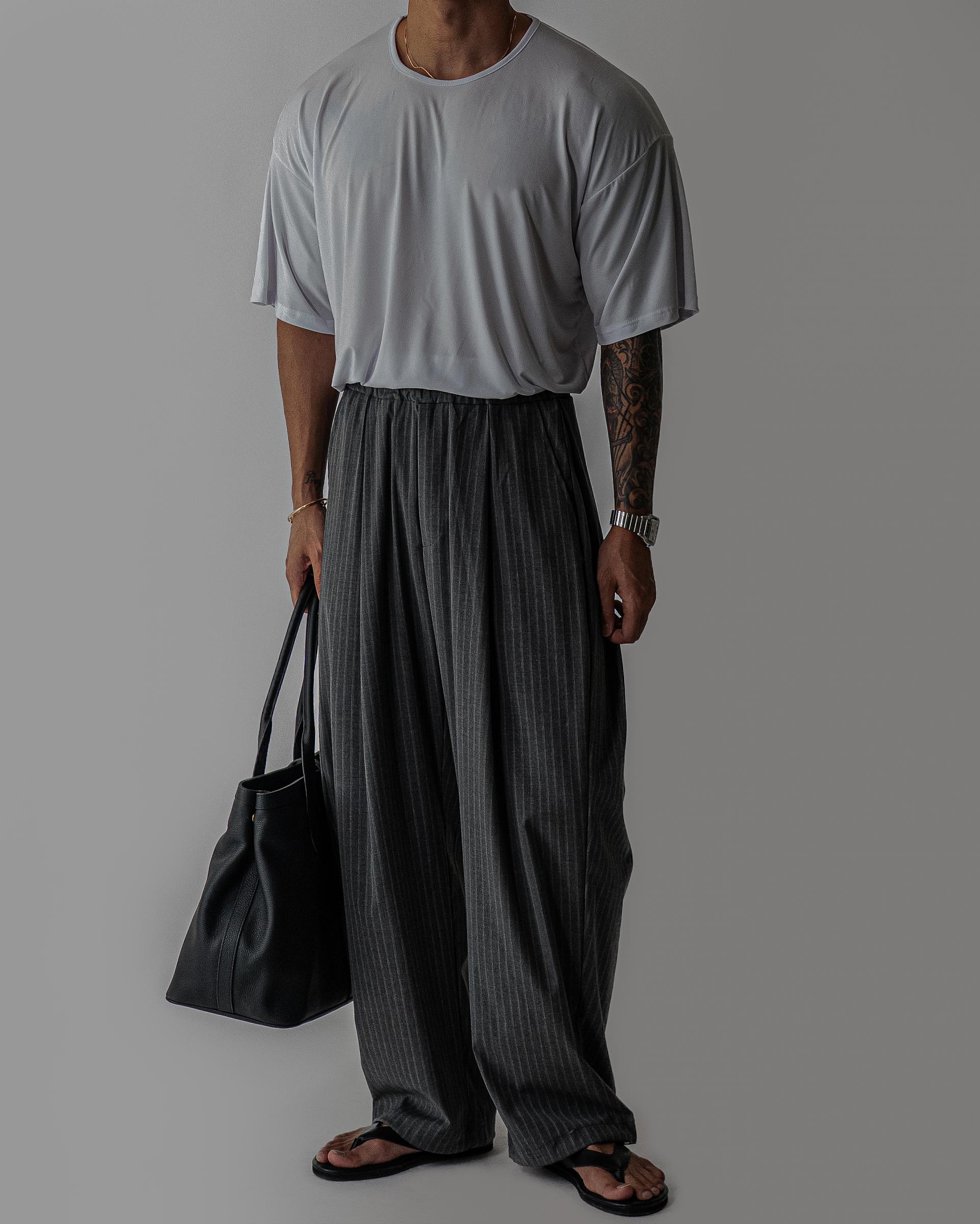 - 여름 슬랙스 스트라이프 원단의 밴딩 팬츠