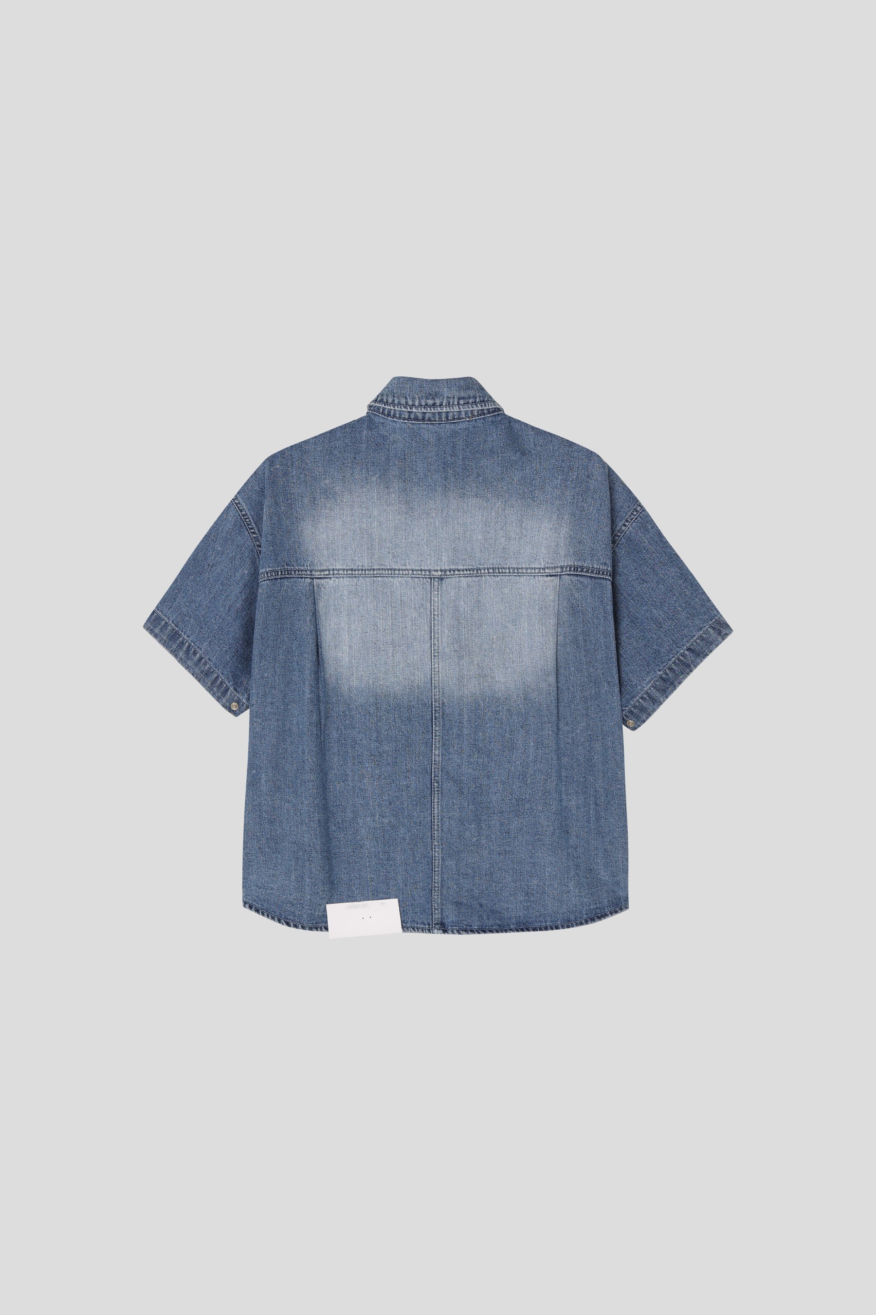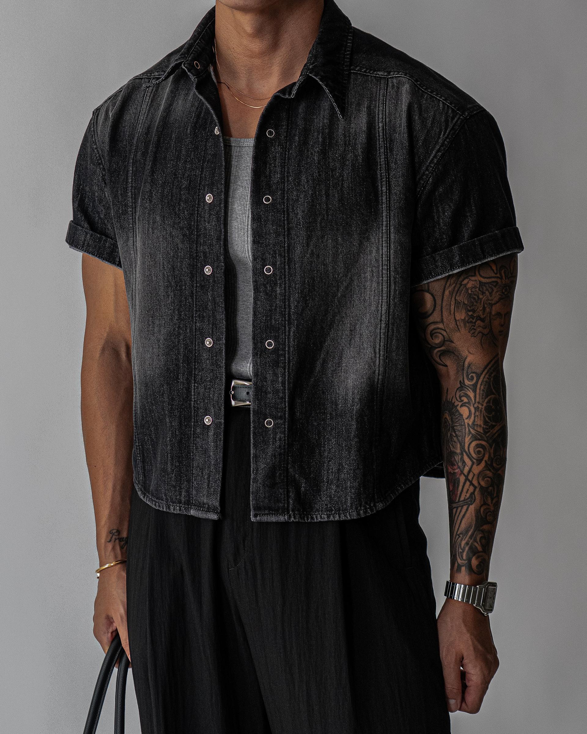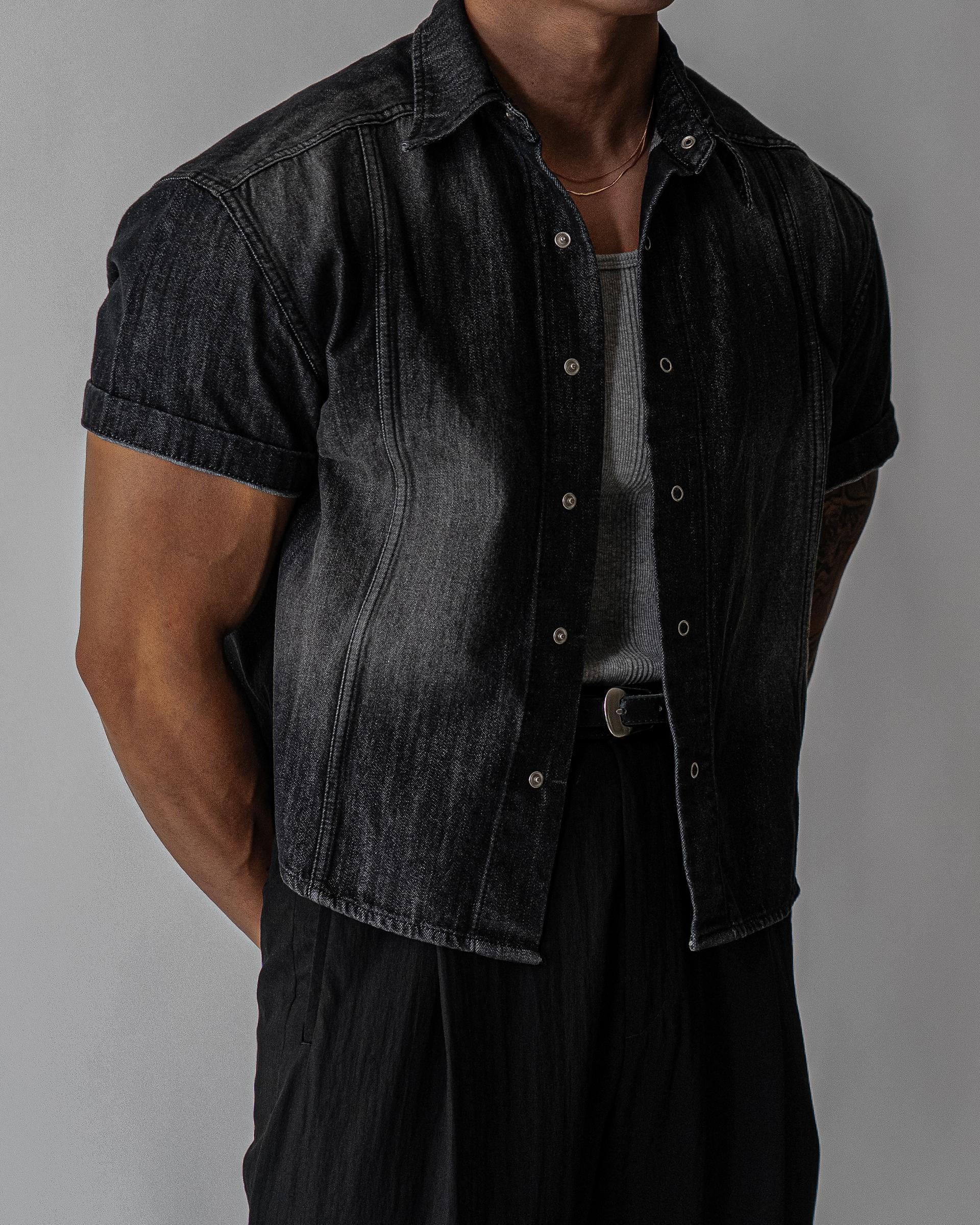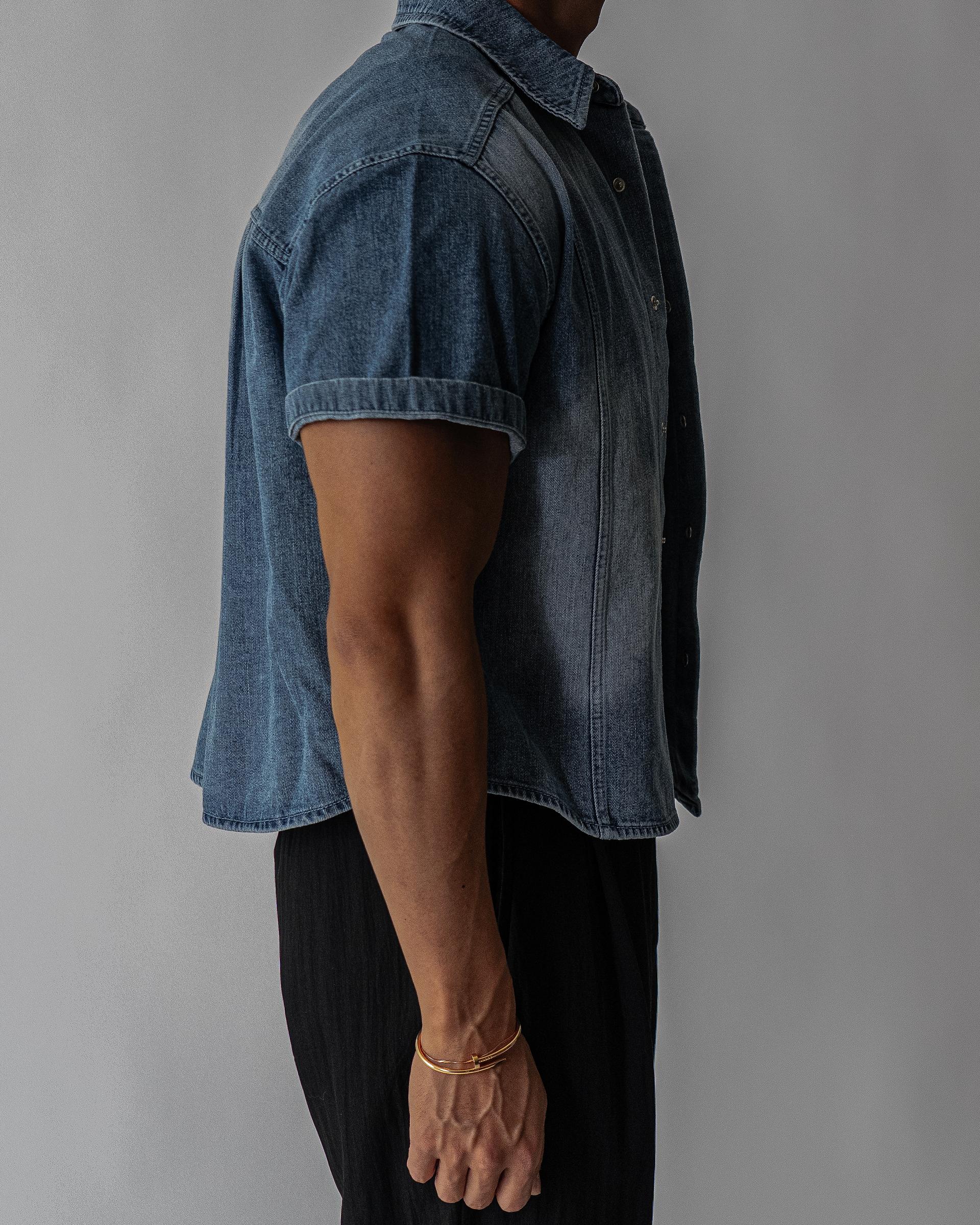 레터 머슬핏 크롭 데님 셔츠 (2color)
