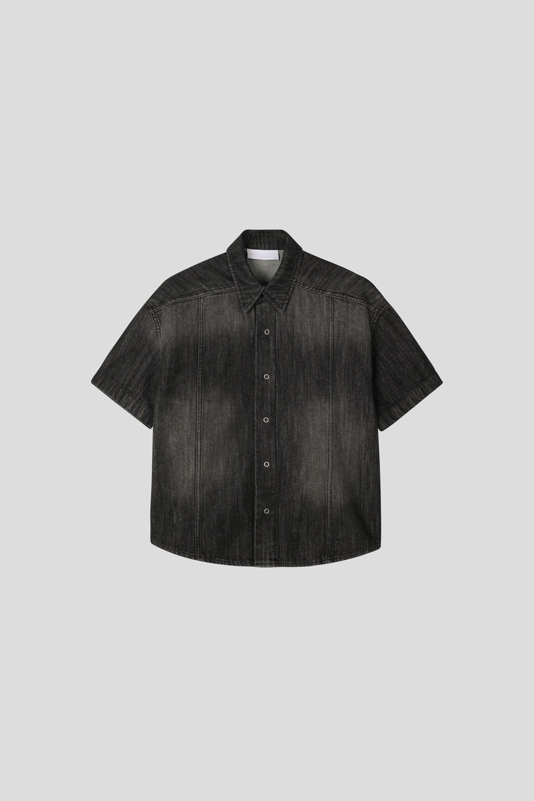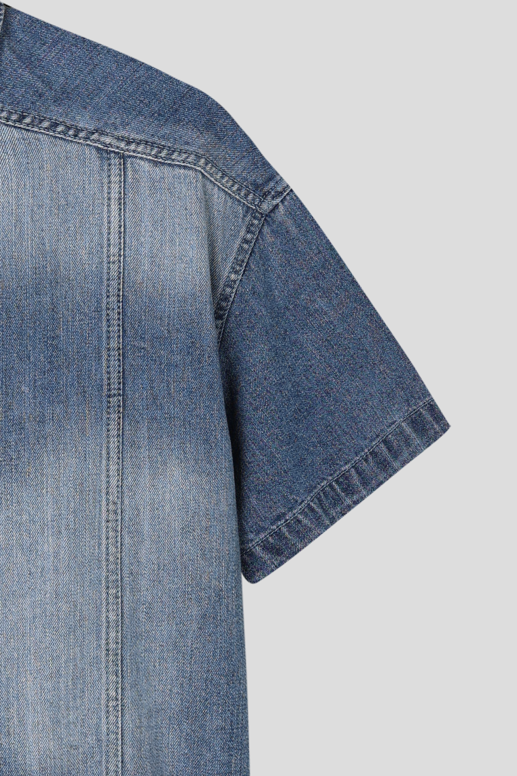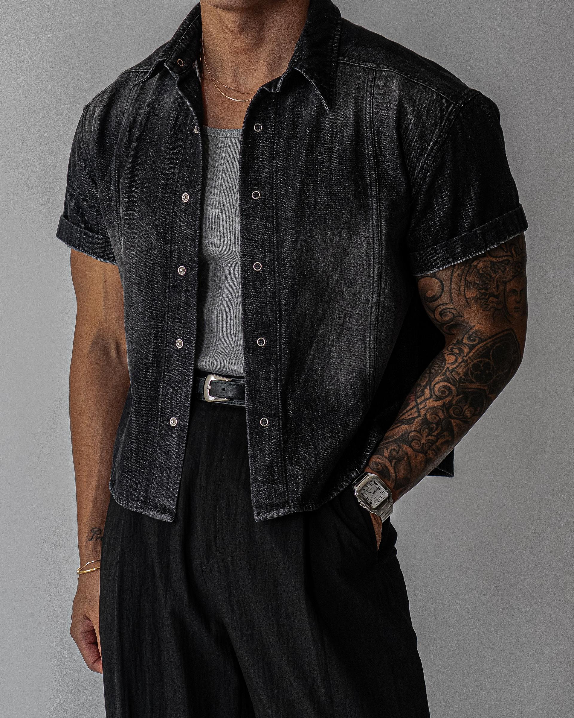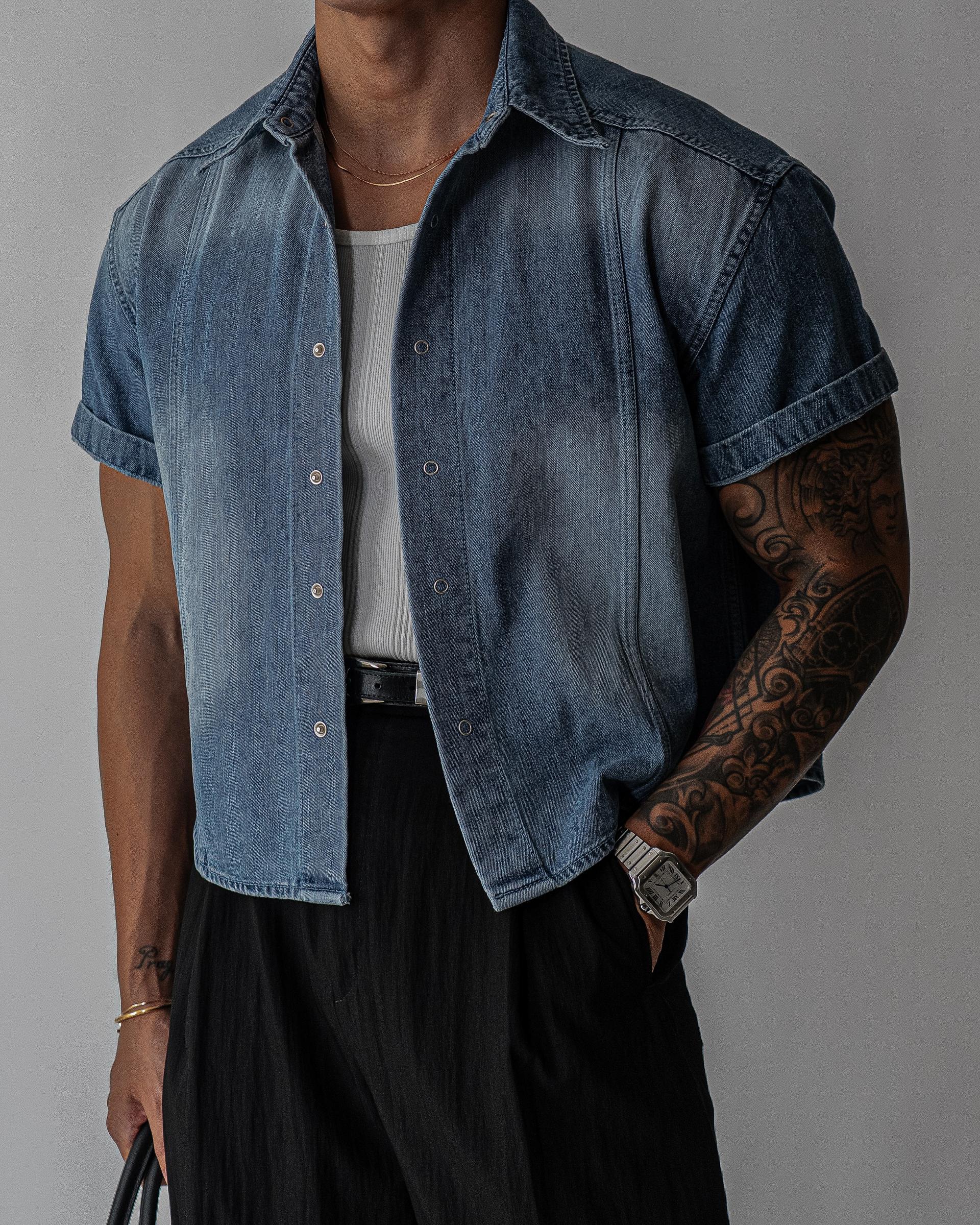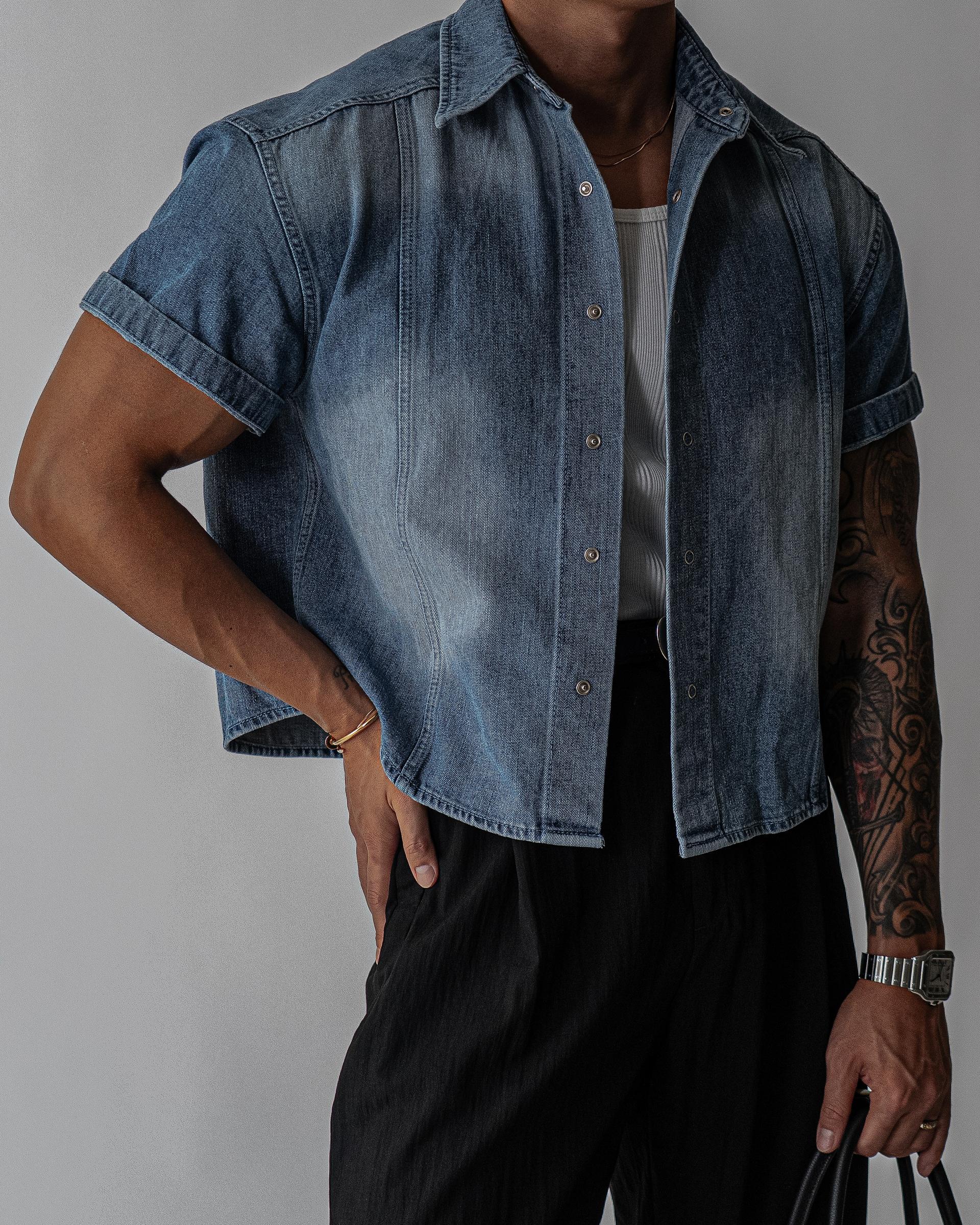 레터 머슬핏 크롭 데님 셔츠 (2color)