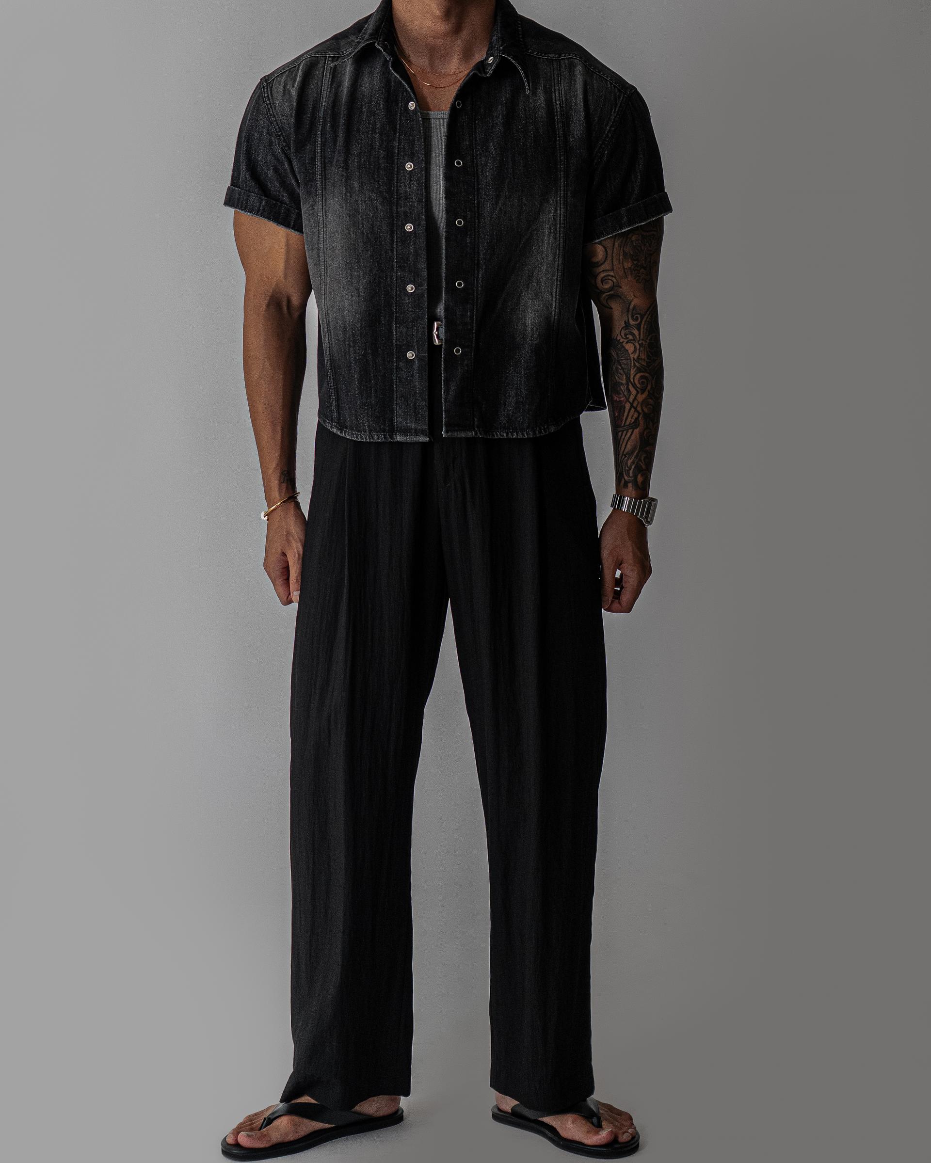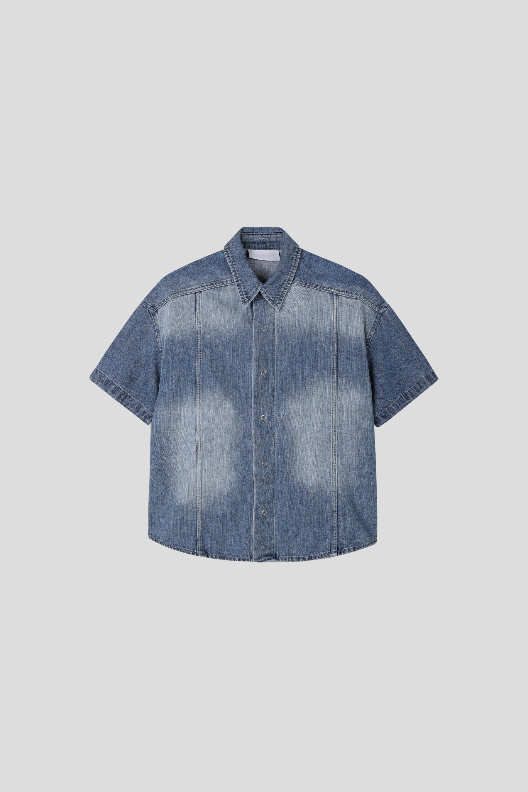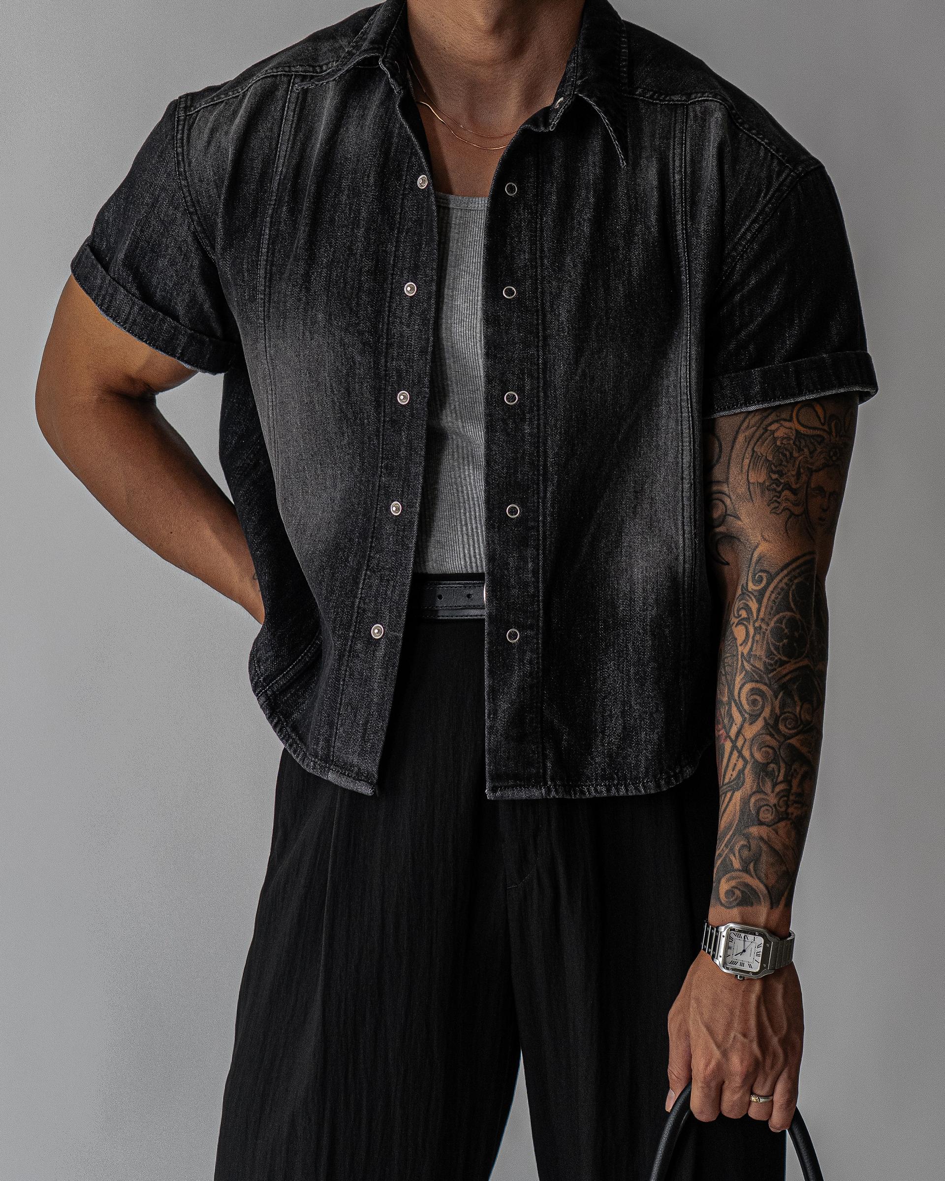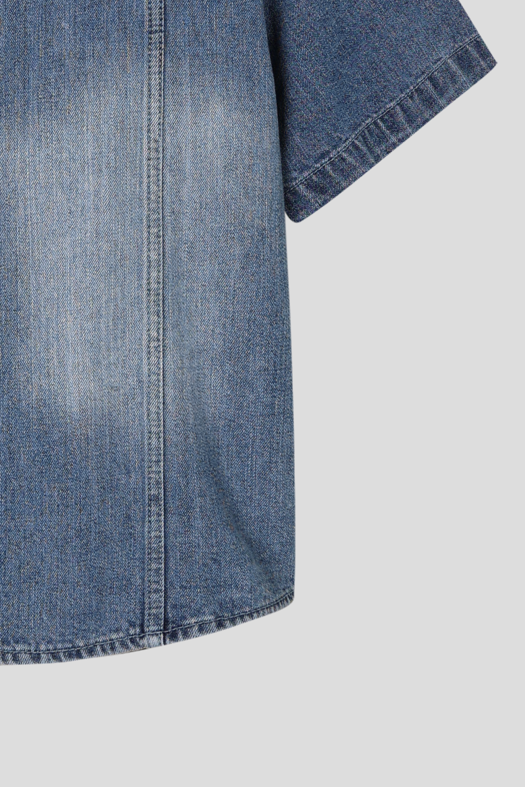 레터 머슬핏 크롭 데님 셔츠 (2color)