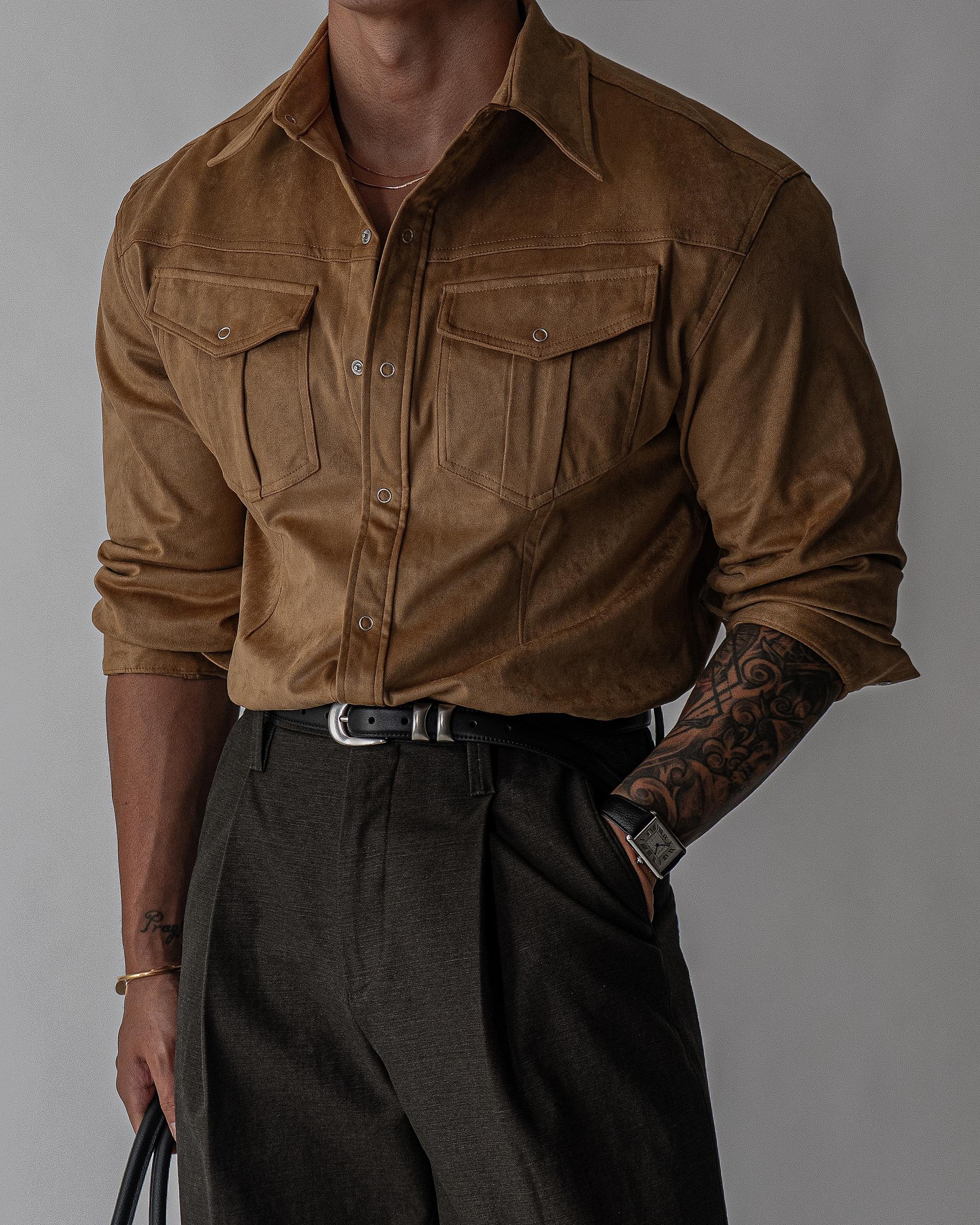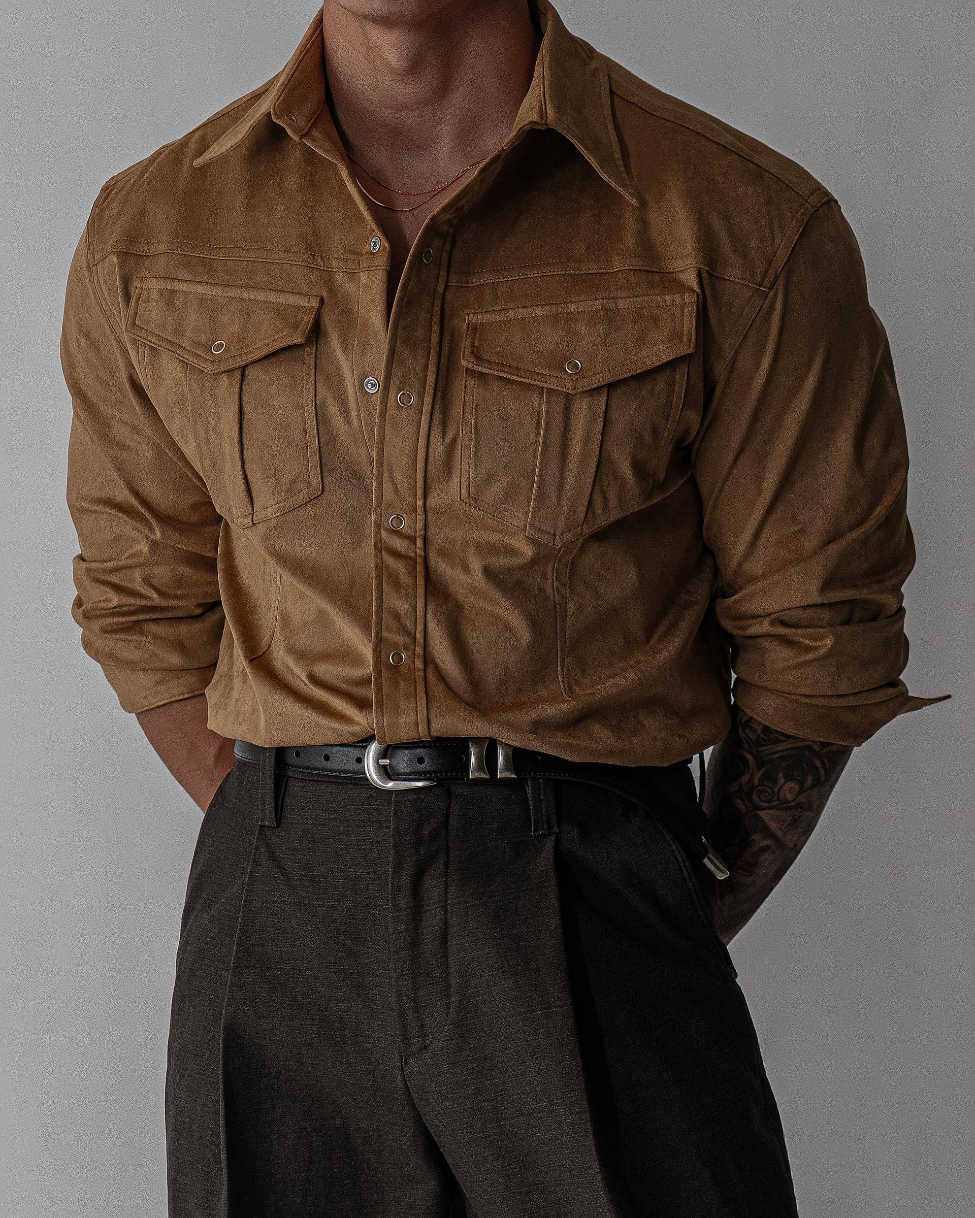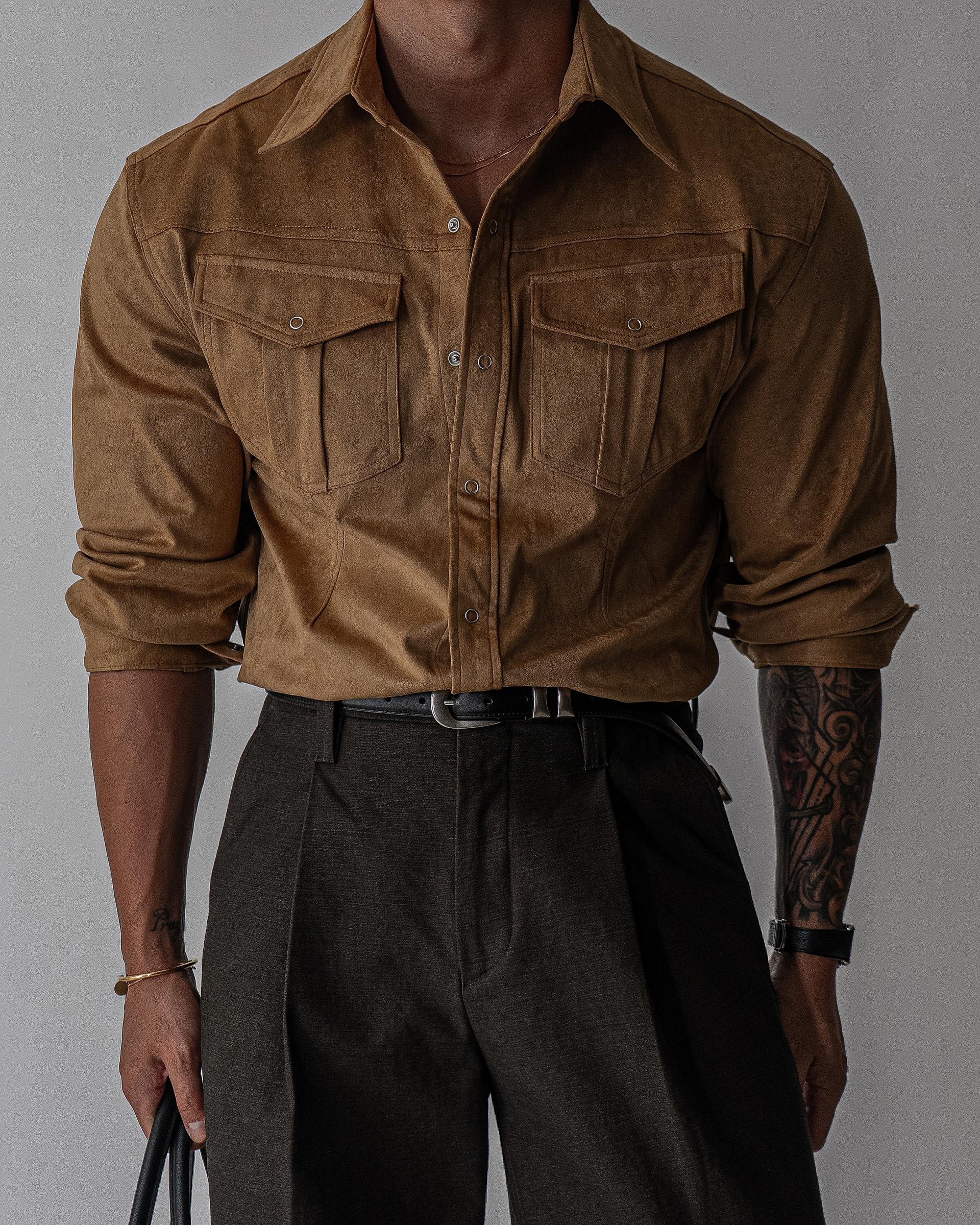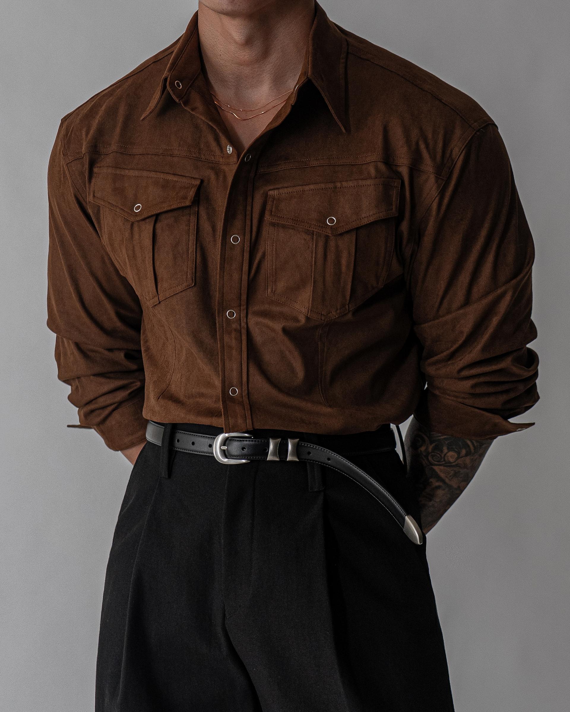 - 묵직한 착용감과 고급스러운 텍스쳐의 스웨이드 셔츠