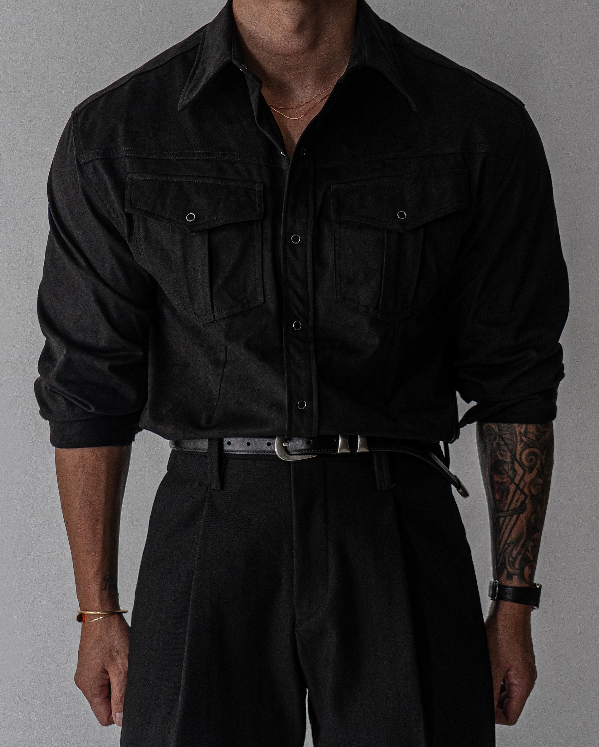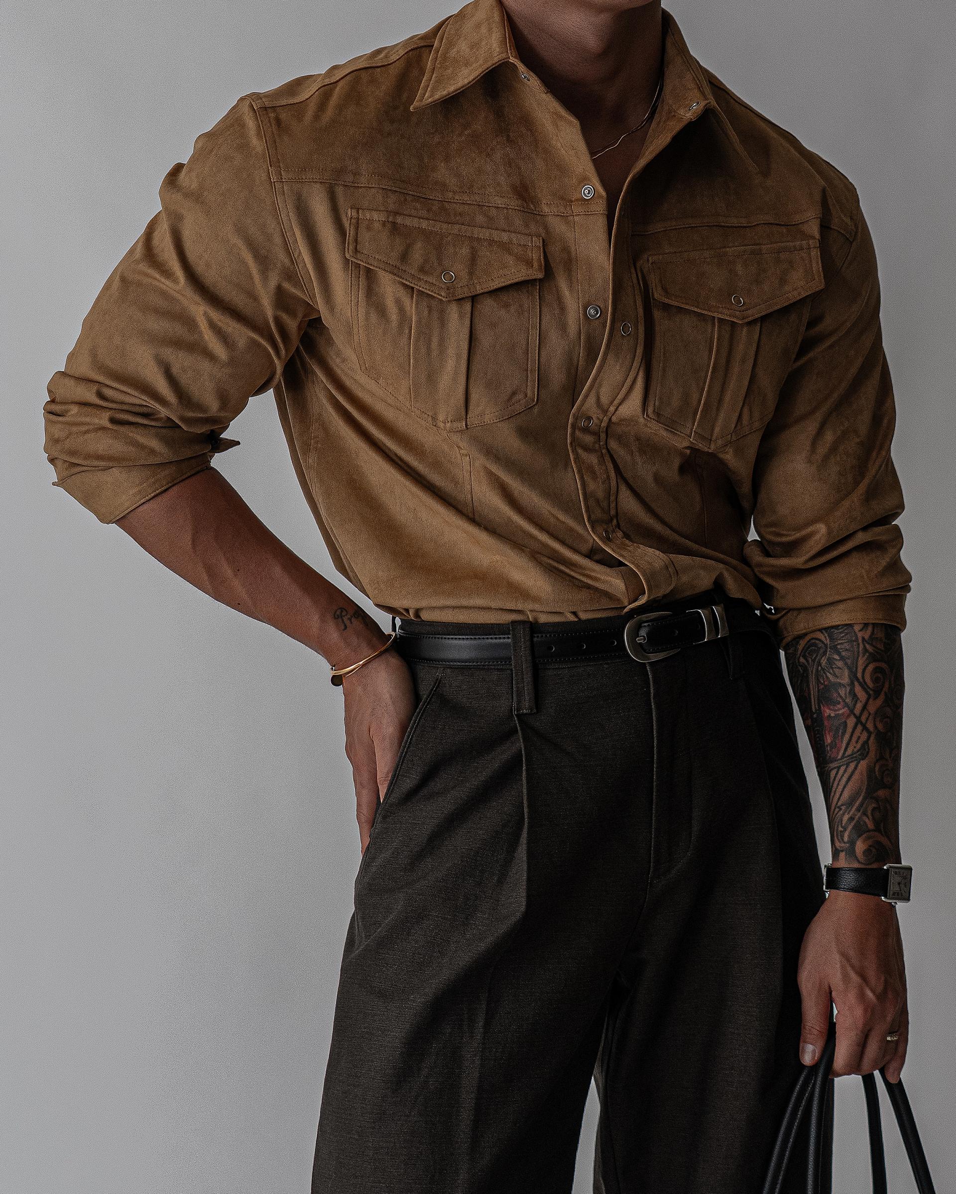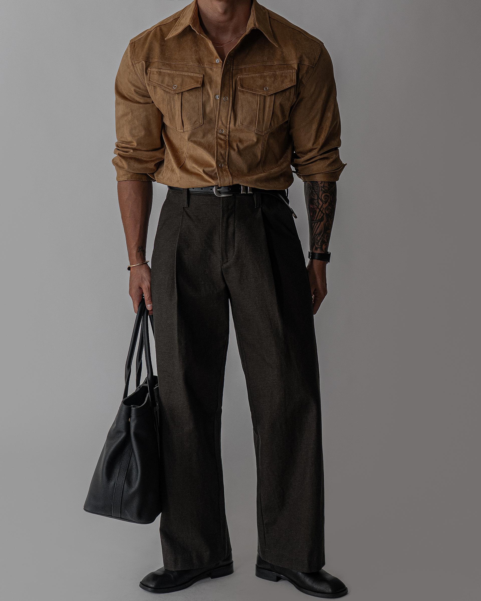 - 묵직한 착용감과 고급스러운 텍스쳐의 스웨이드 셔츠