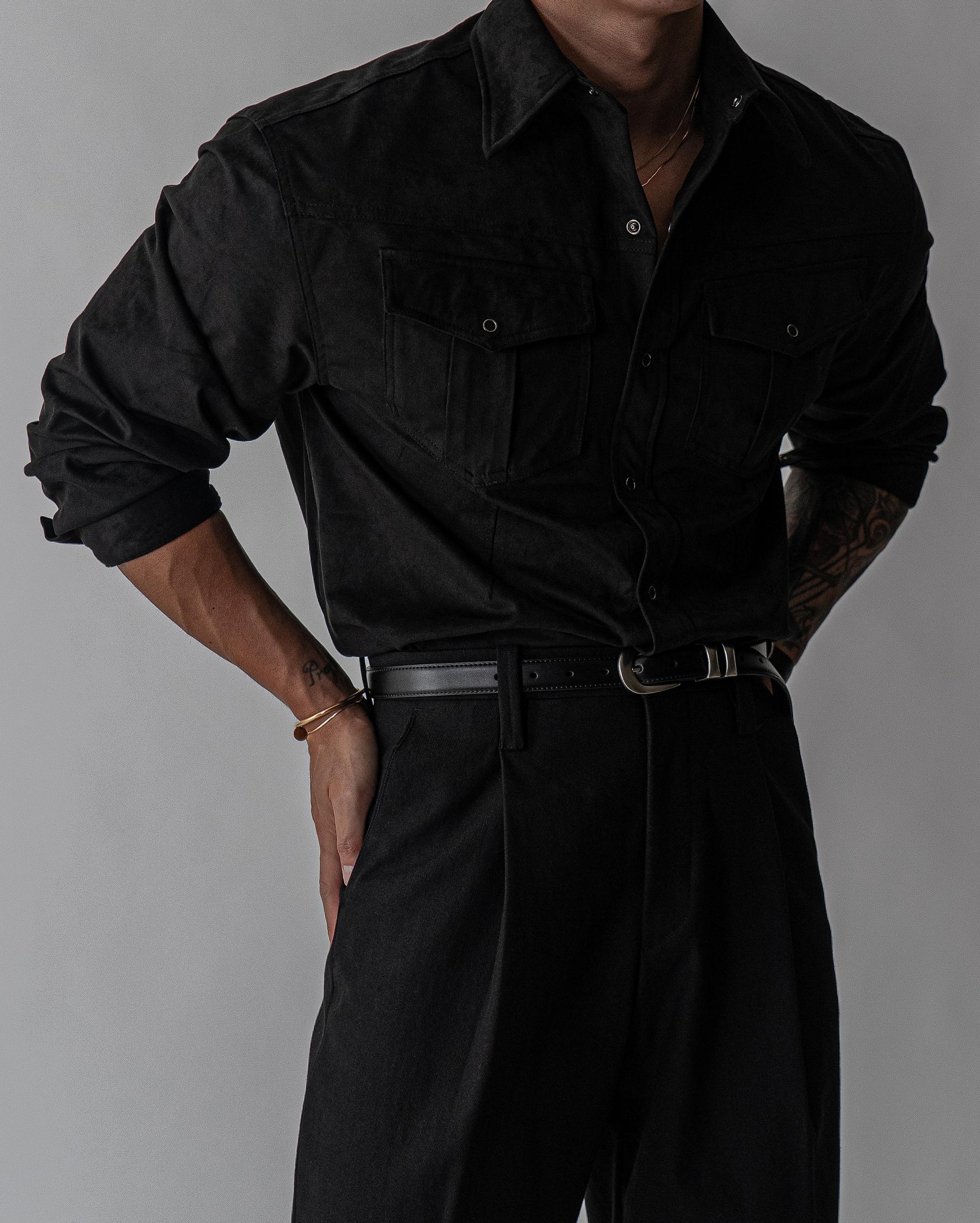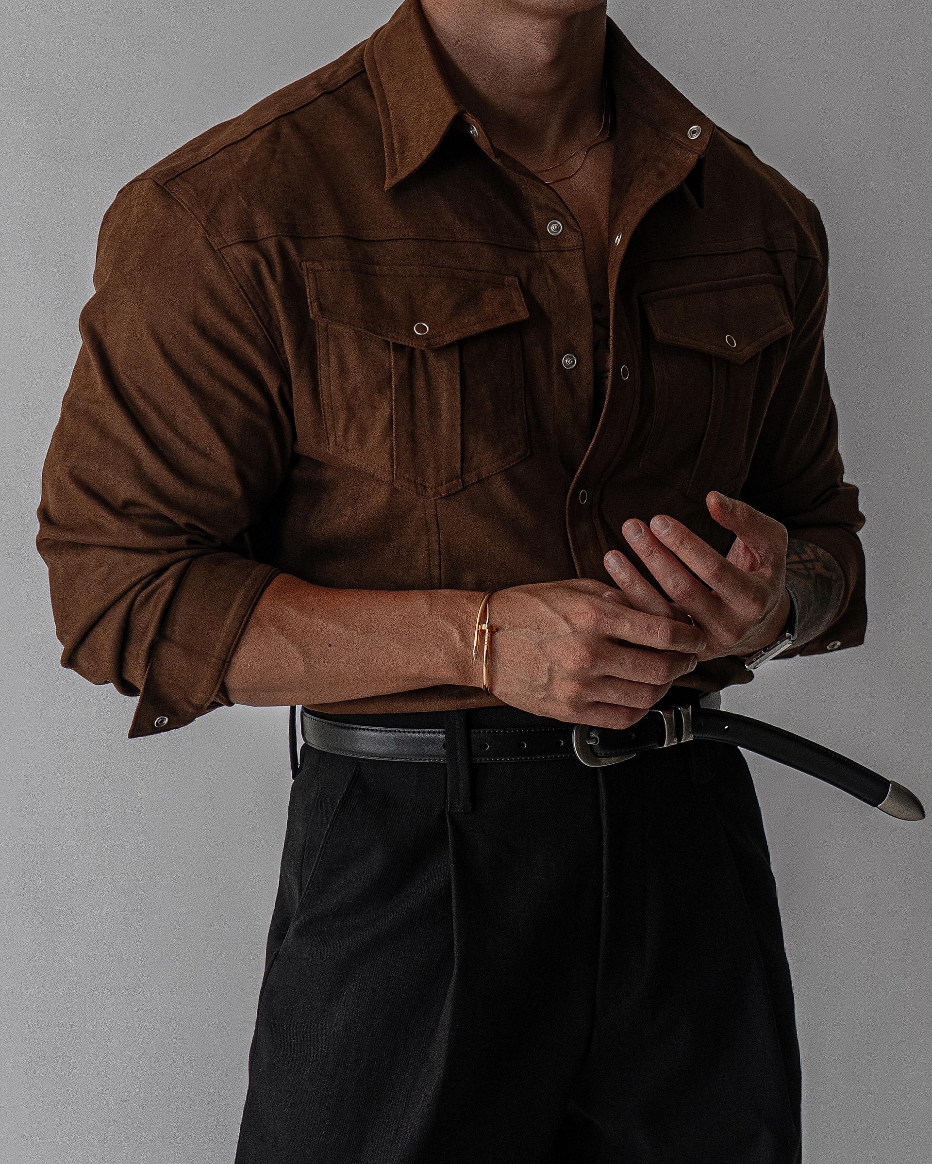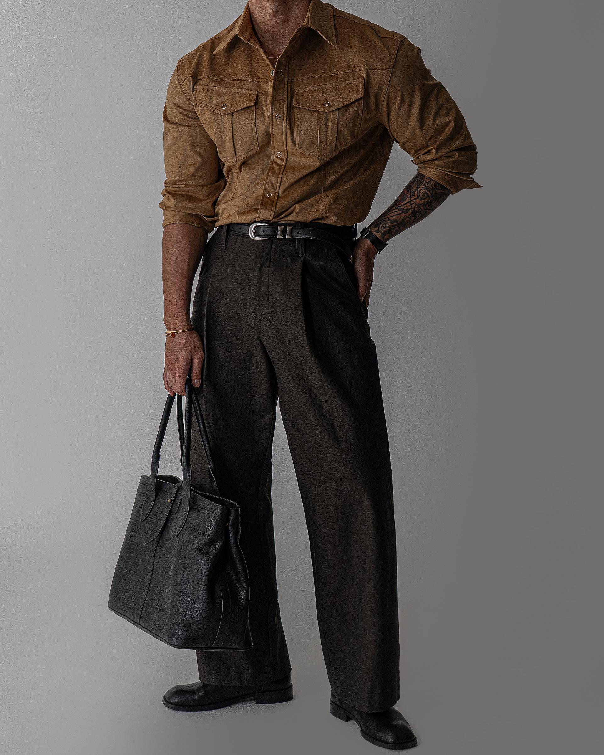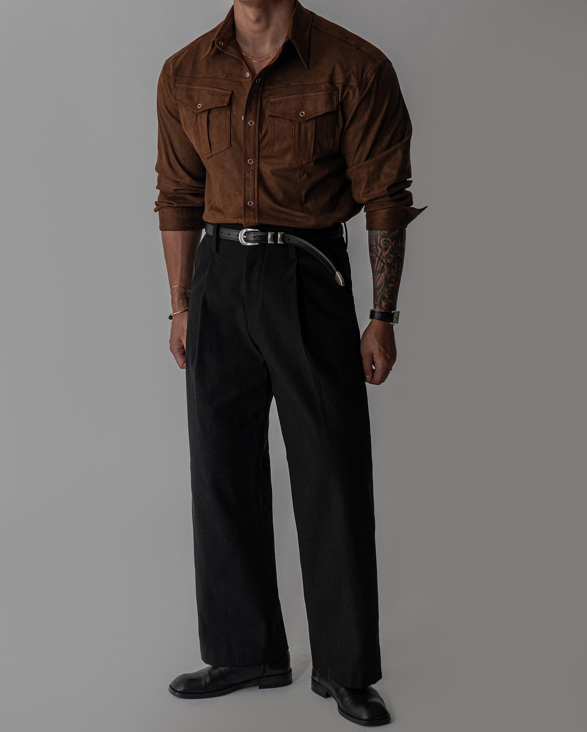 - 묵직한 착용감과 고급스러운 텍스쳐의 스웨이드 셔츠