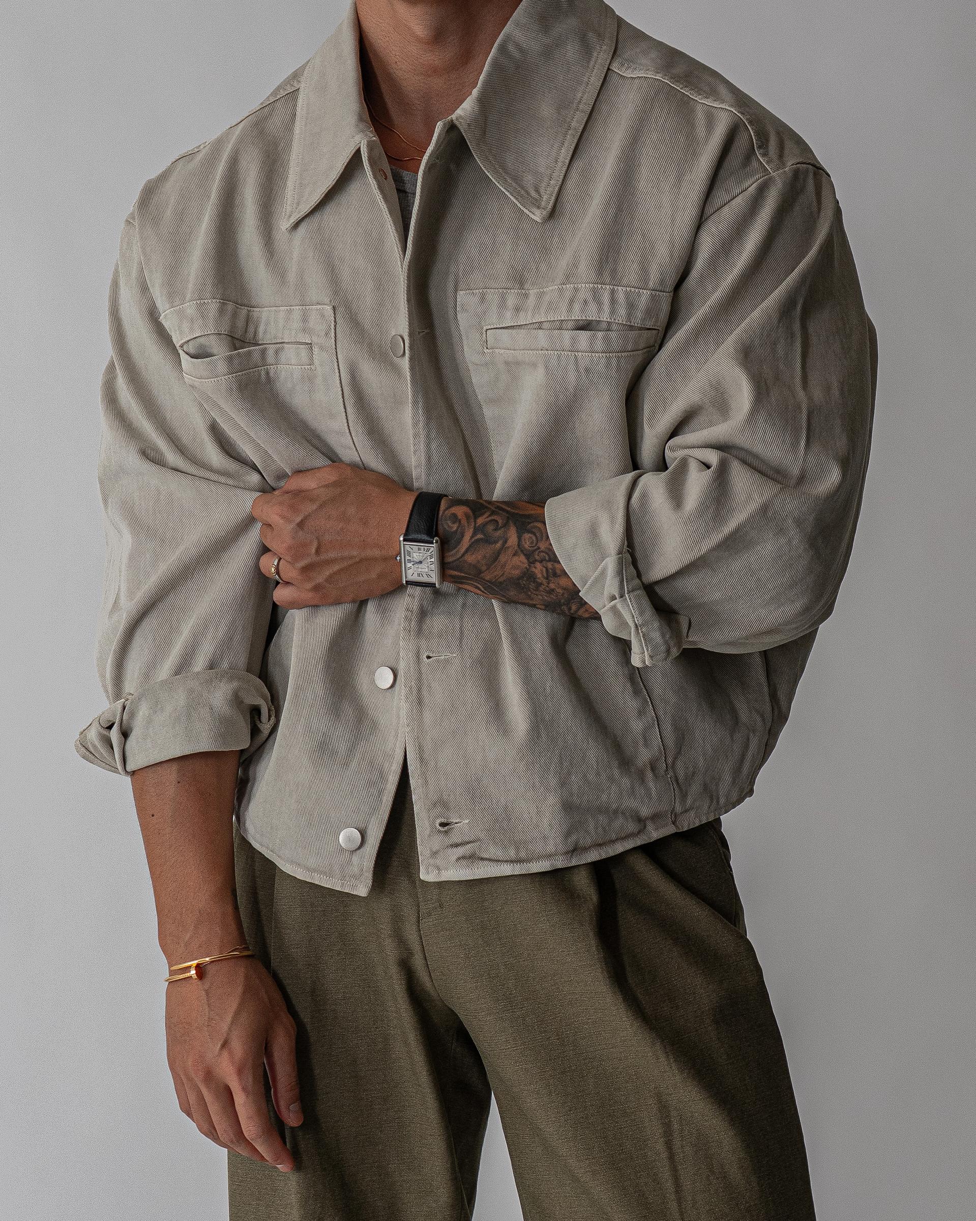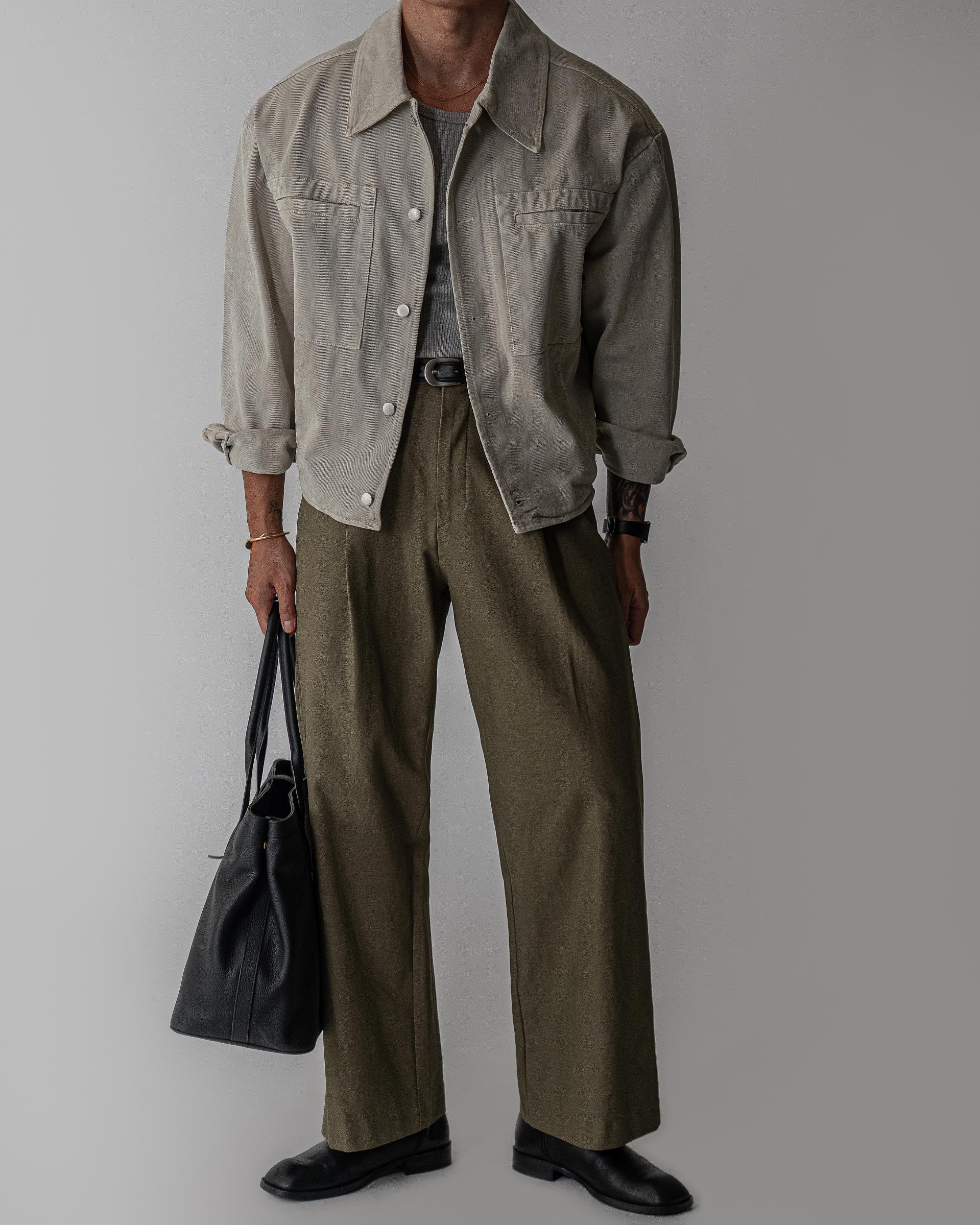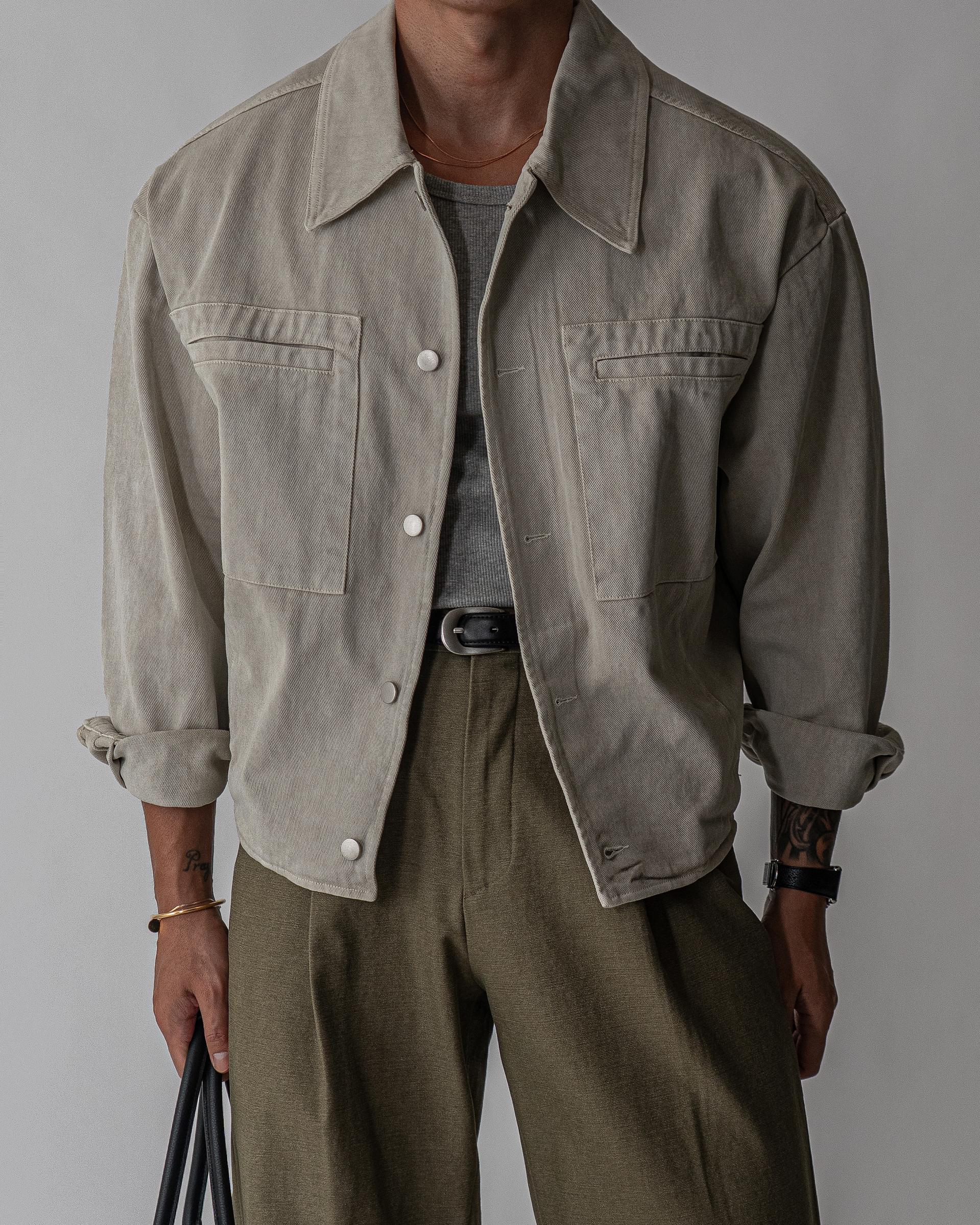 - 여유있는 포켓 디테일과 소매와 밑단의 핀턱 디테일