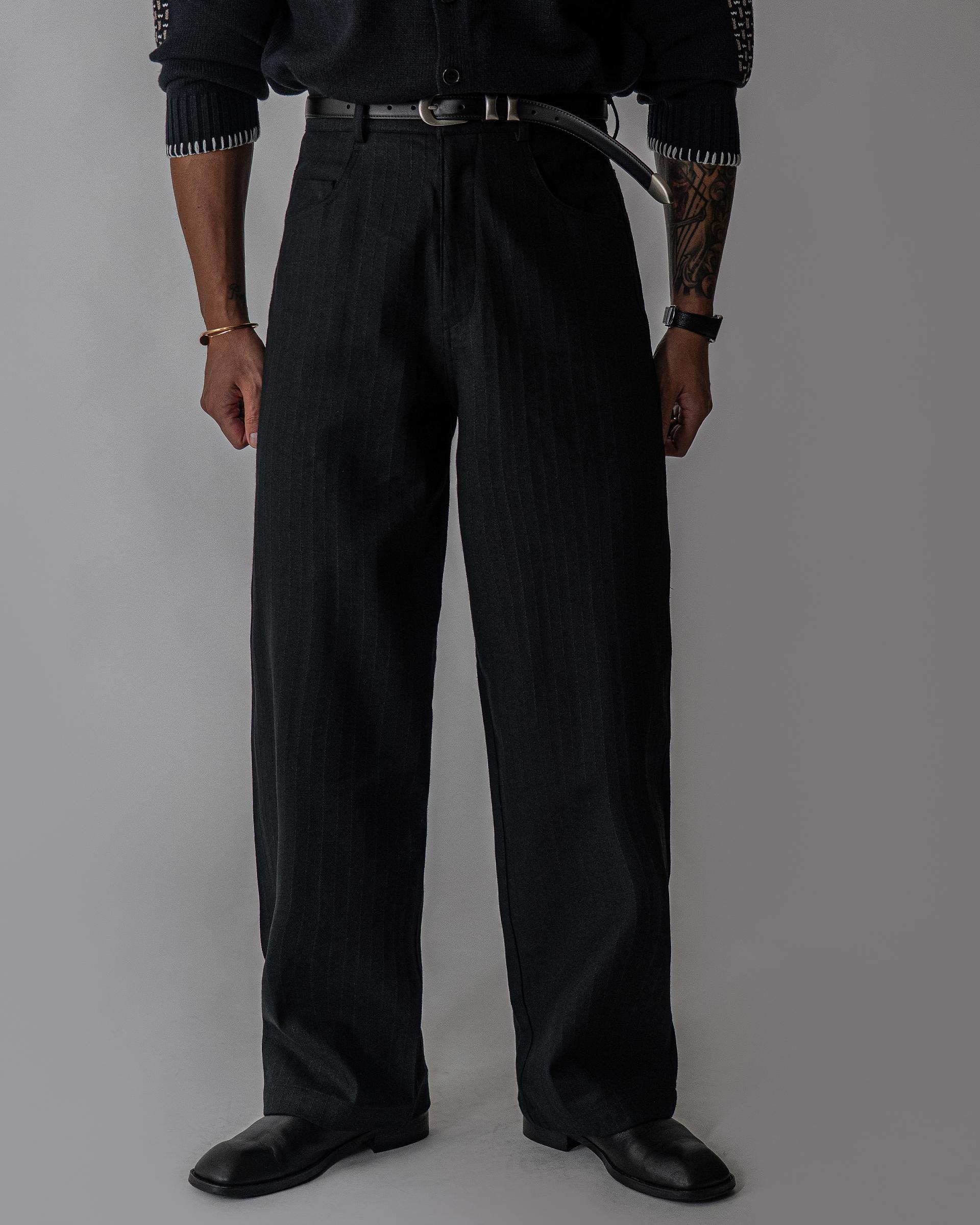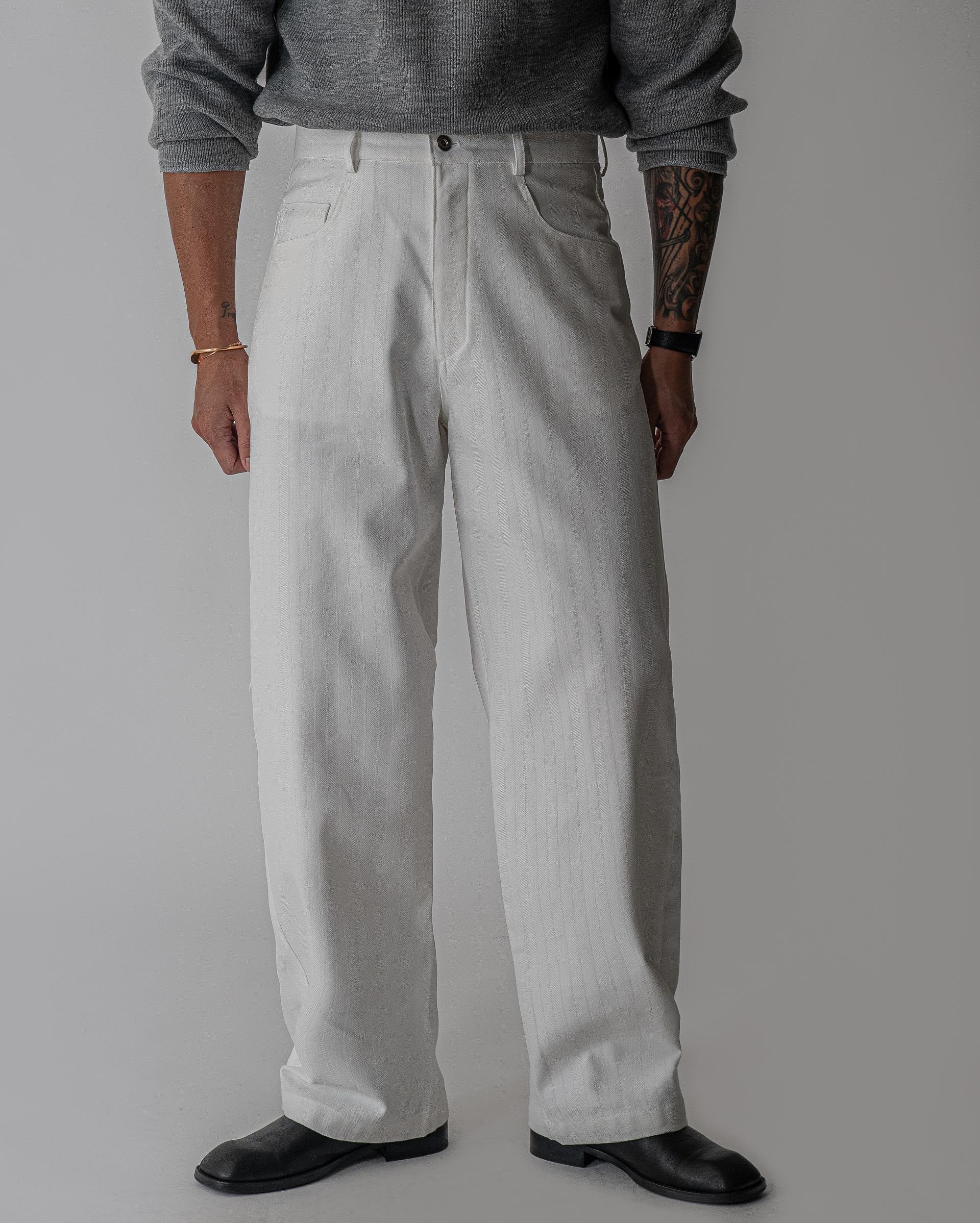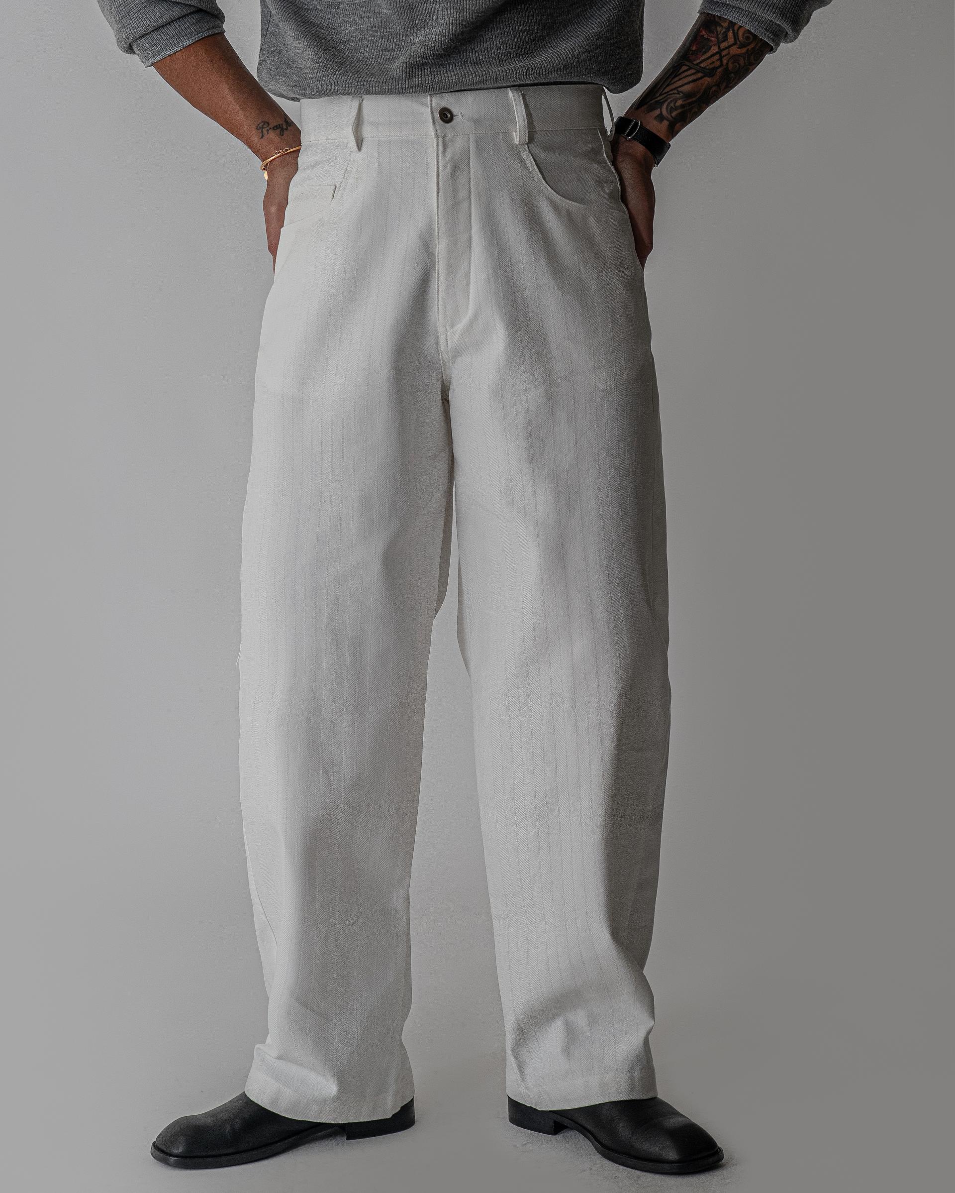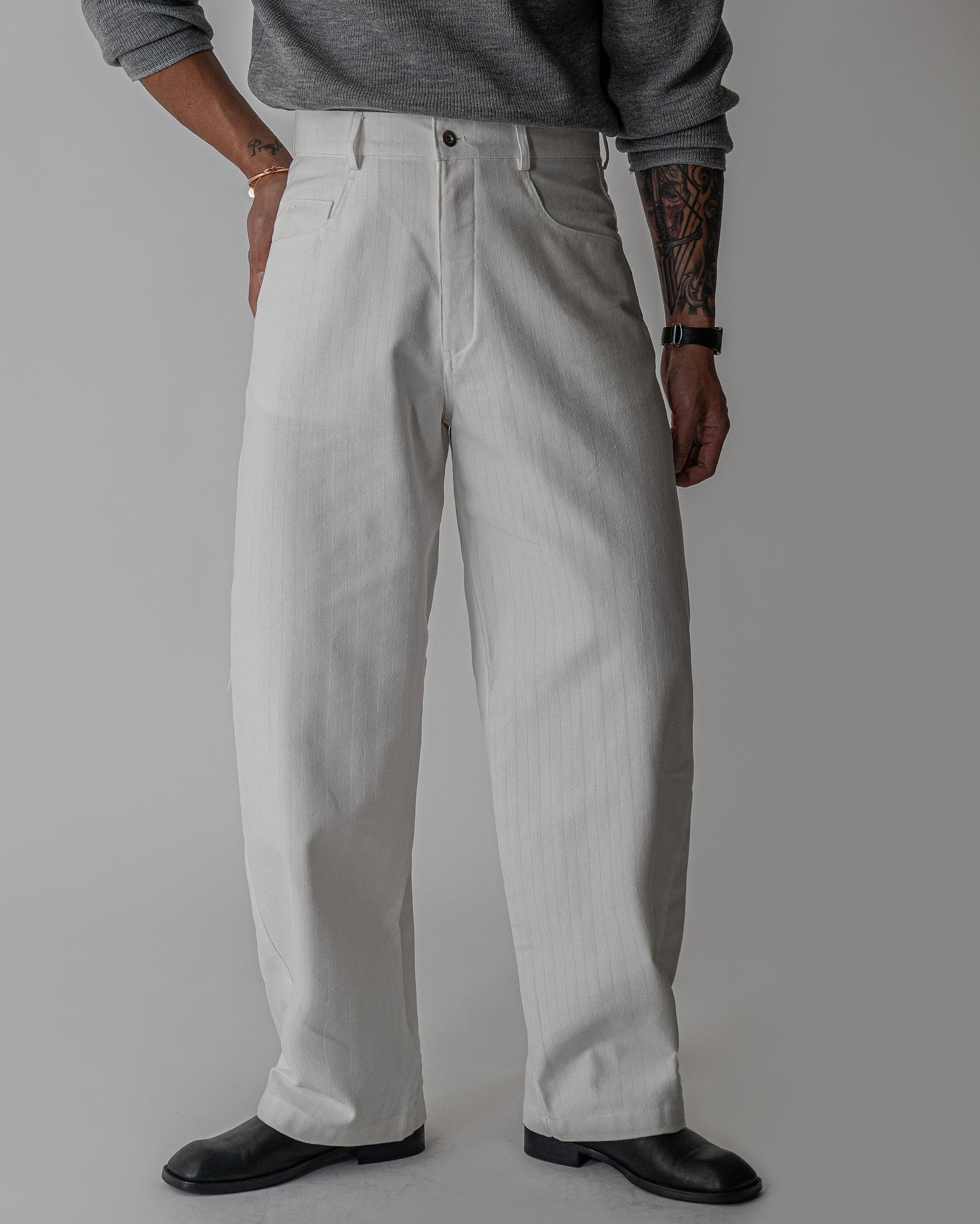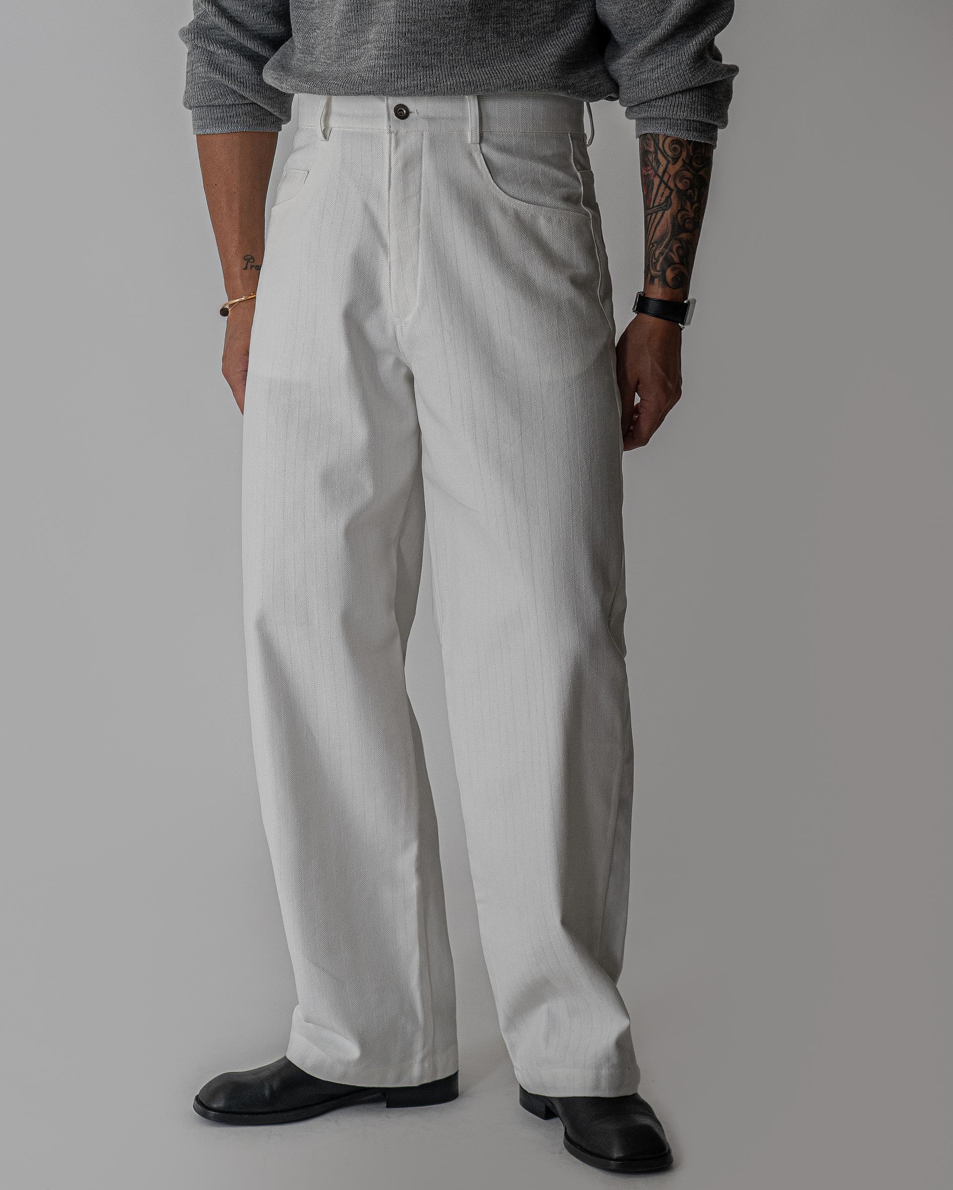 - 유니크한 스트라이프 패턴의 테이퍼드 핏 팬츠