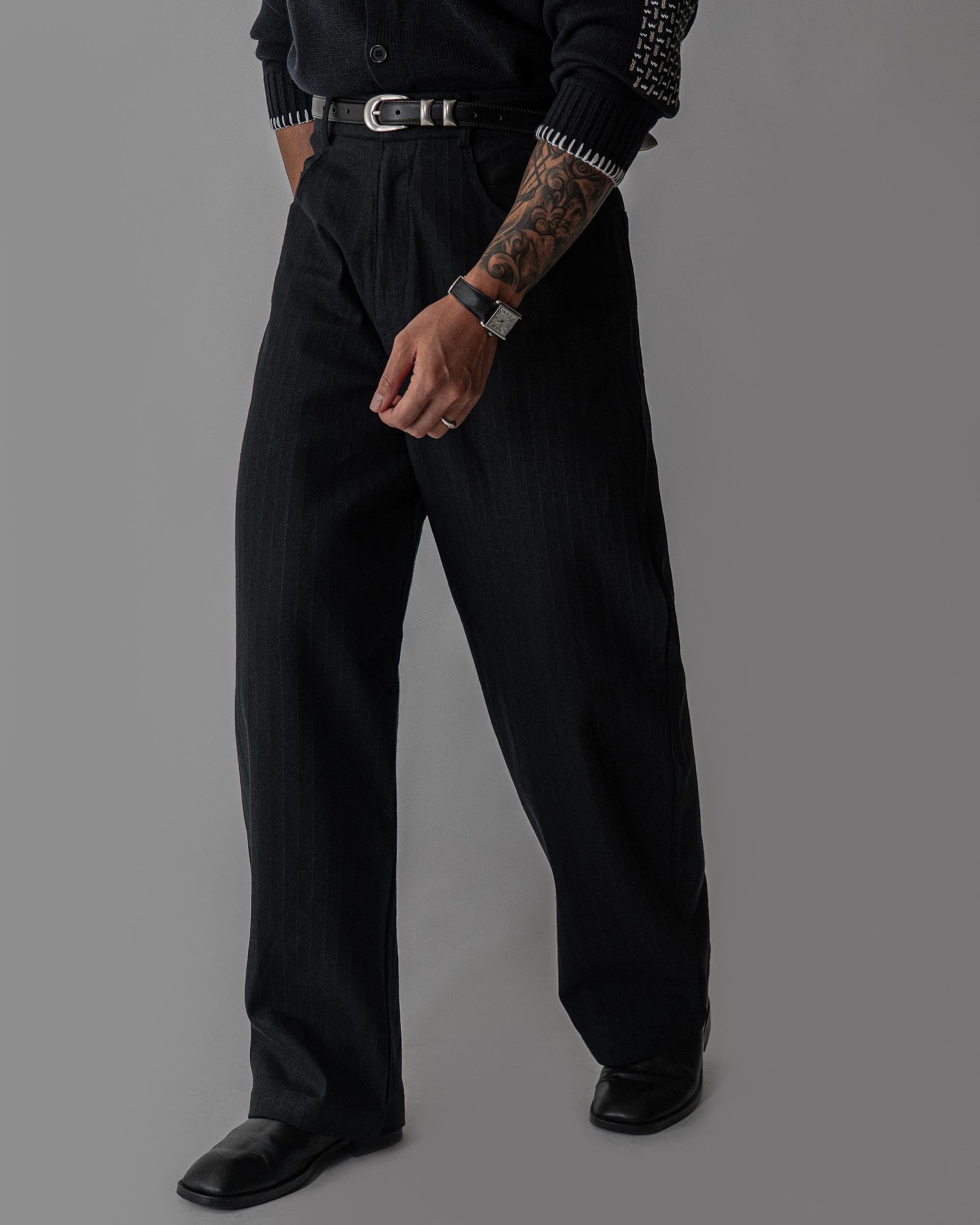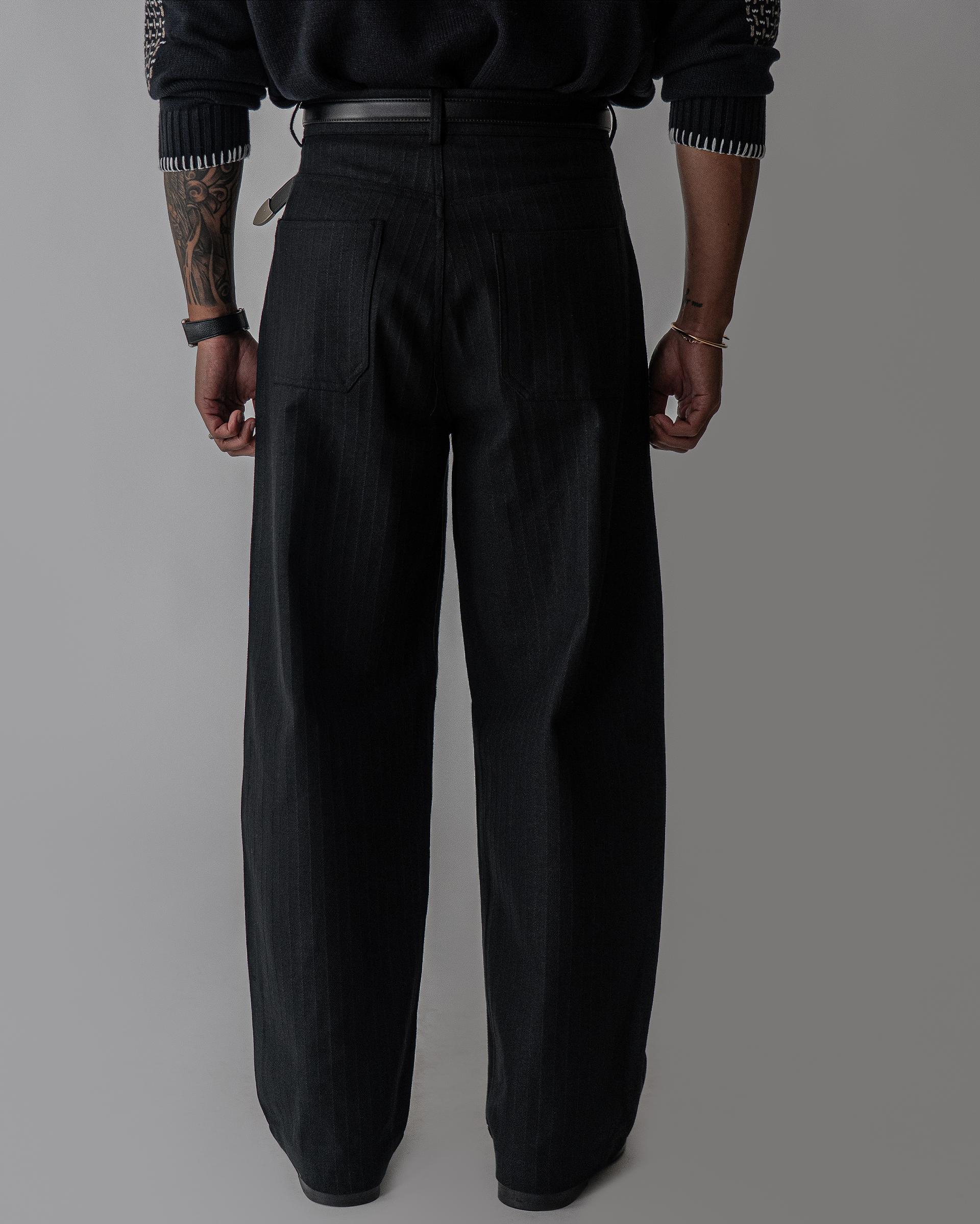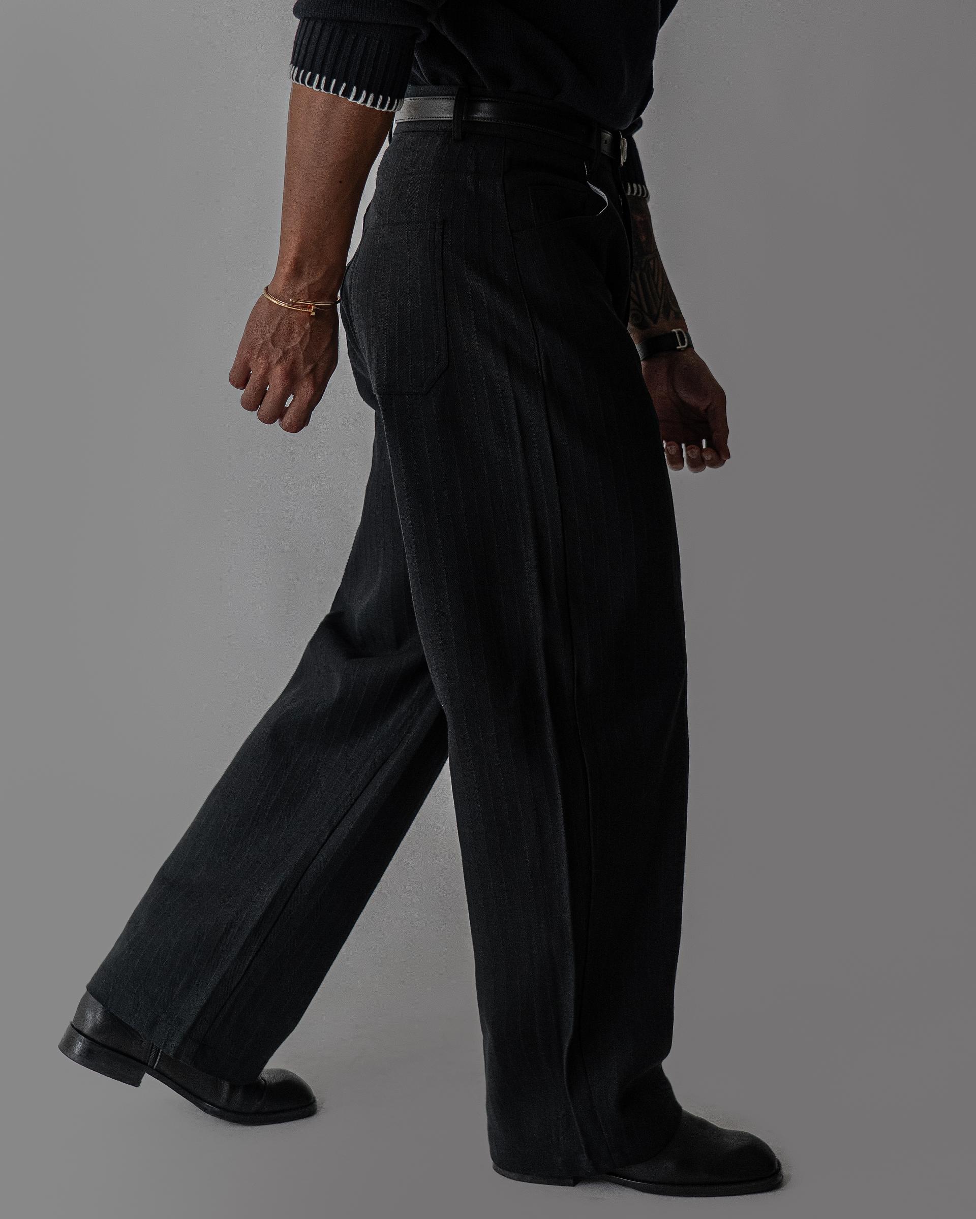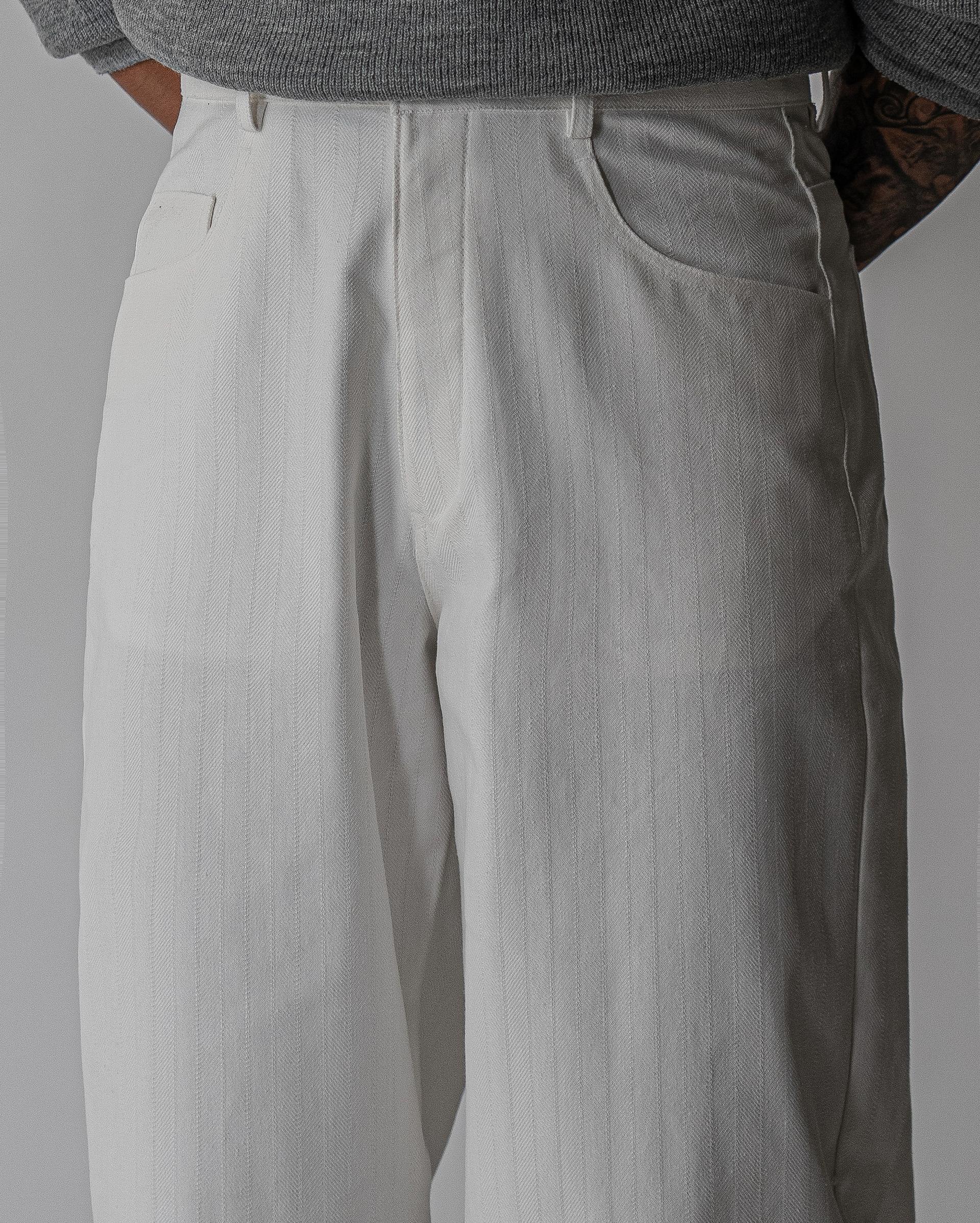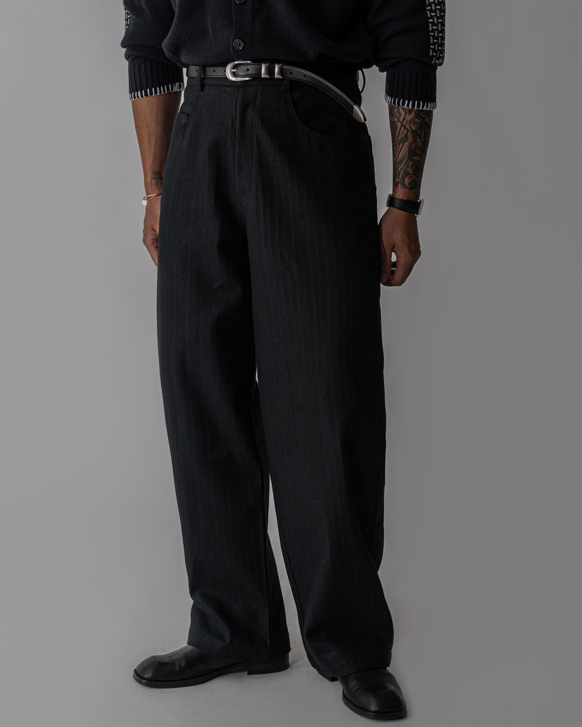 - 유니크한 스트라이프 패턴의 테이퍼드 핏 팬츠