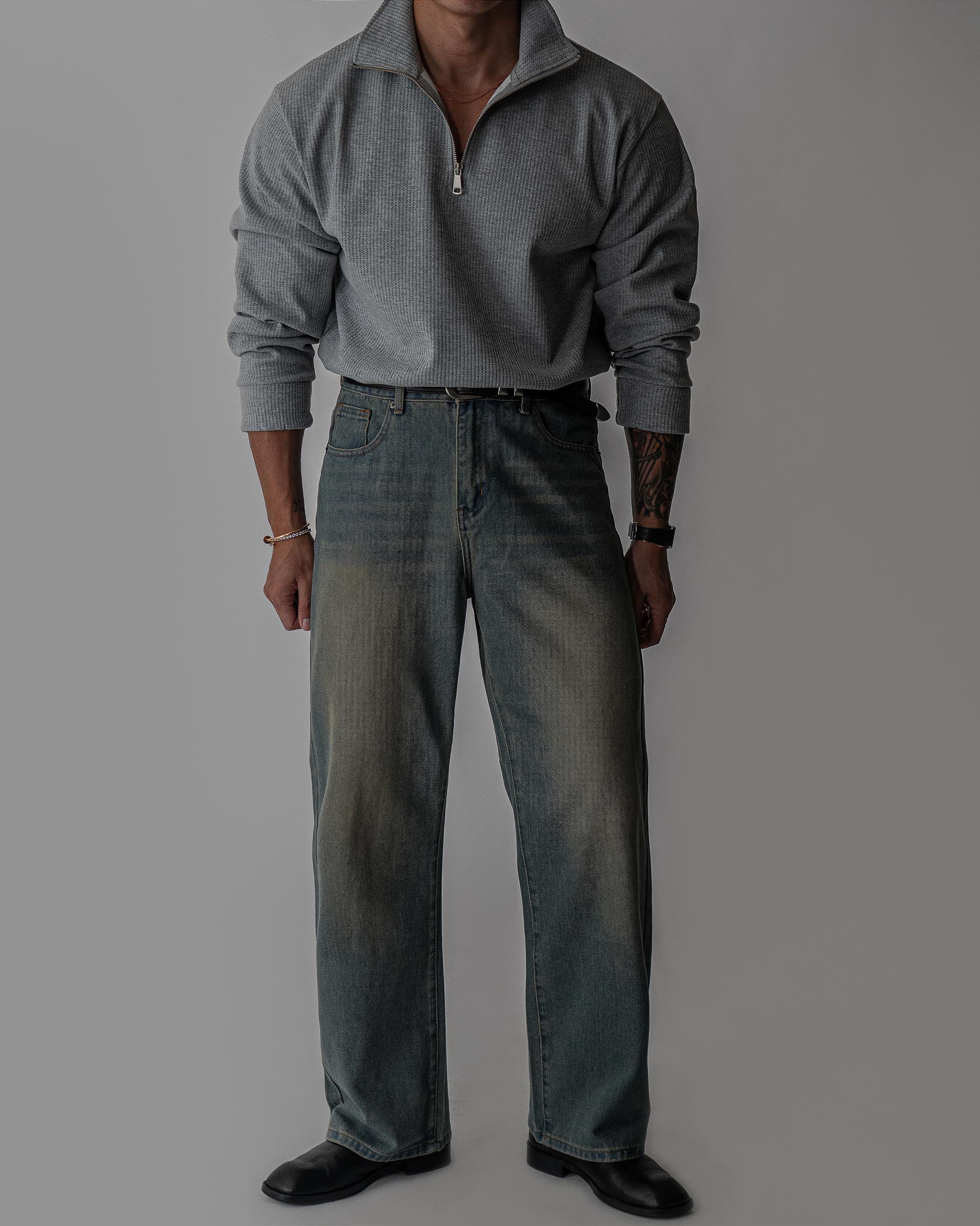 하의 - 틴 빈티지 세미 와이드 데님 팬츠