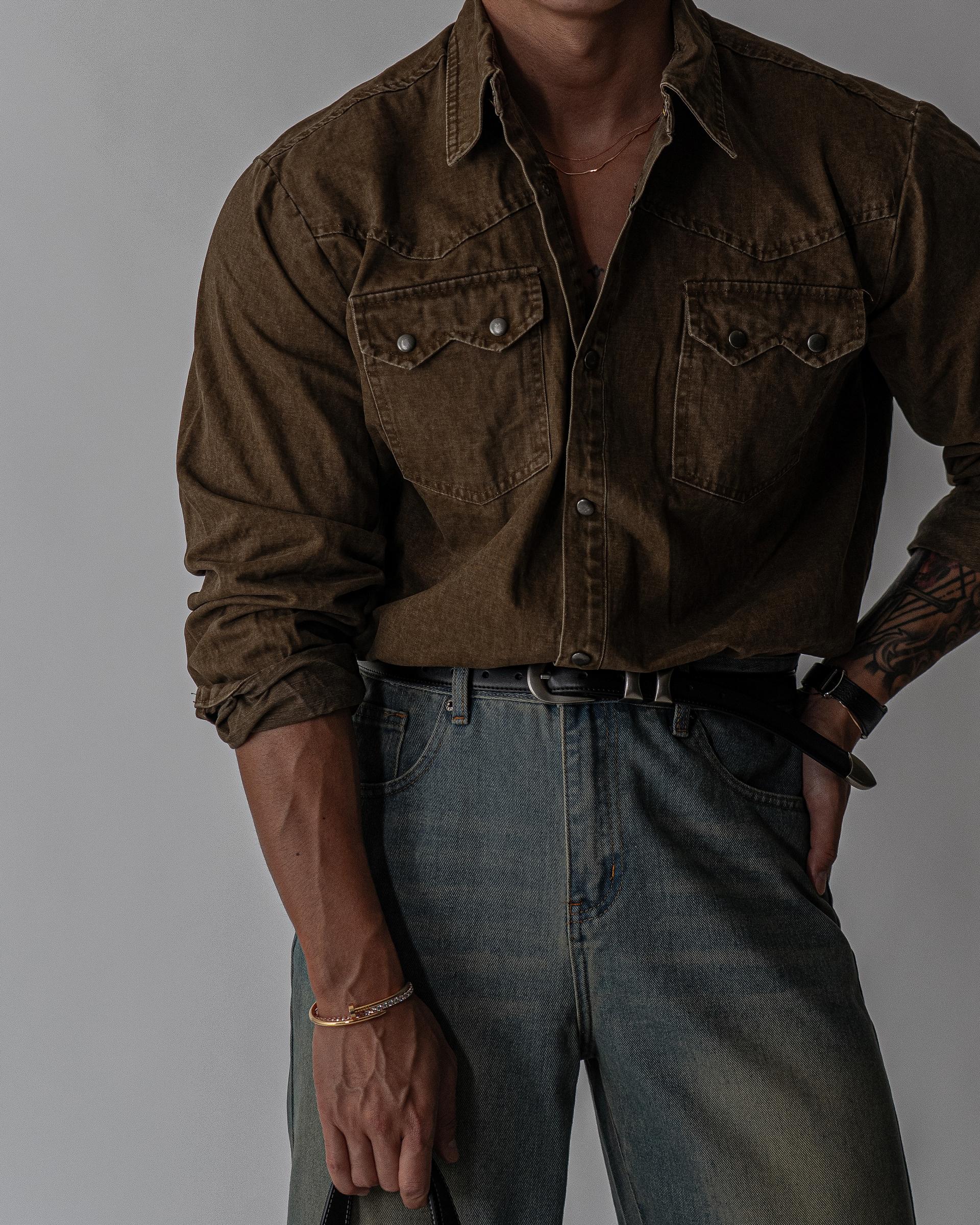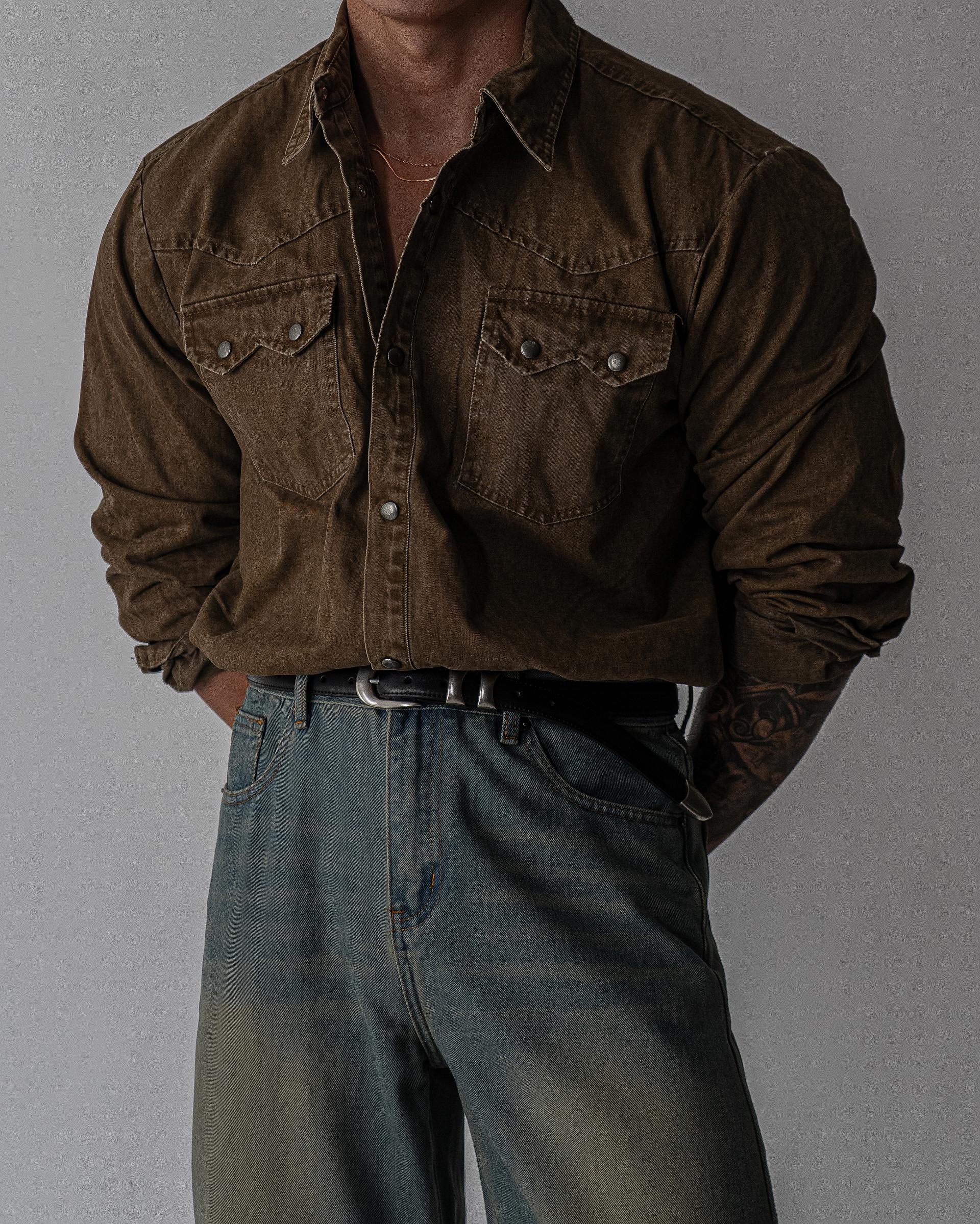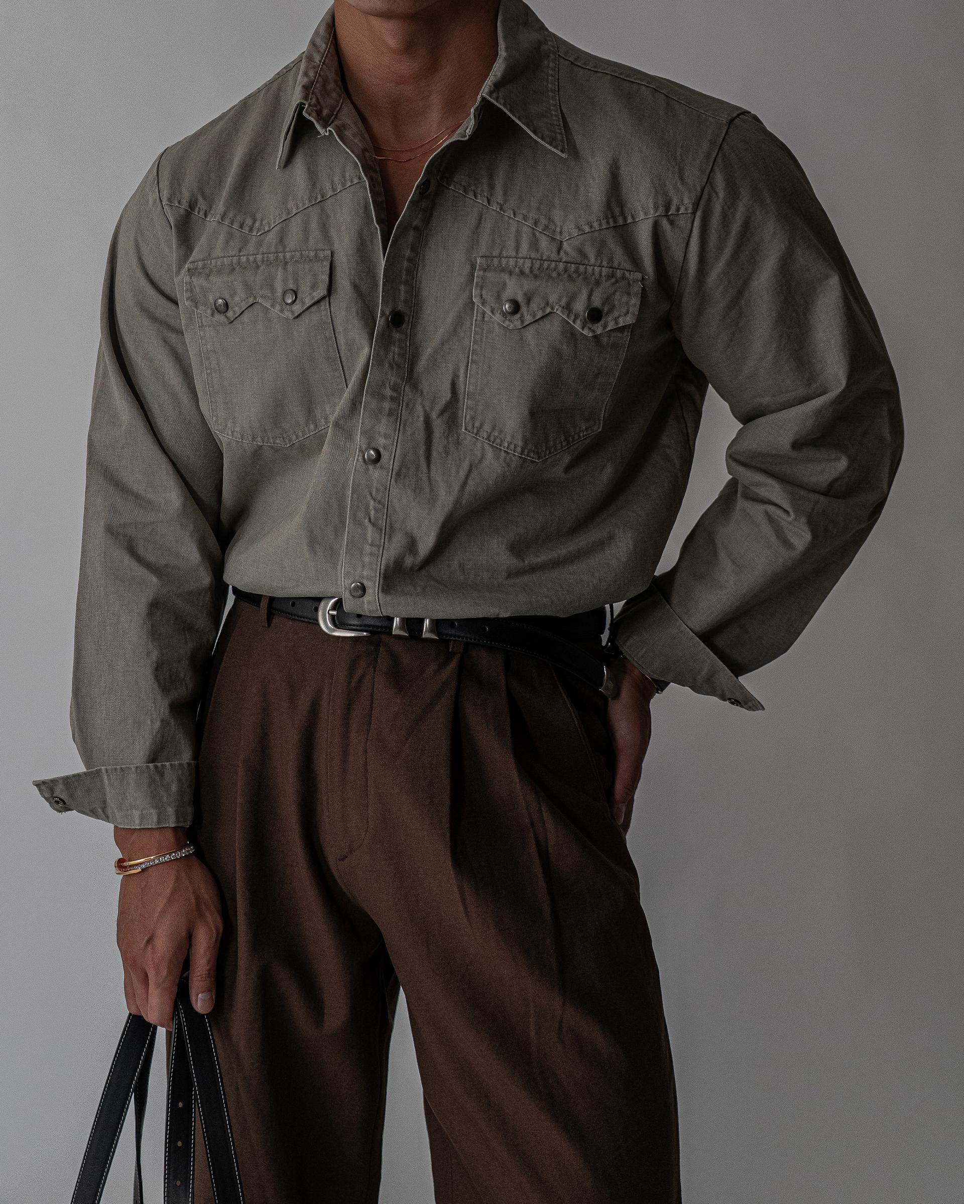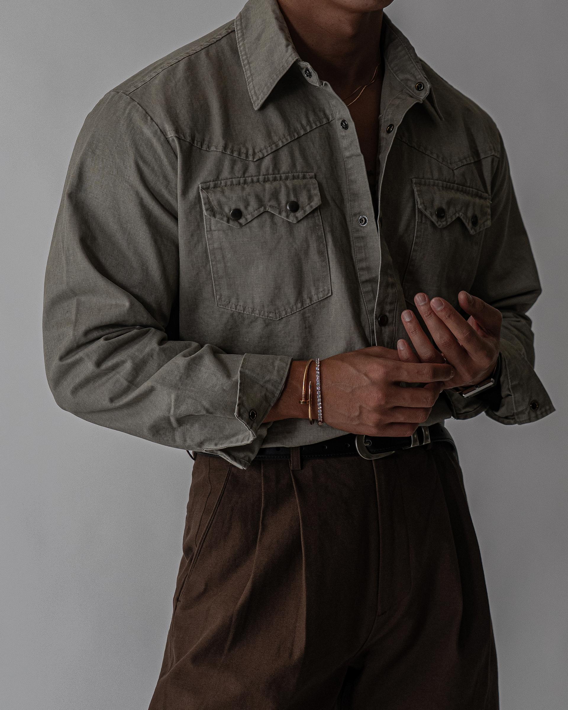 - 빈티지한 무드의 W포켓 웨스턴 다잉 셔츠