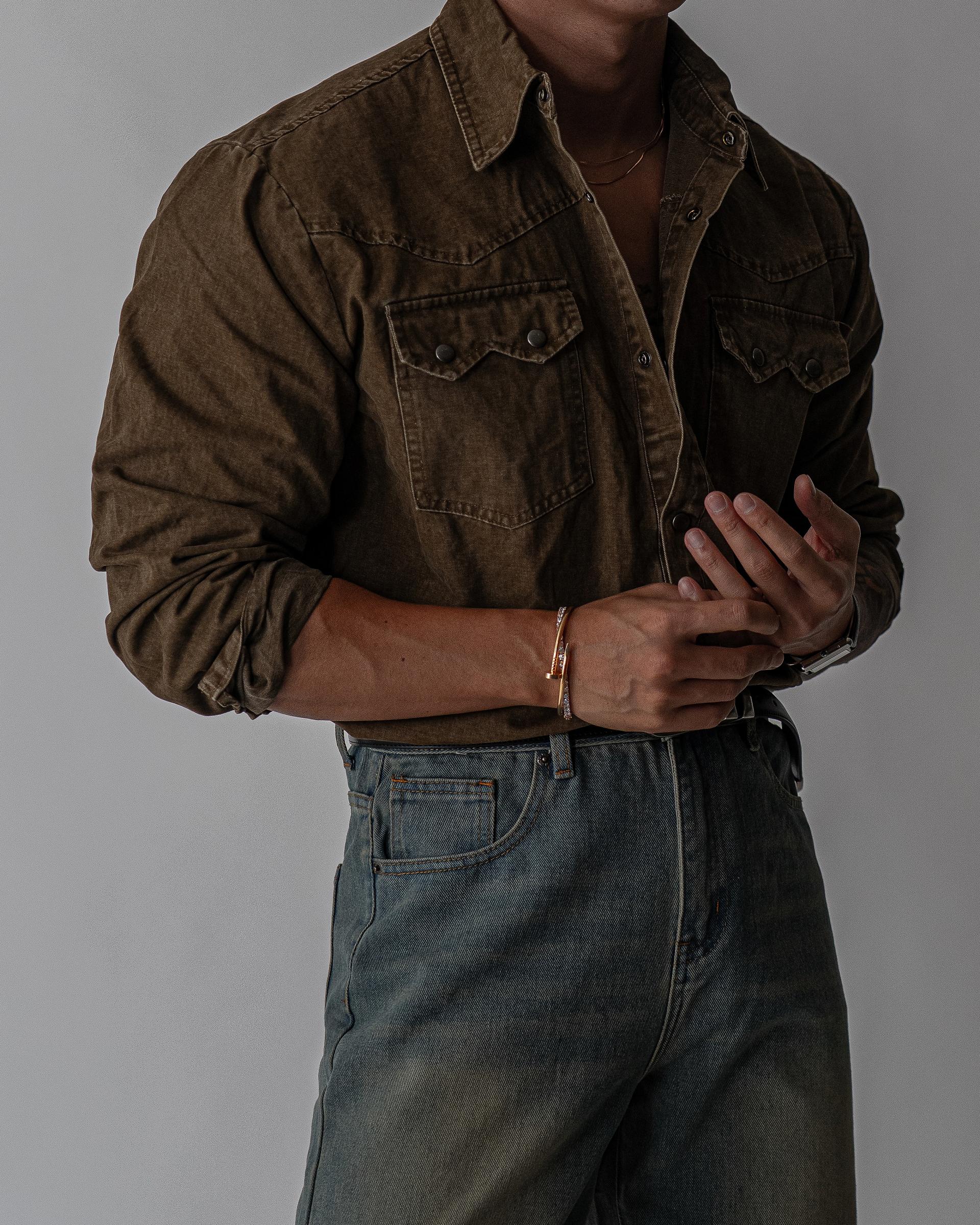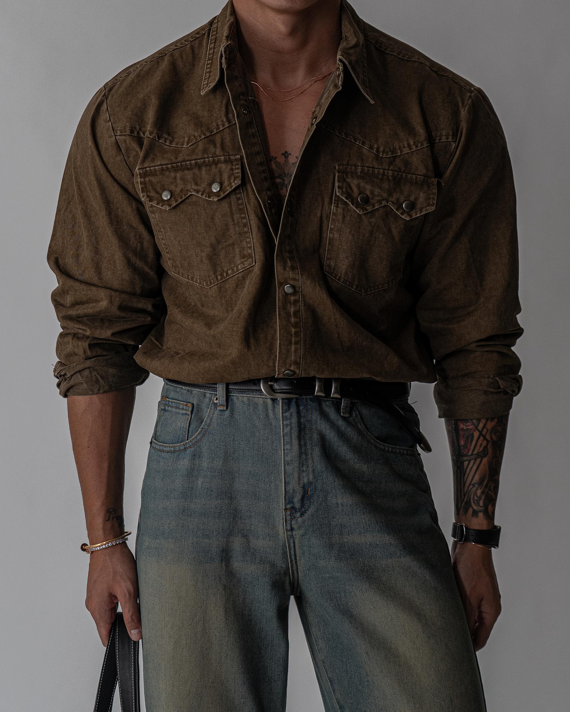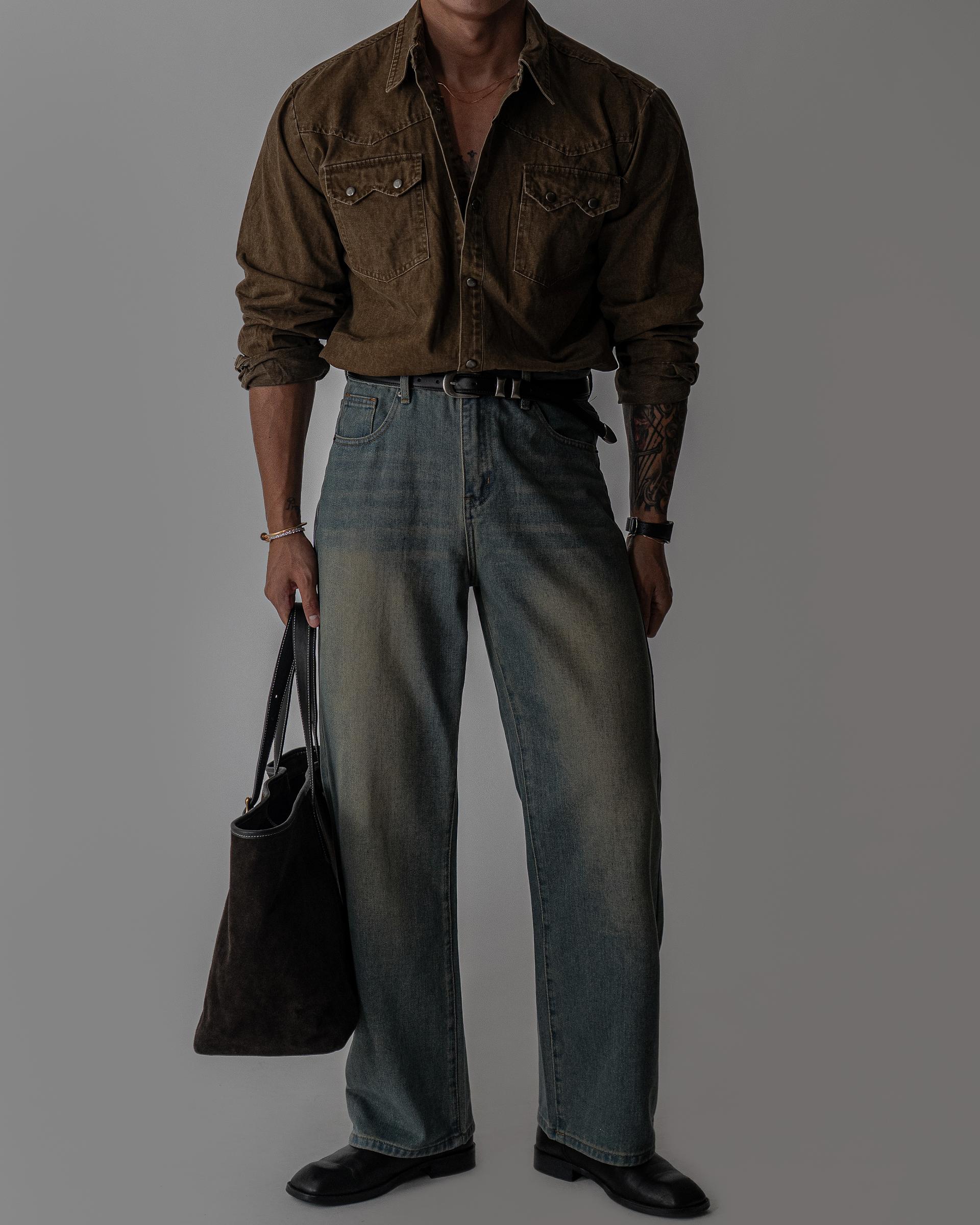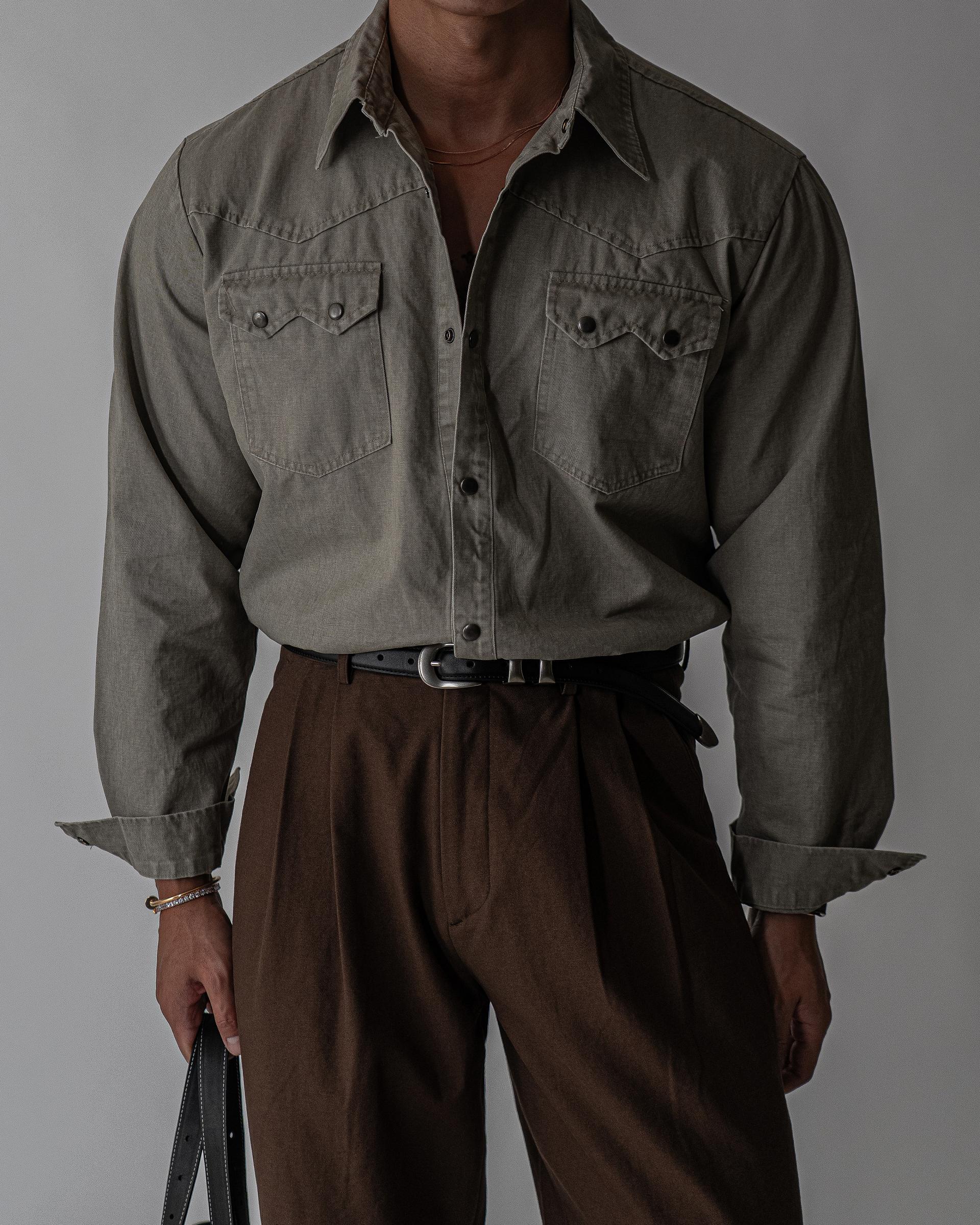 - 빈티지한 무드의 W포켓 웨스턴 다잉 셔츠