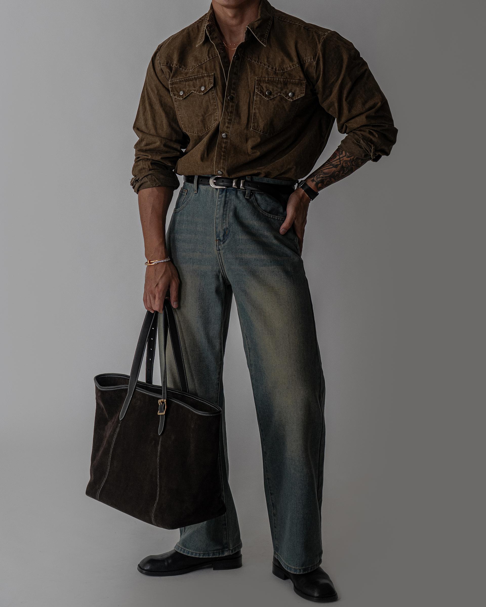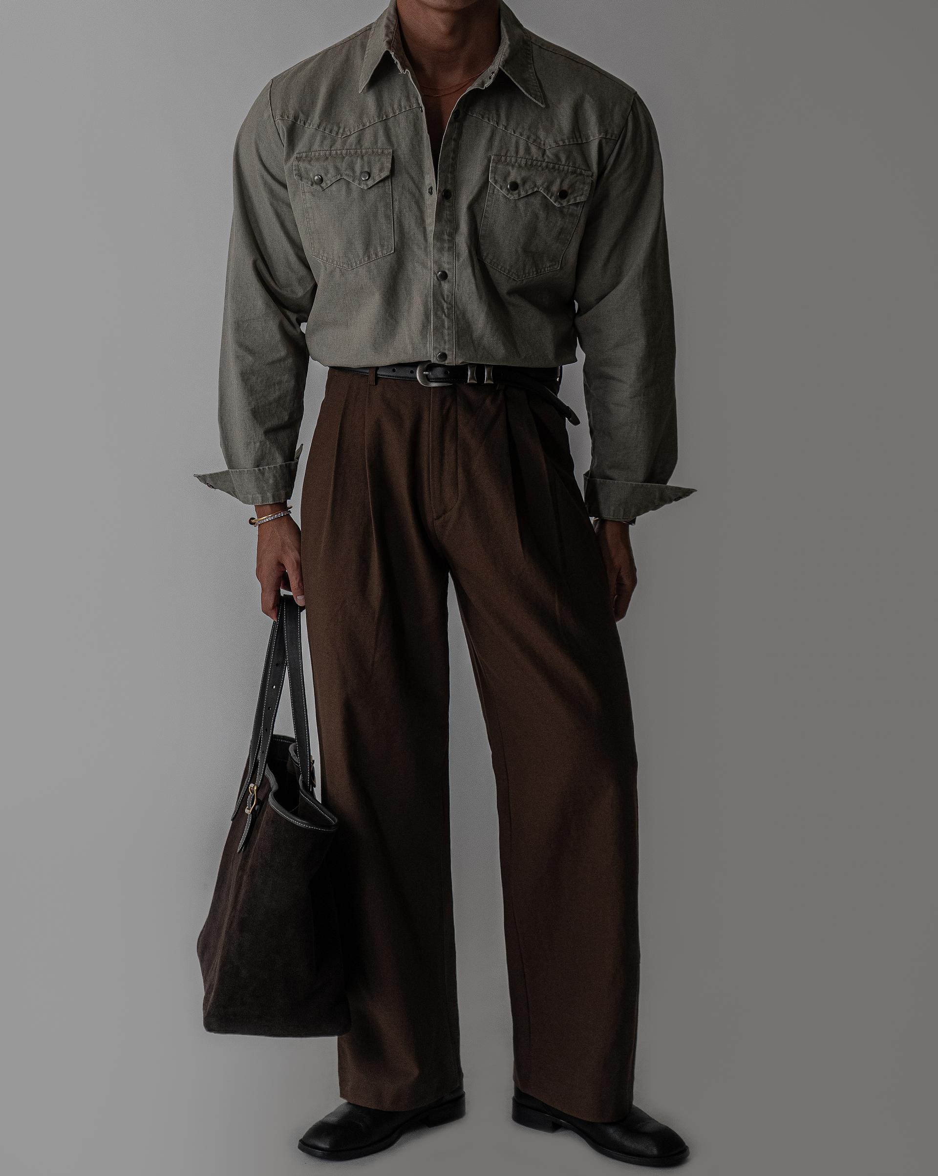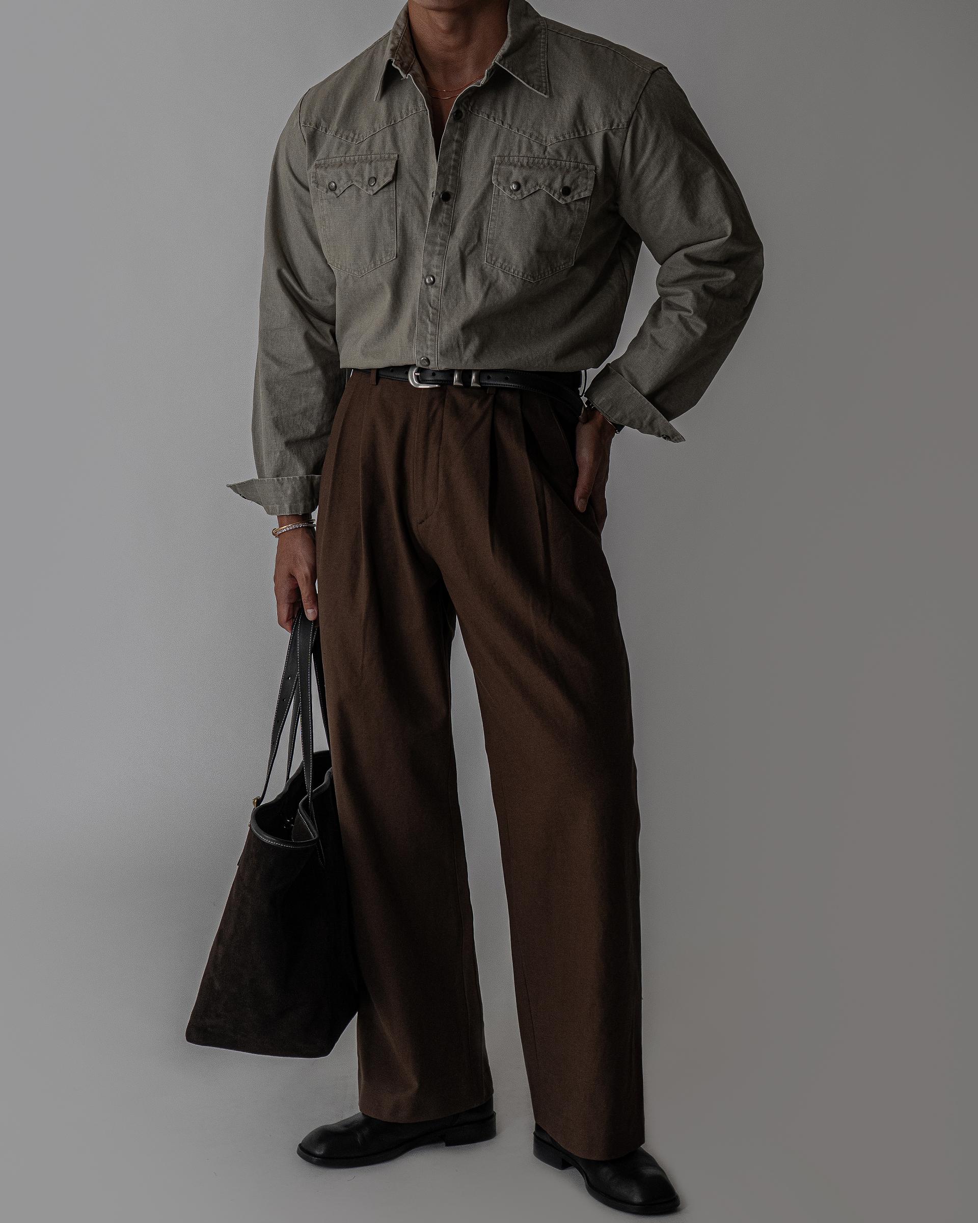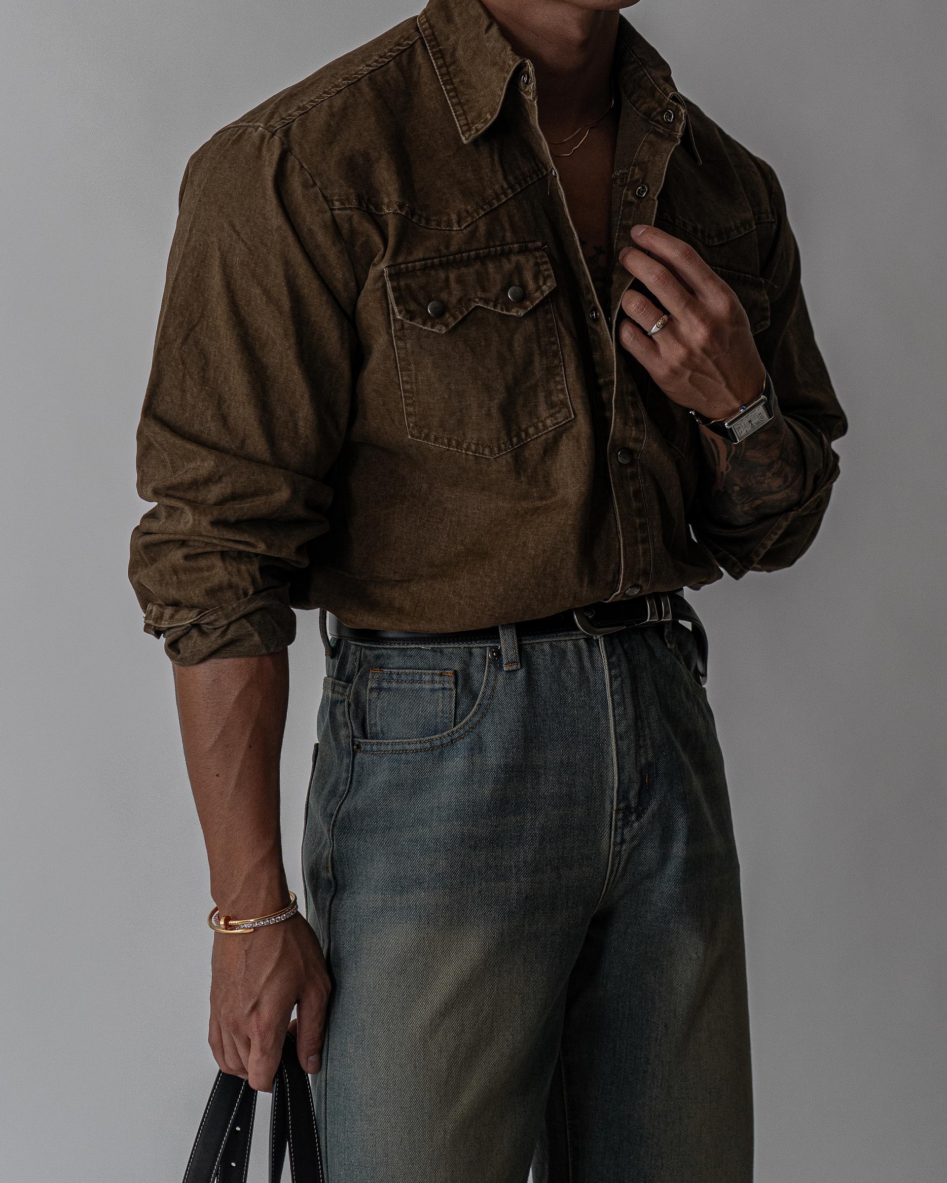 - 빈티지한 무드의 W포켓 웨스턴 다잉 셔츠