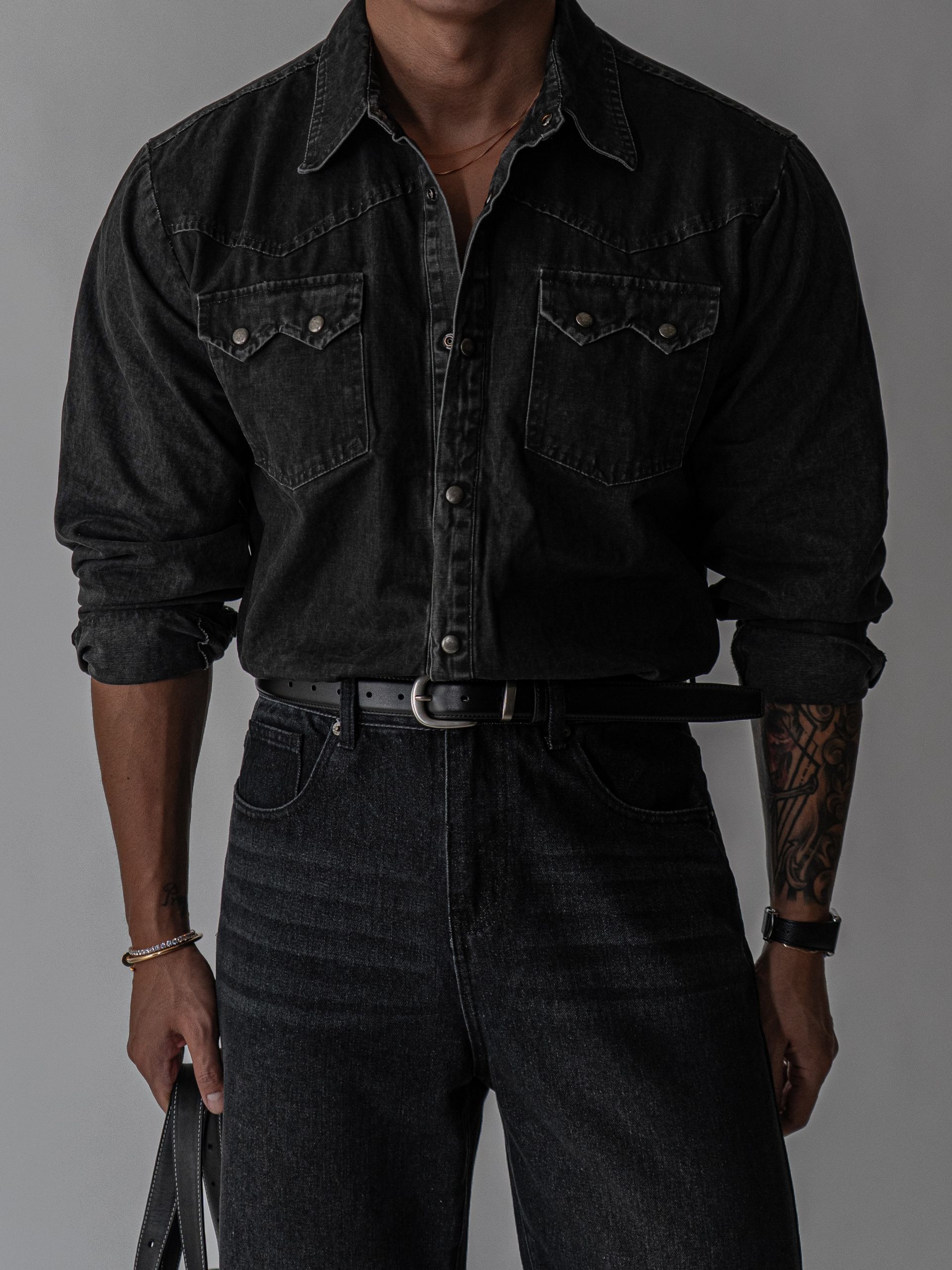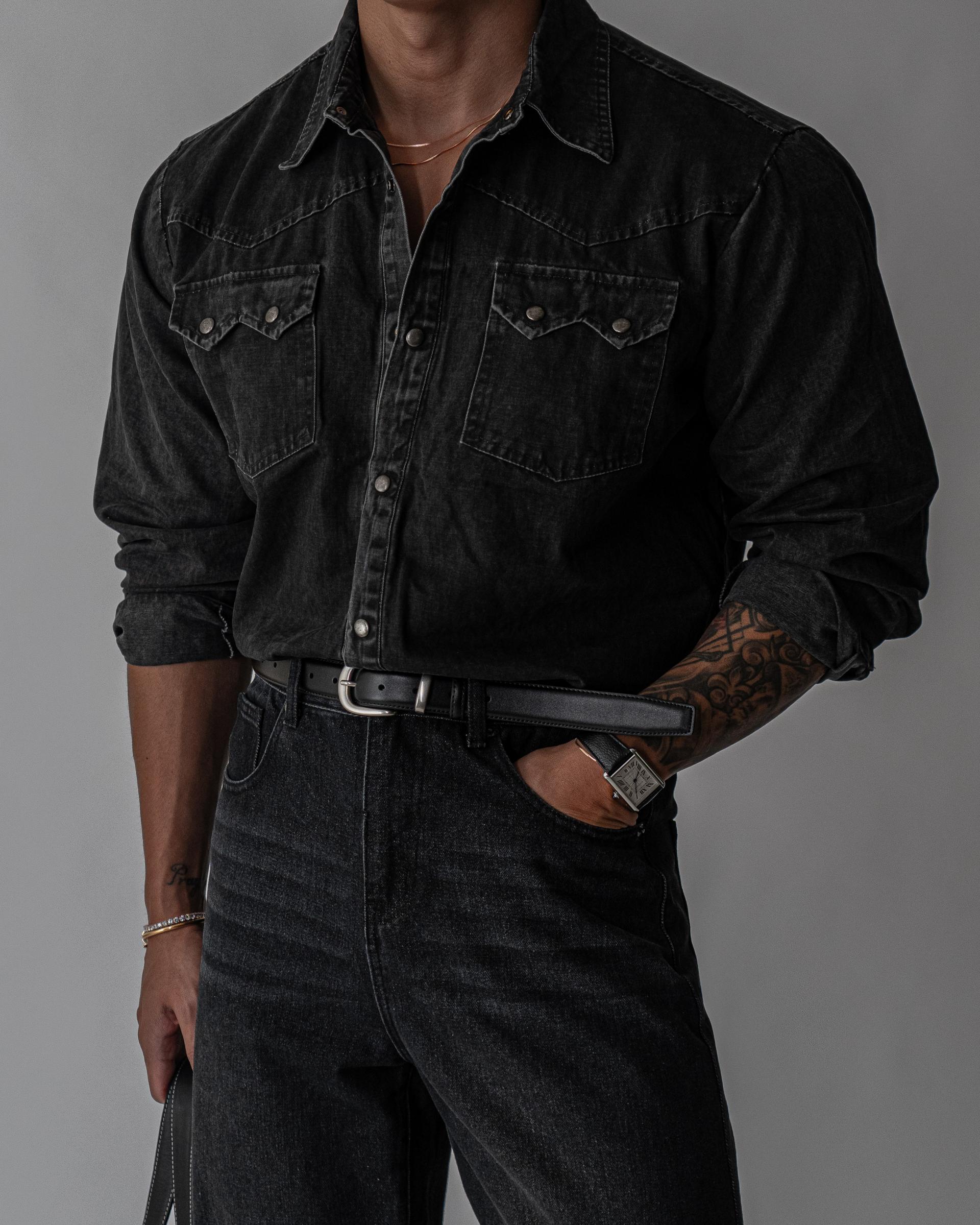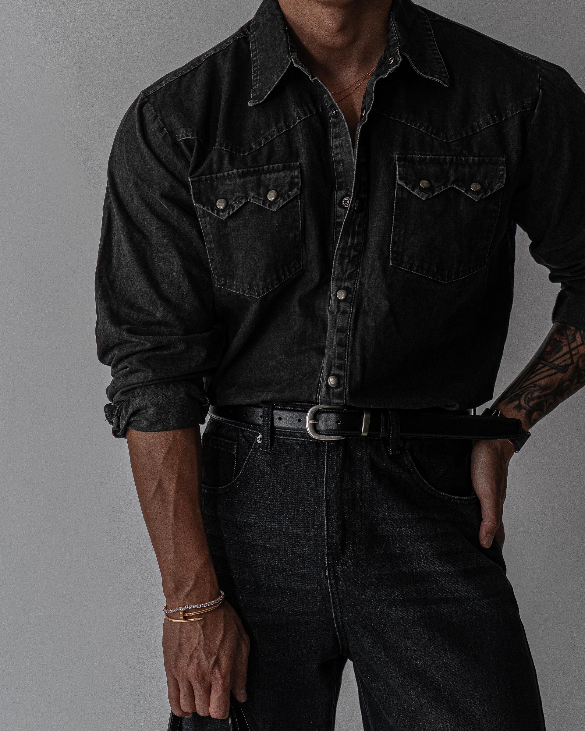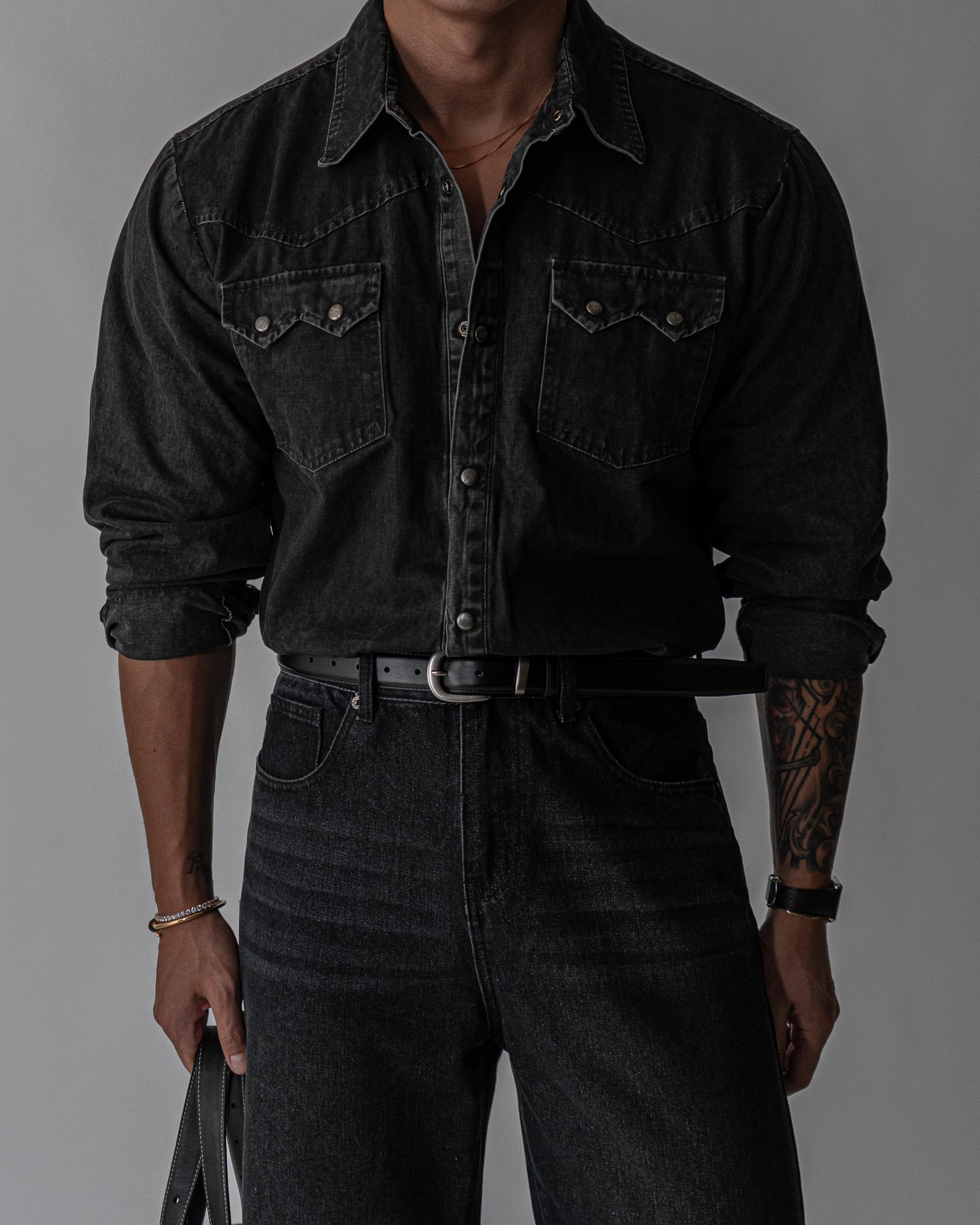 - 빈티지한 무드의 W포켓 웨스턴 다잉 셔츠