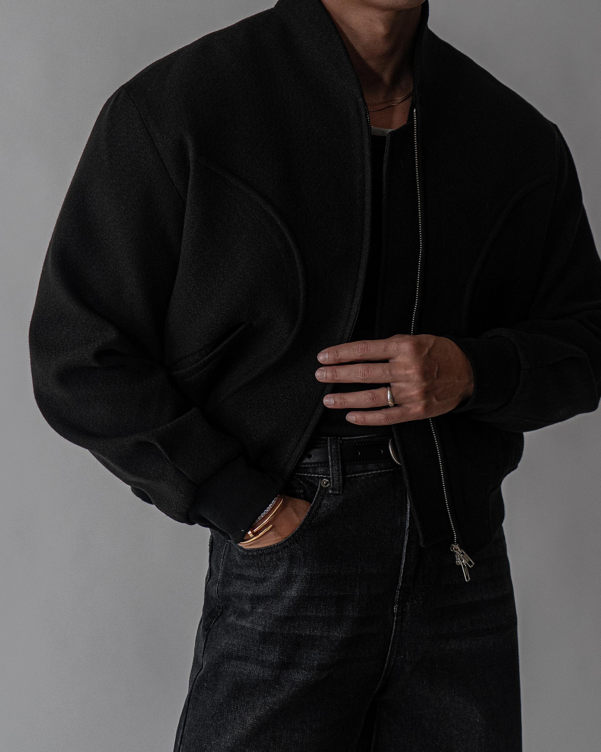 - 울 70% · 폴리 30% 혼방으로 제작된 고급 울 노카라 자켓