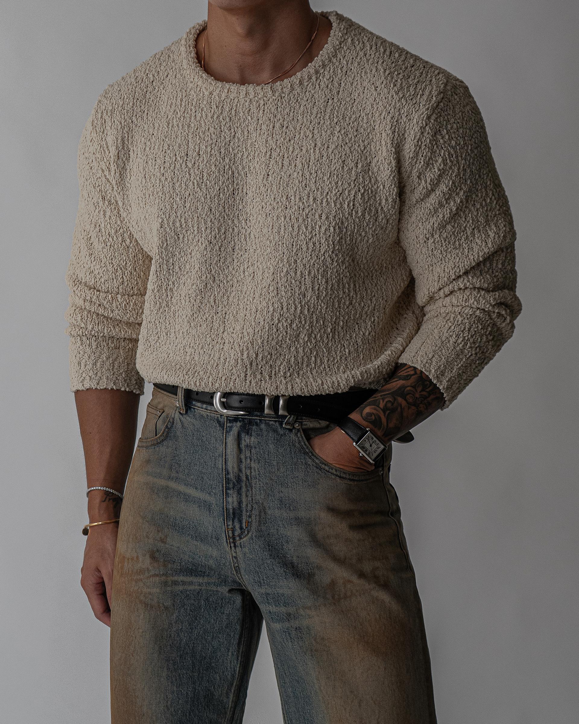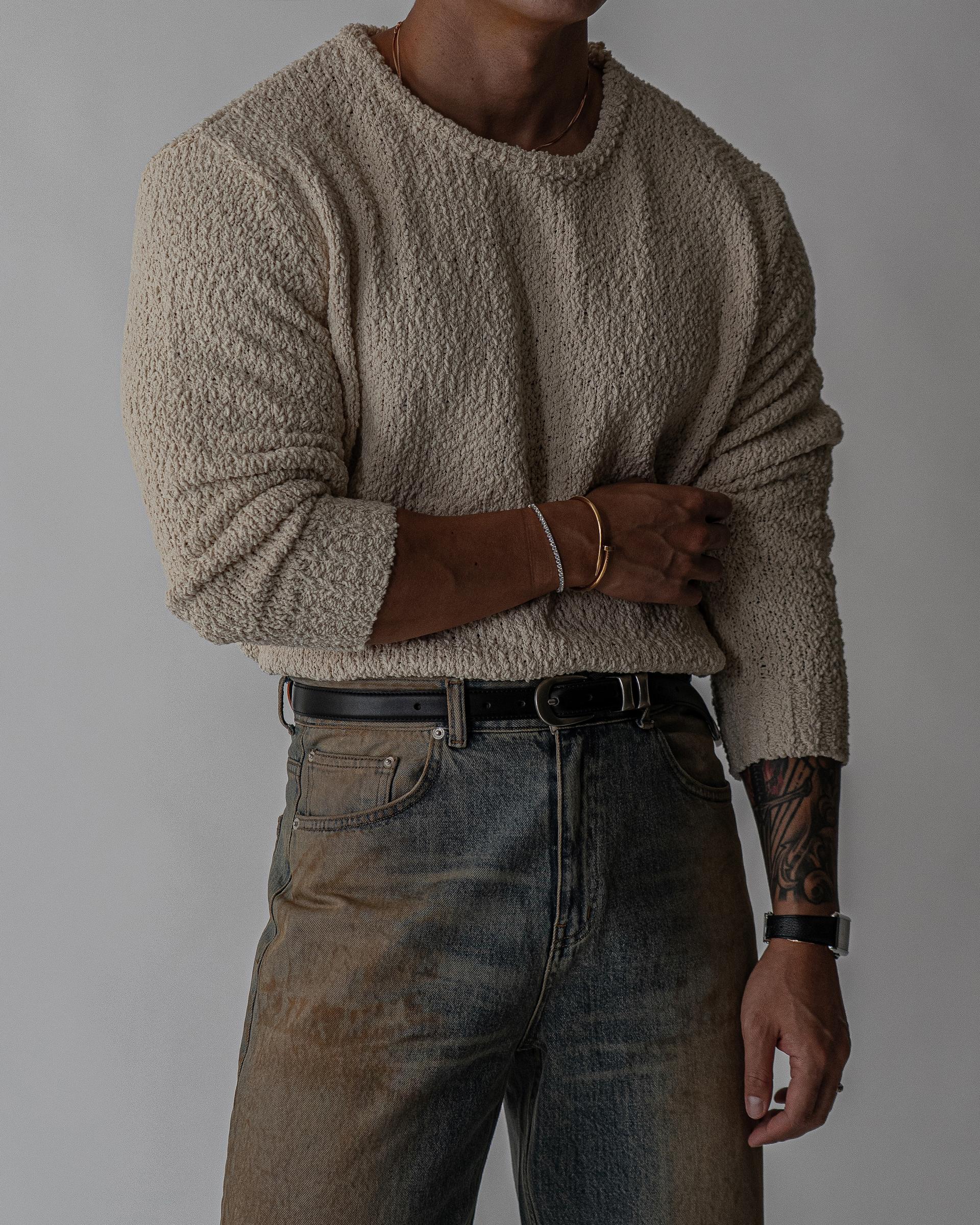 - 텍스처가 고급스러운 무게감있는 헤비 보트넥 니트